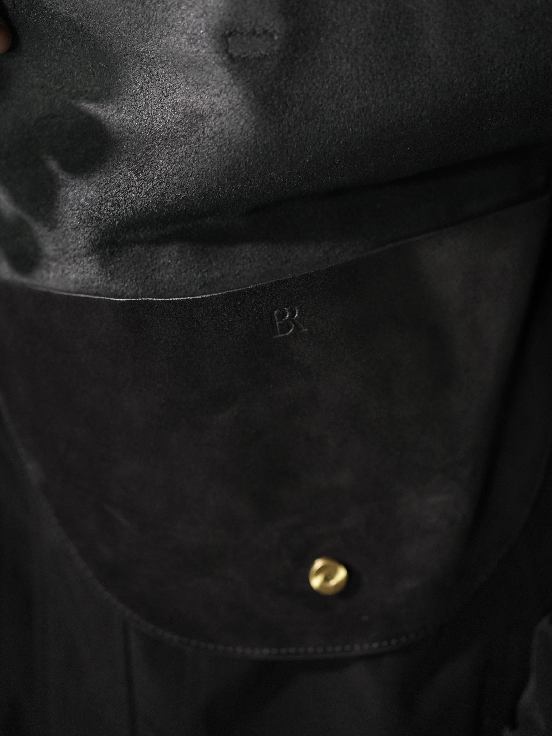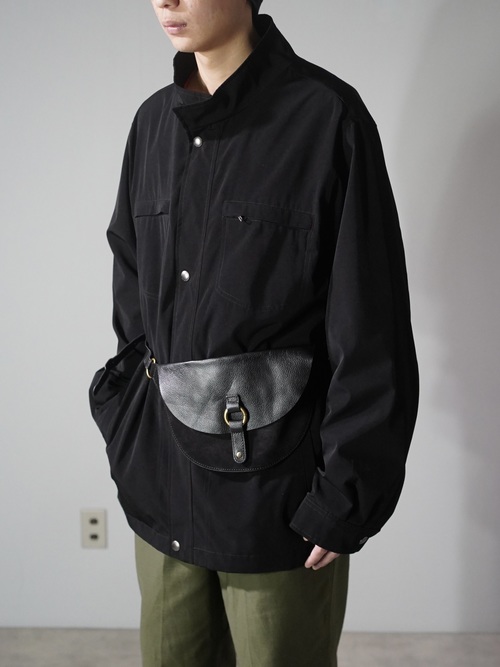 コートやジャケットの上から、ボトムスのベルトループに通すだけでスタイリングに程よい重厚感と品をプラスしてくれる存在に。