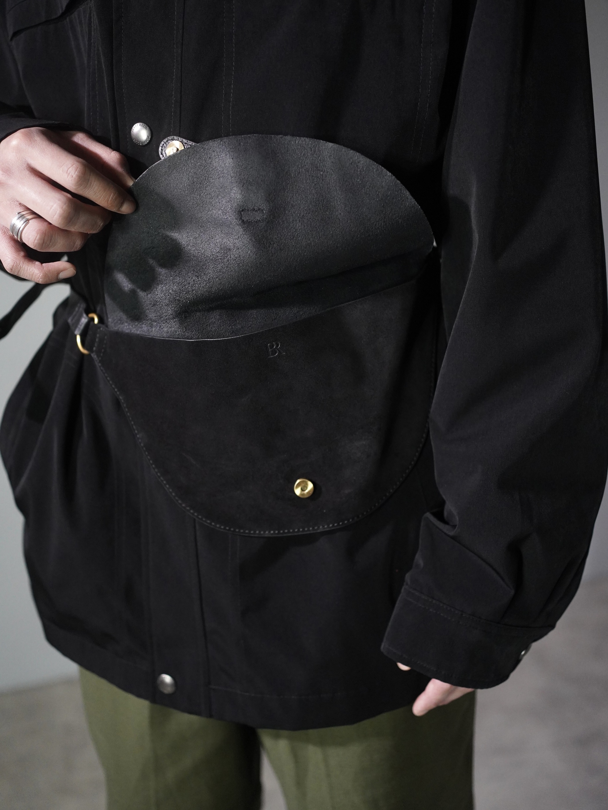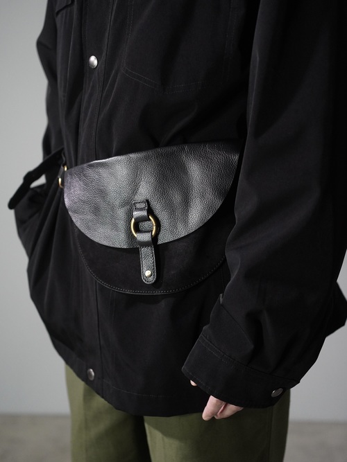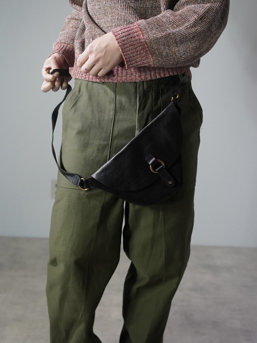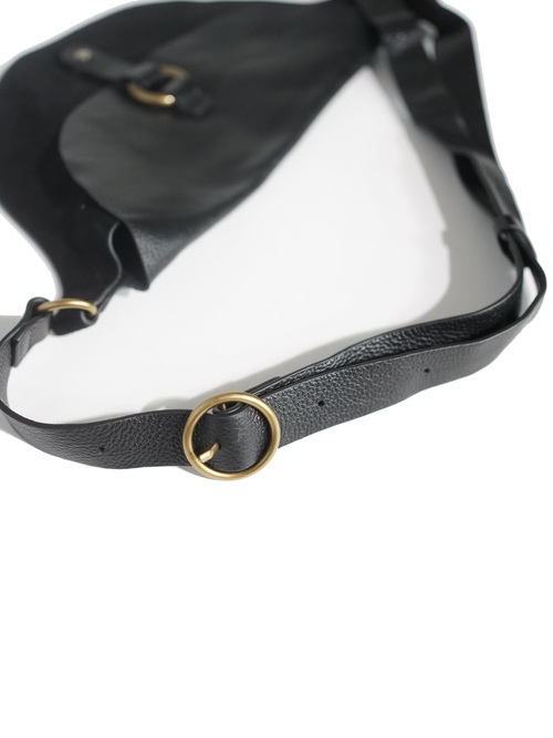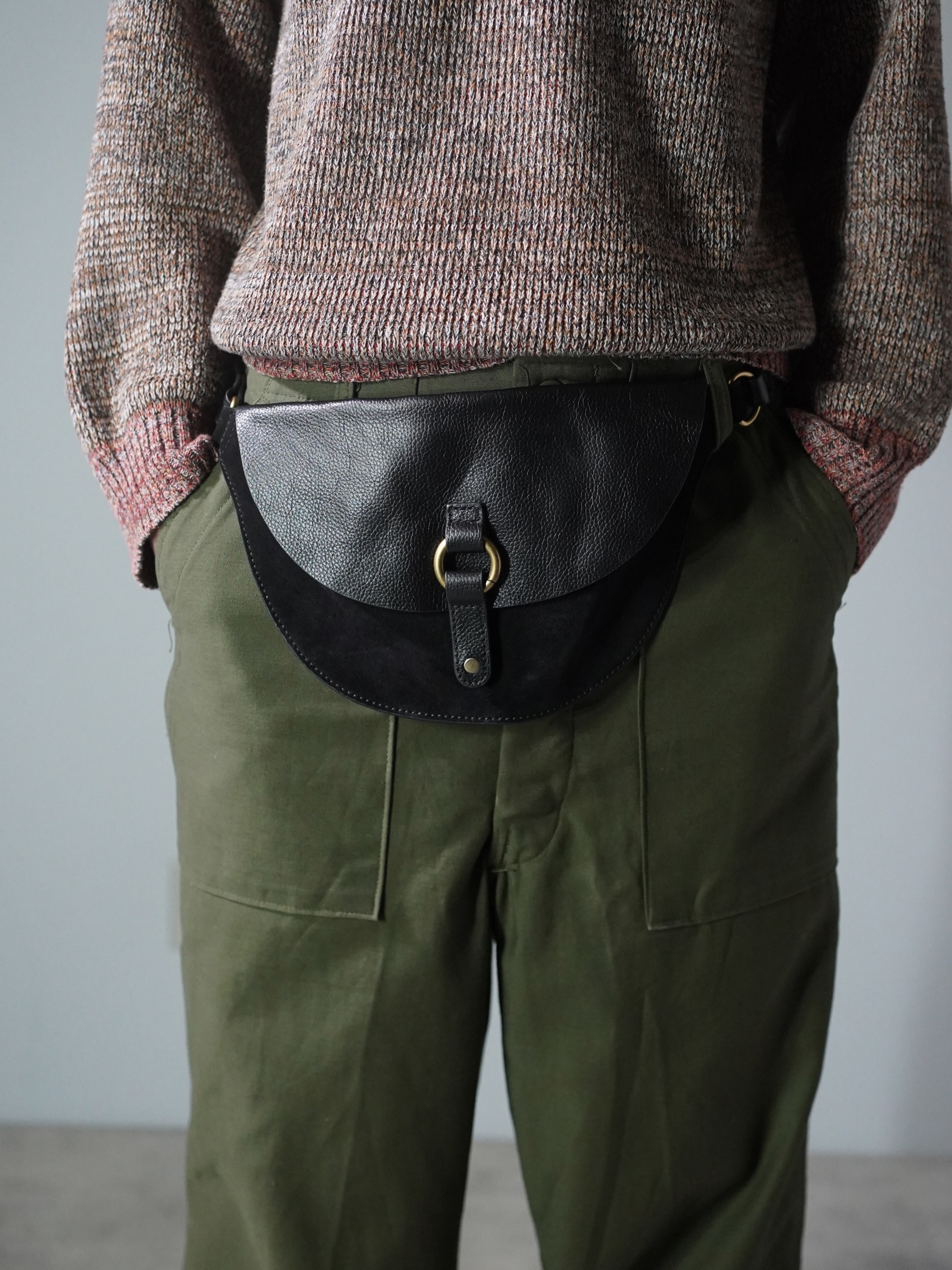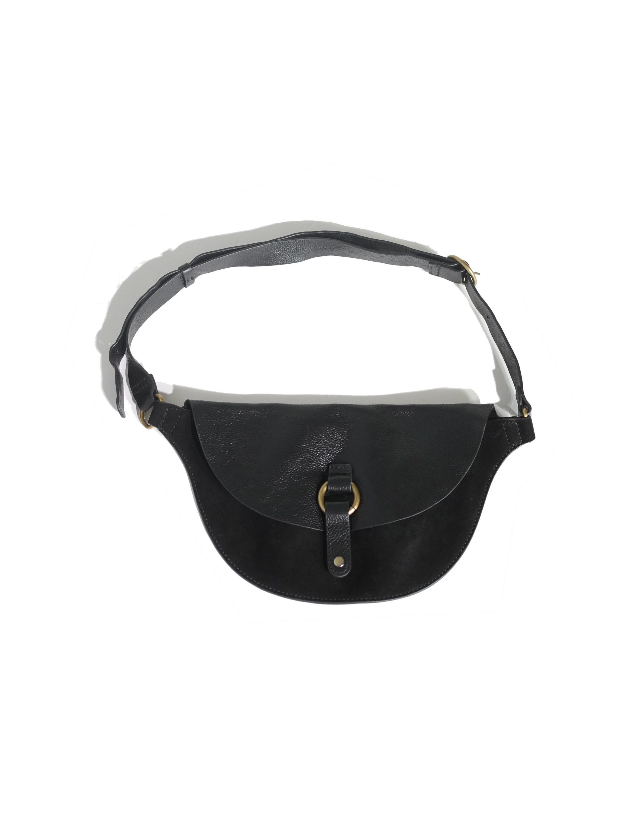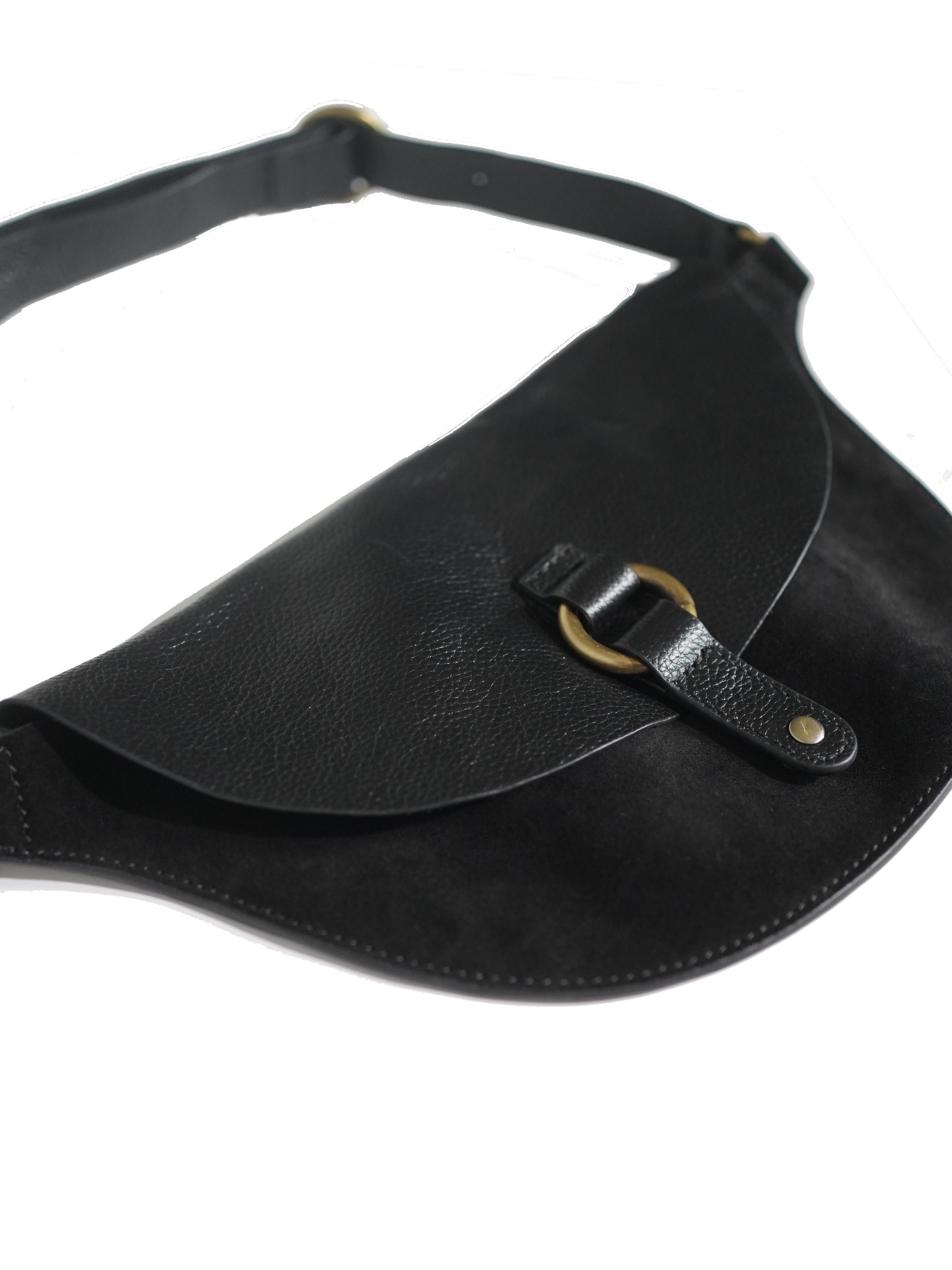 しなやかなシボレザーで仕立てられた、ハーフムーン型のレザーウエストポーチ。