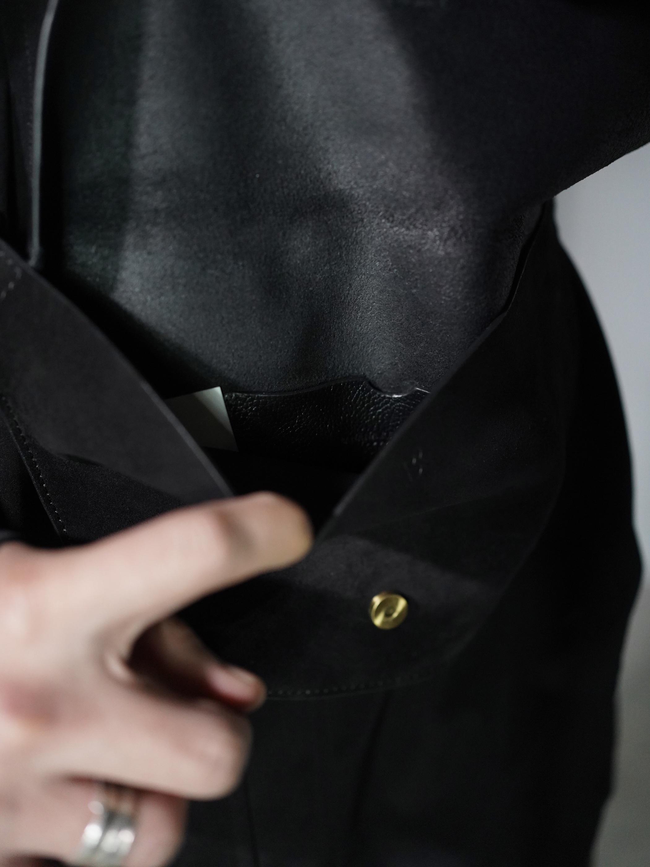 無駄を削ぎ落としたミニマルなフォルムに、真鍮リングの留め具のさりげないアクセント。