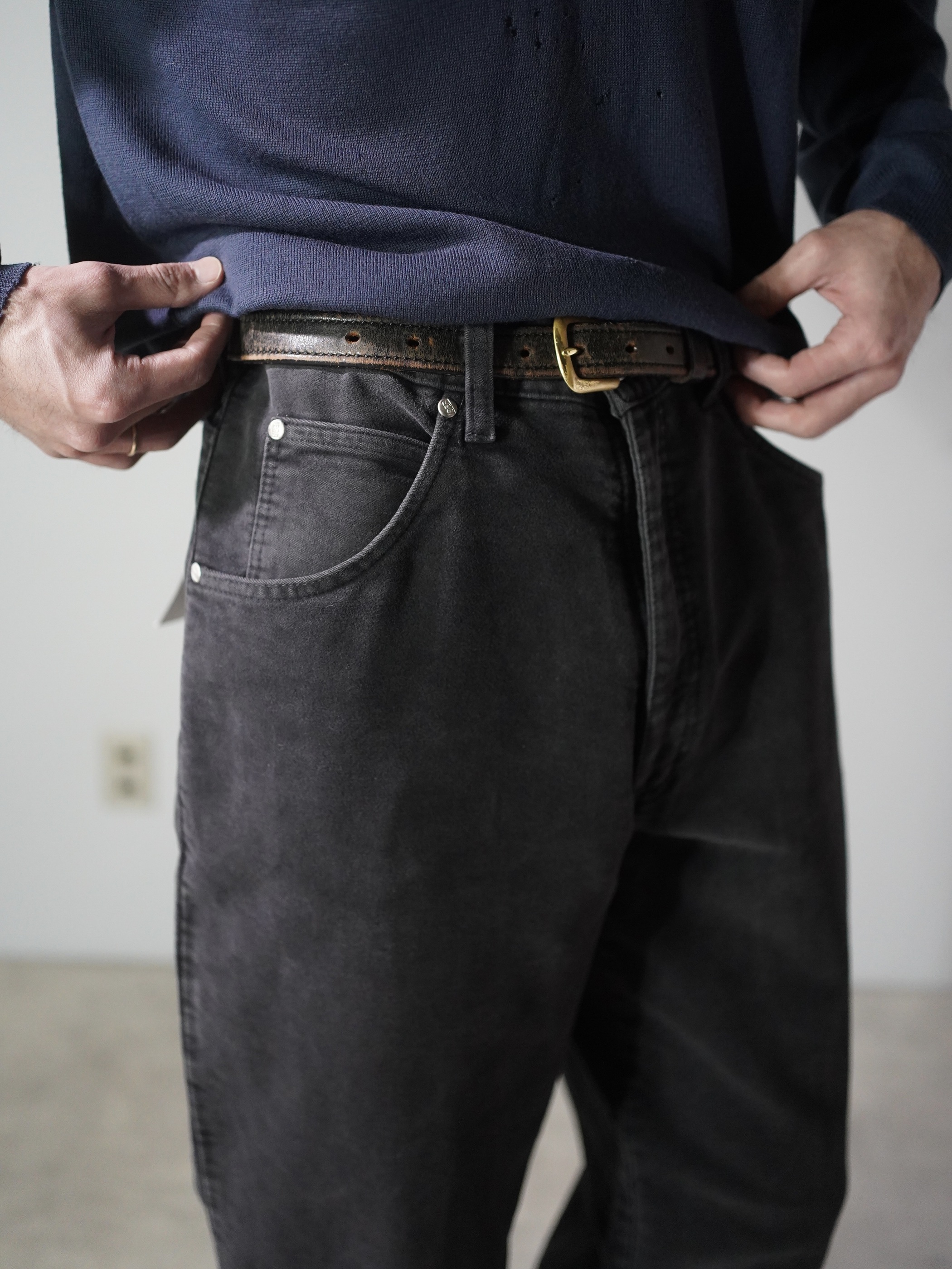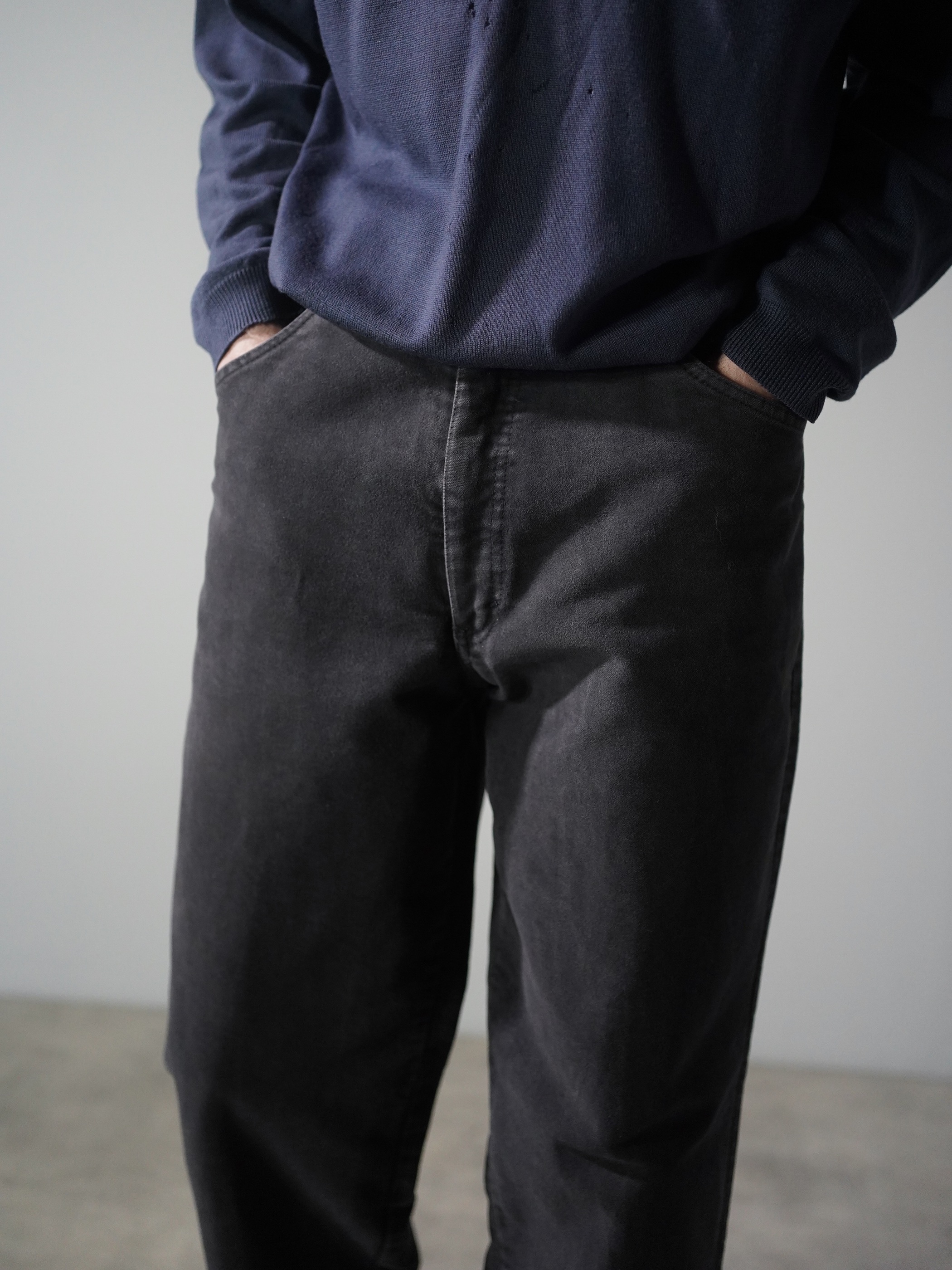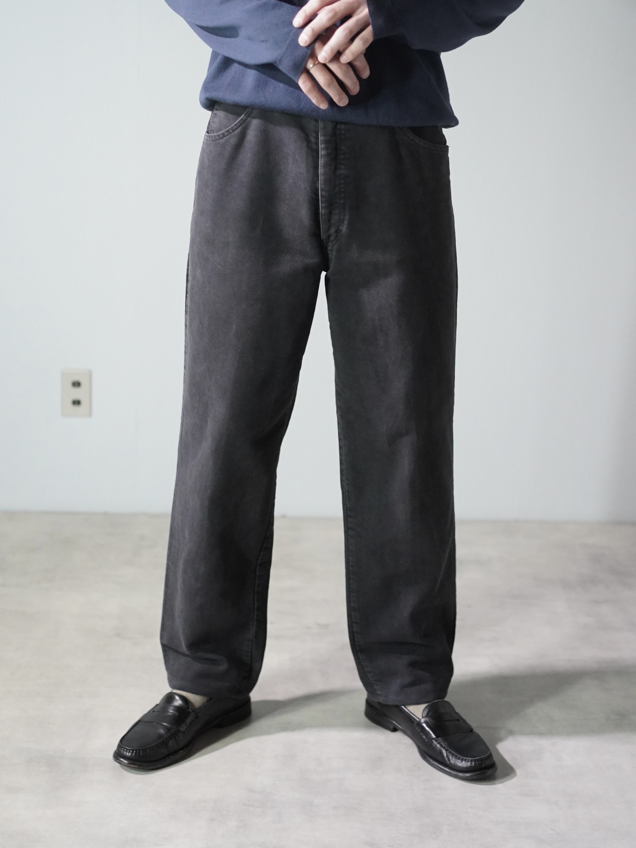 オリジナルの用途や背景は残しつつ、現代のスタイルに自然に馴染むよう、ブランドによる最低限の手入れと手直しだけを施した状態。新品ではなく、かといって、ただ古いだけでもない。唯一無二のポジションを取るそんなボトムス達。