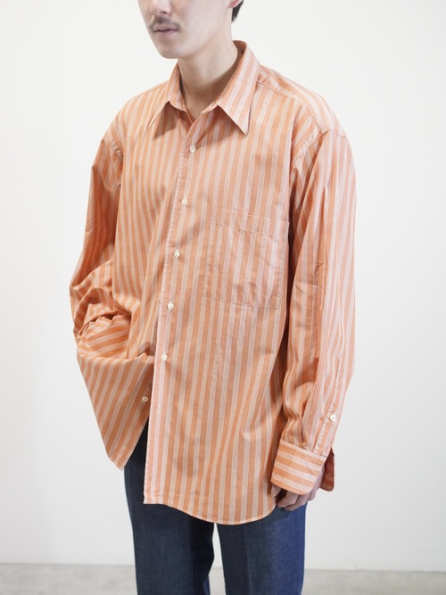 ・1990's IKE BEHAR Stripe cotton L/S dress shirt / Made in USA