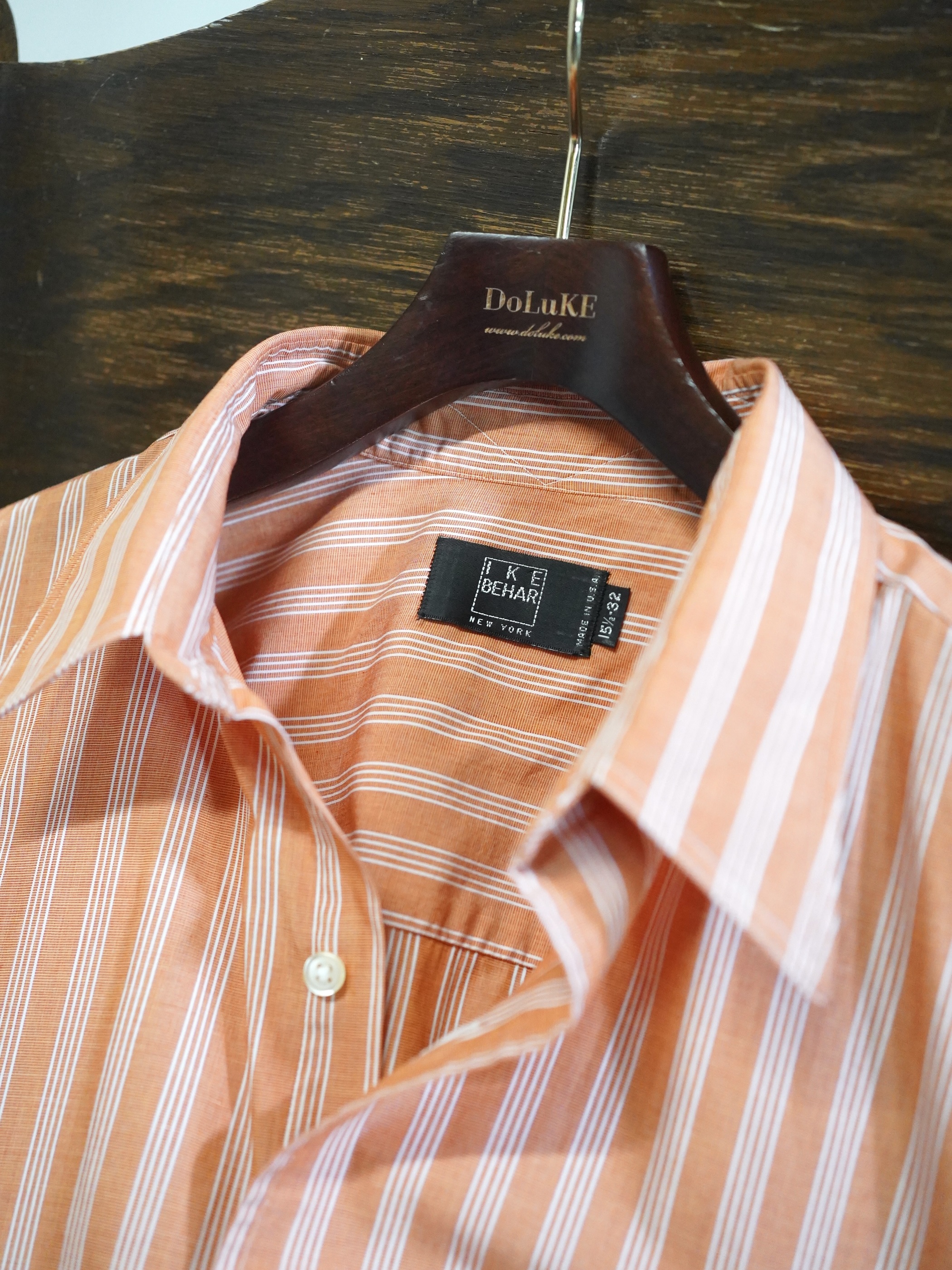 1990's IKE BEHAR Stripe cotton L/S dress shirt / Made in USA