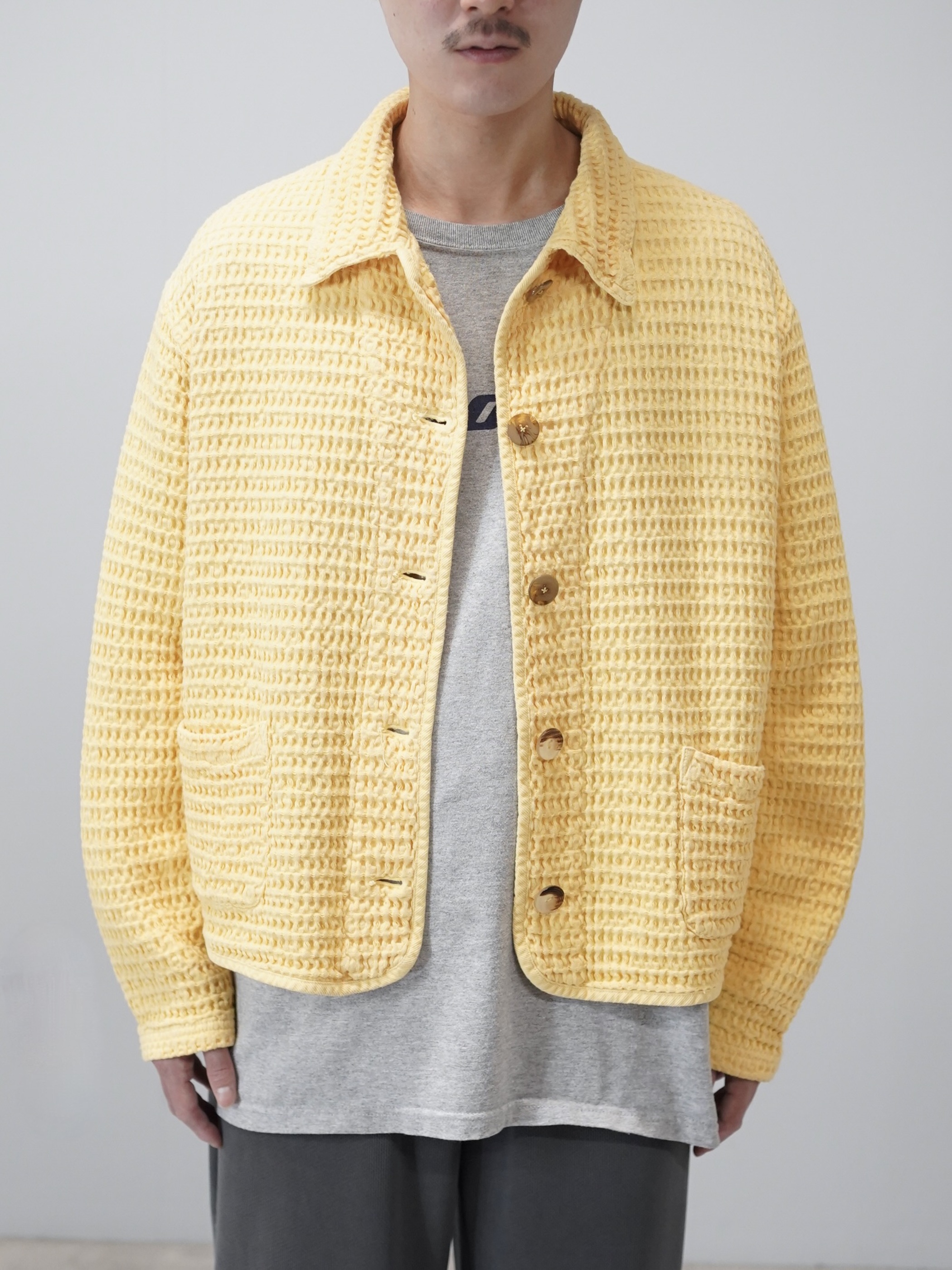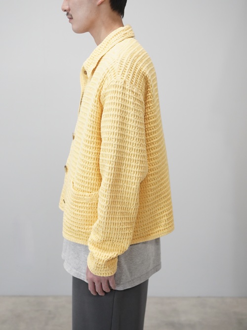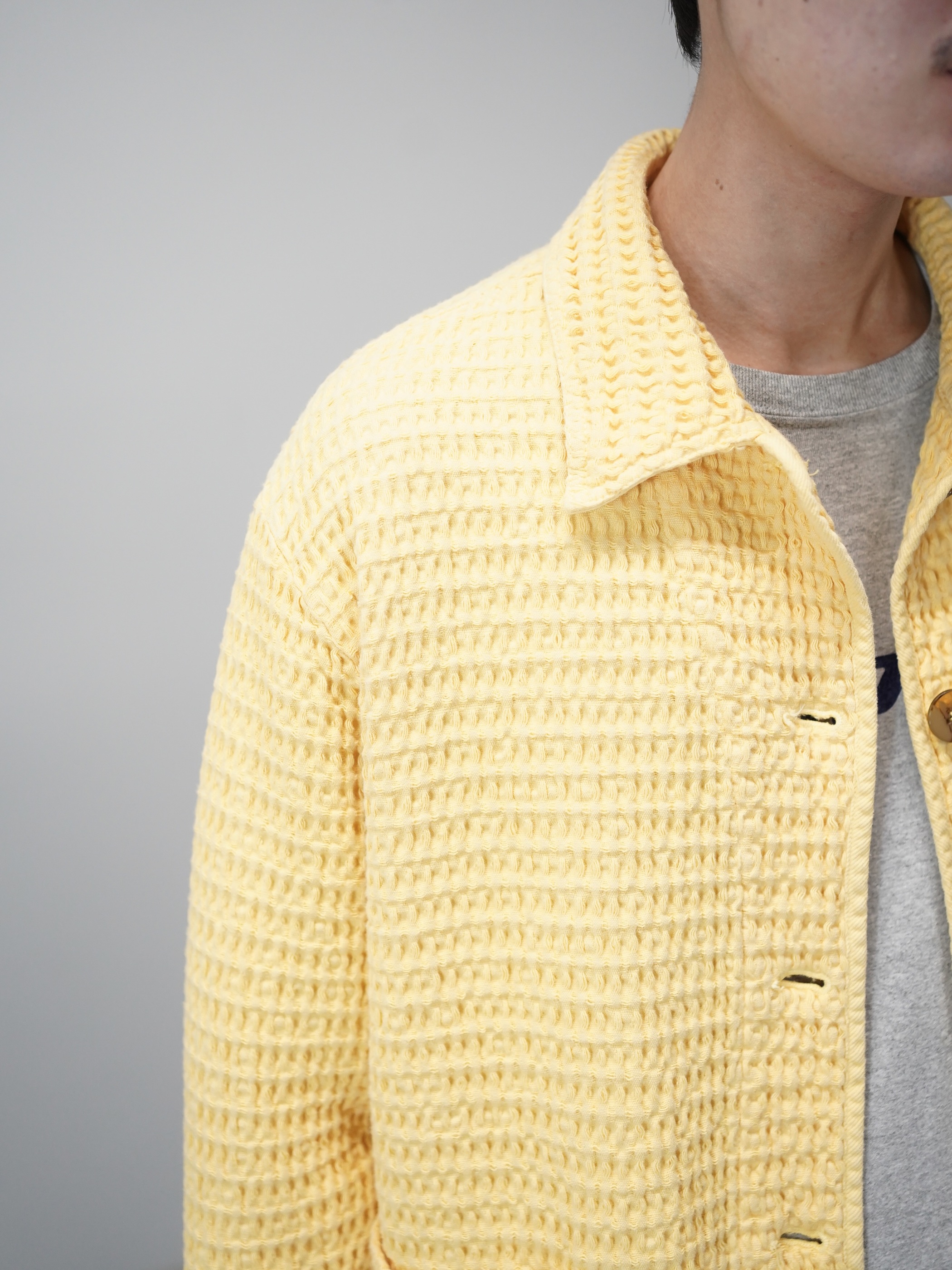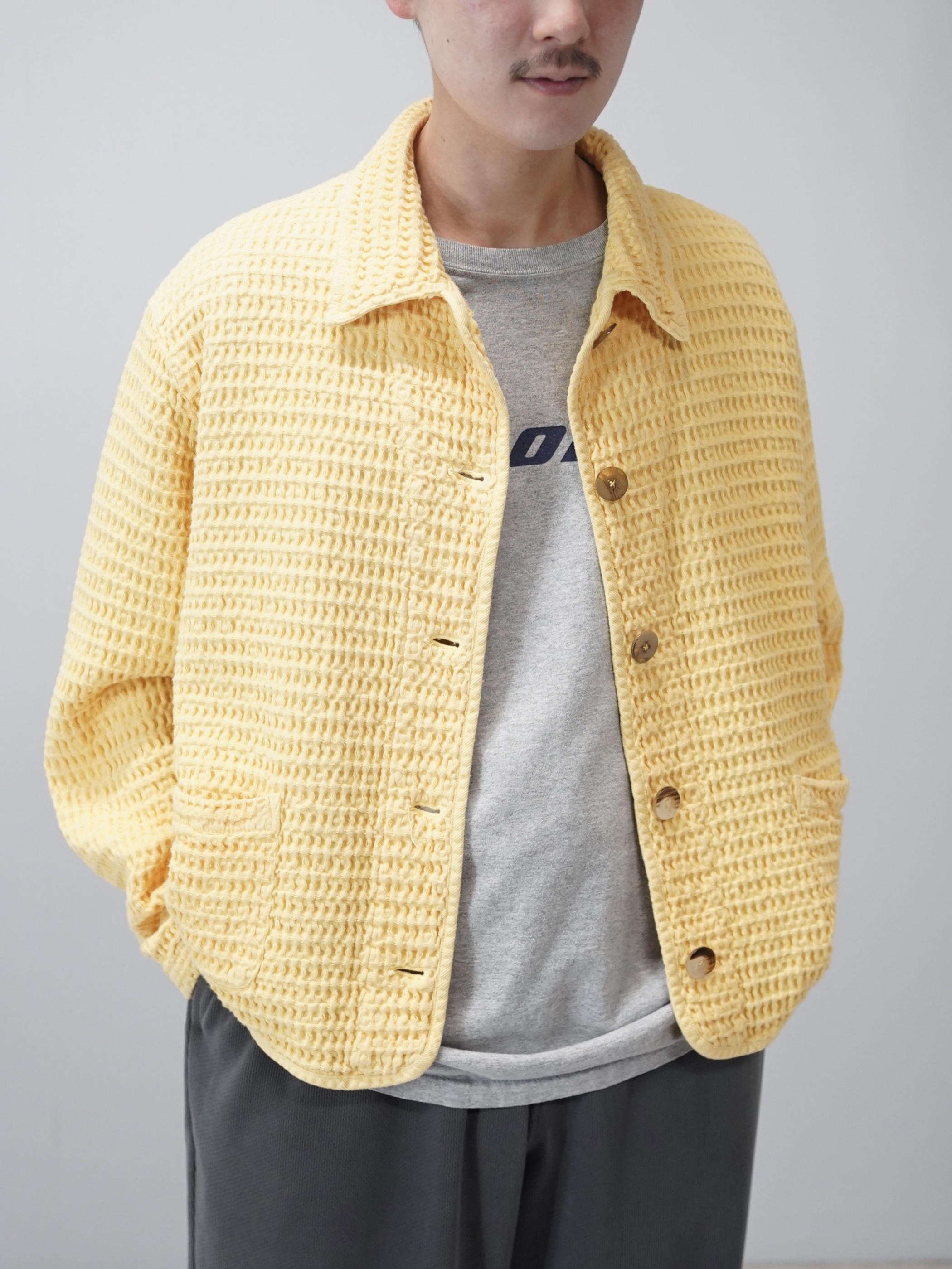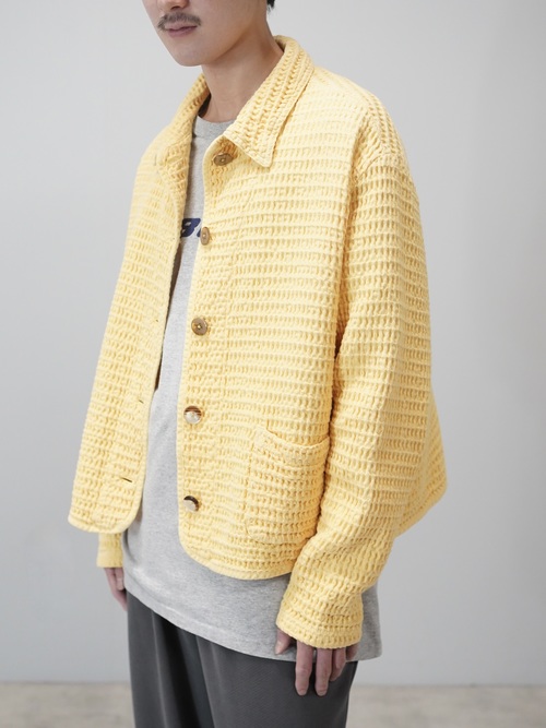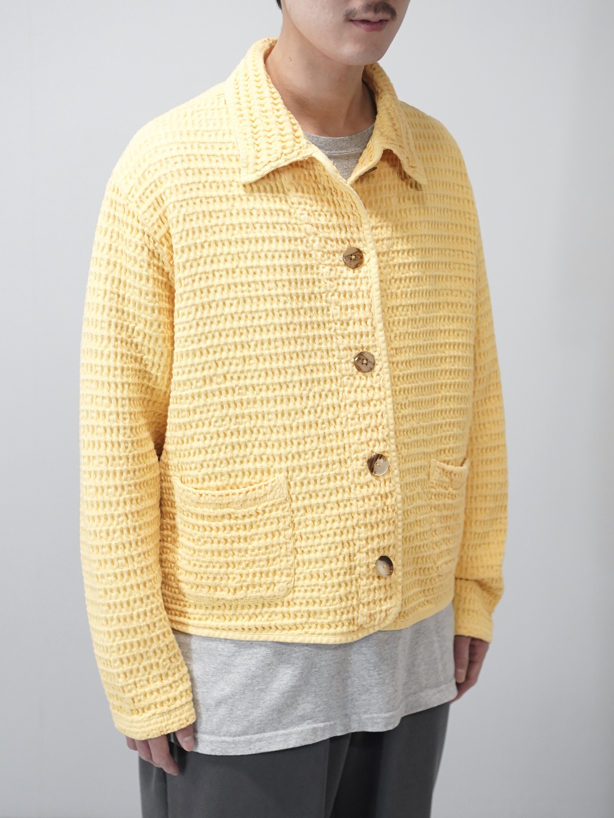 朗らかな色味と凹凸の生地、ワッフル地のシャツジャケット。