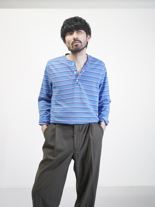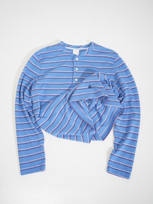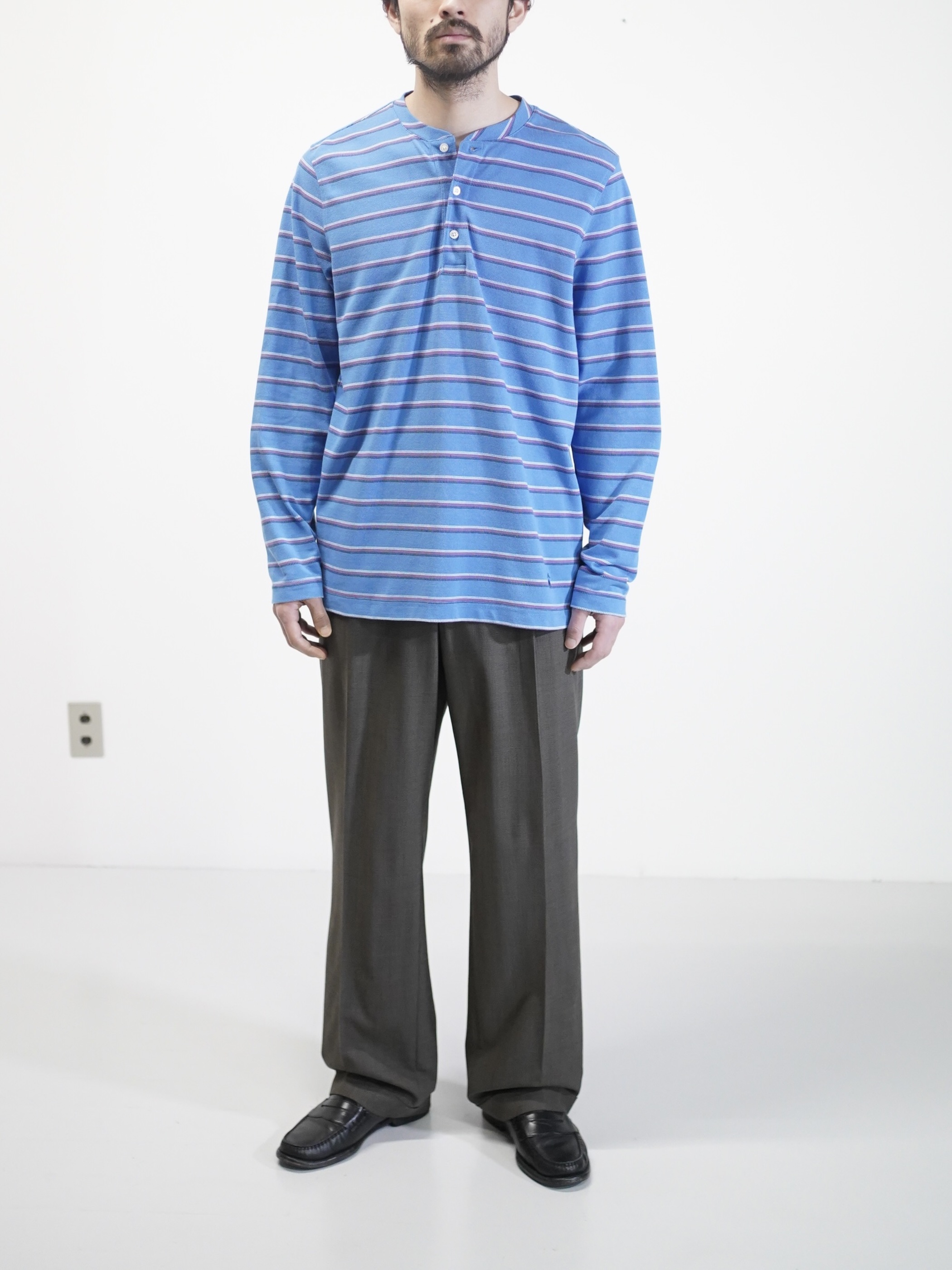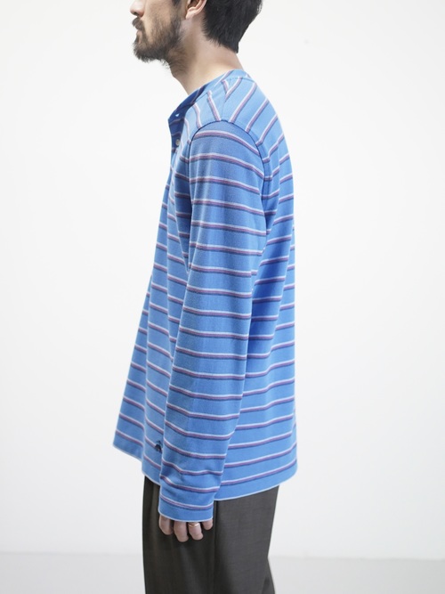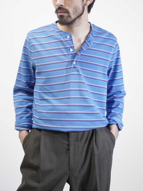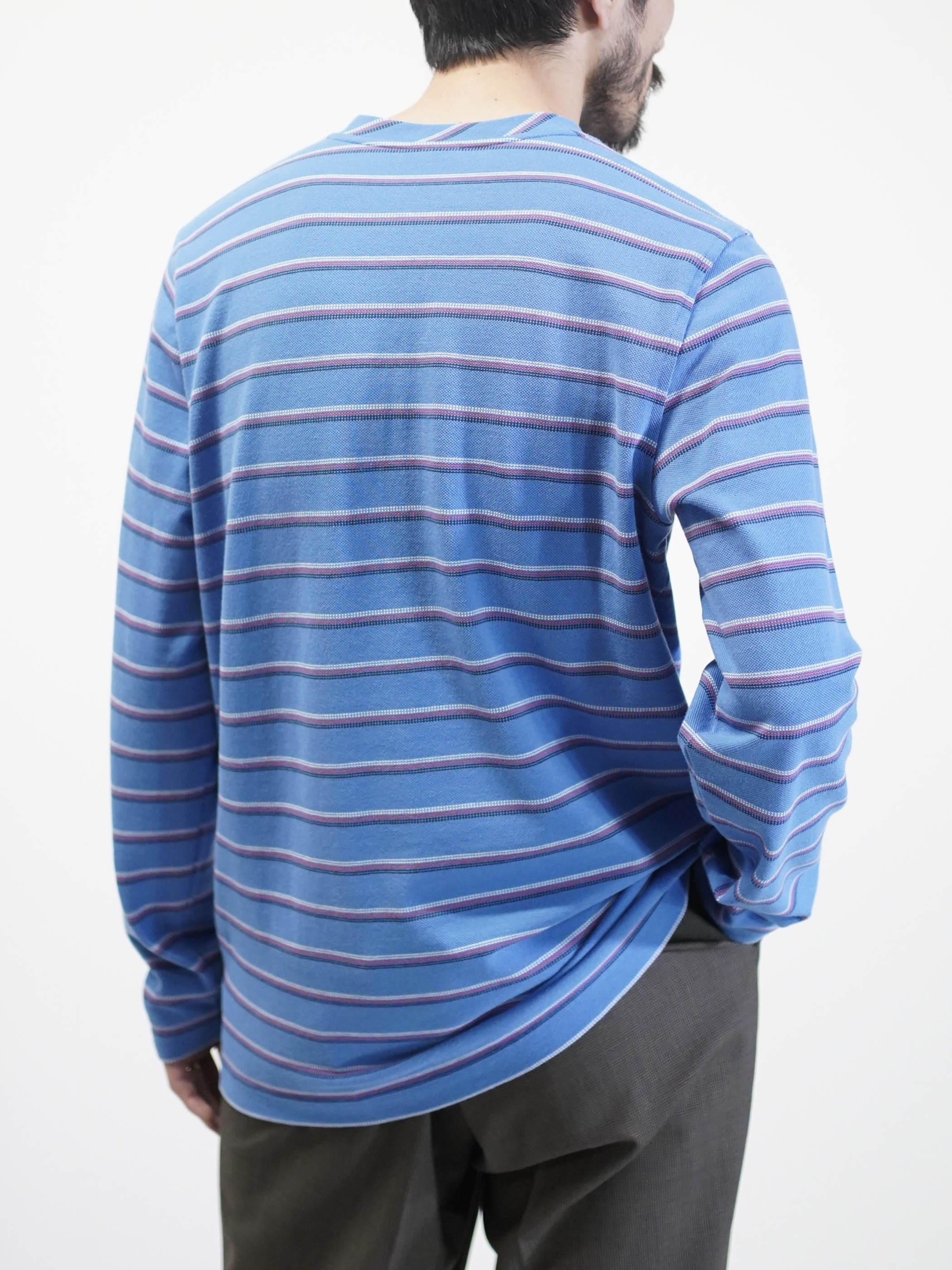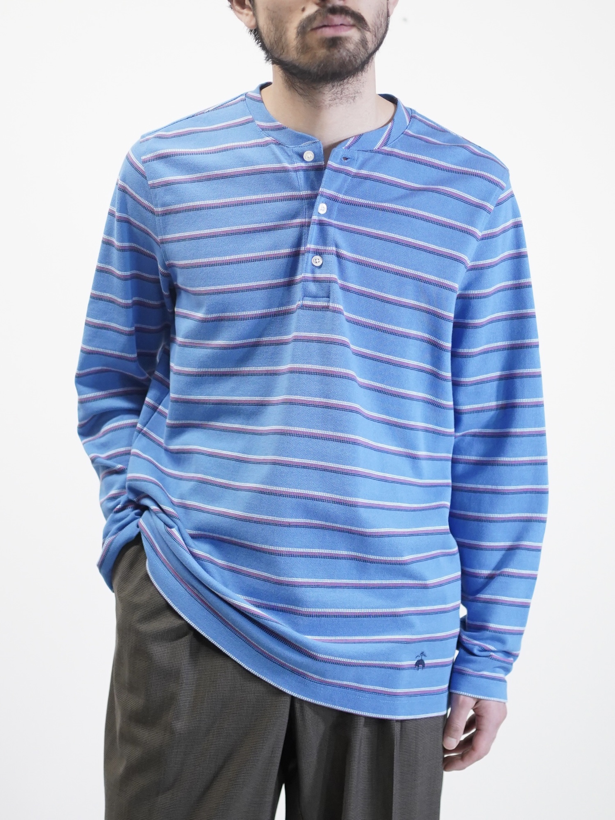 Brooks Brothers henley-neck 鹿の子 cotton multi border L/S tops
