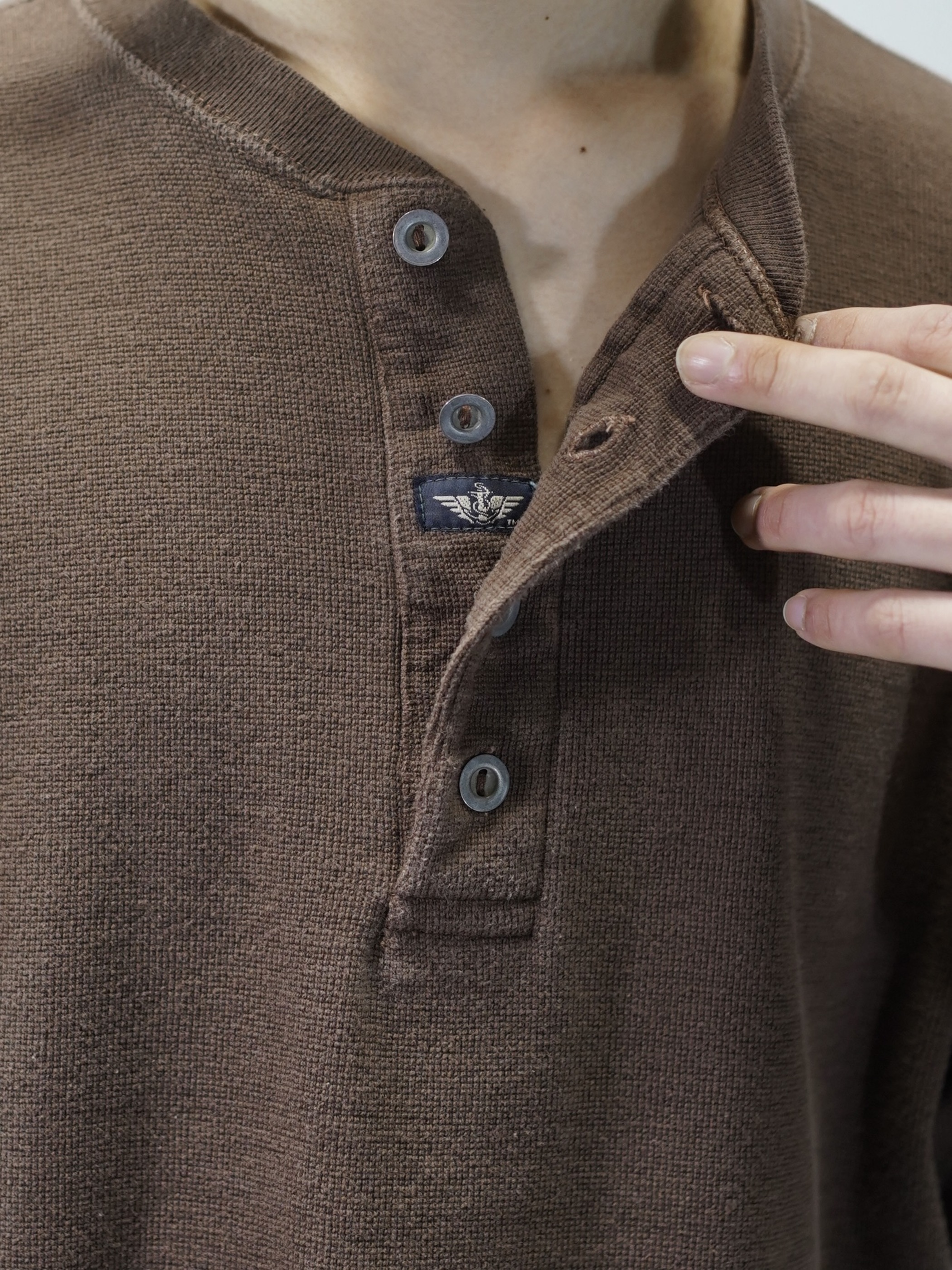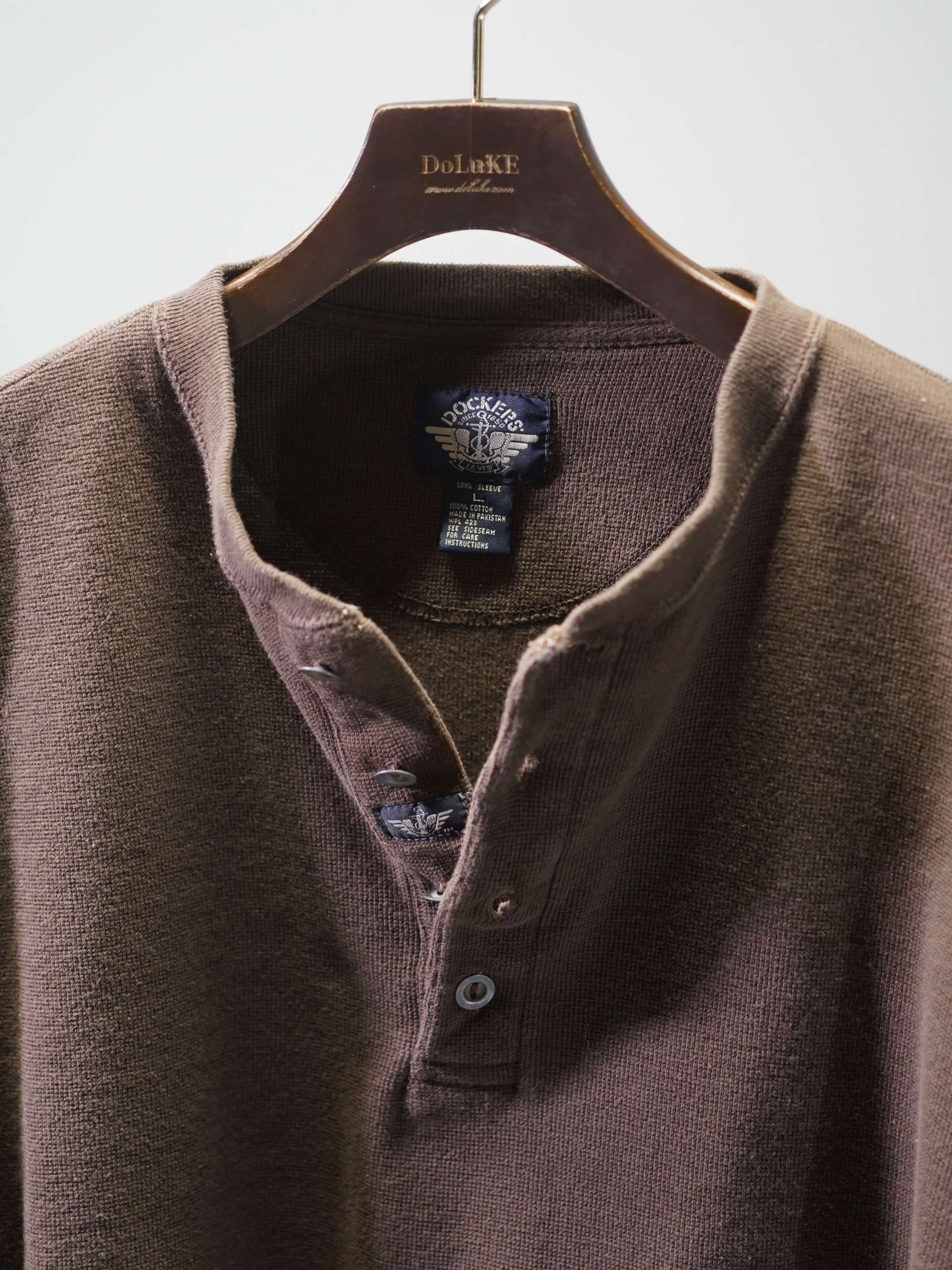 1990's DOCKERS Metal button henley-neck cotton thermal cut sew