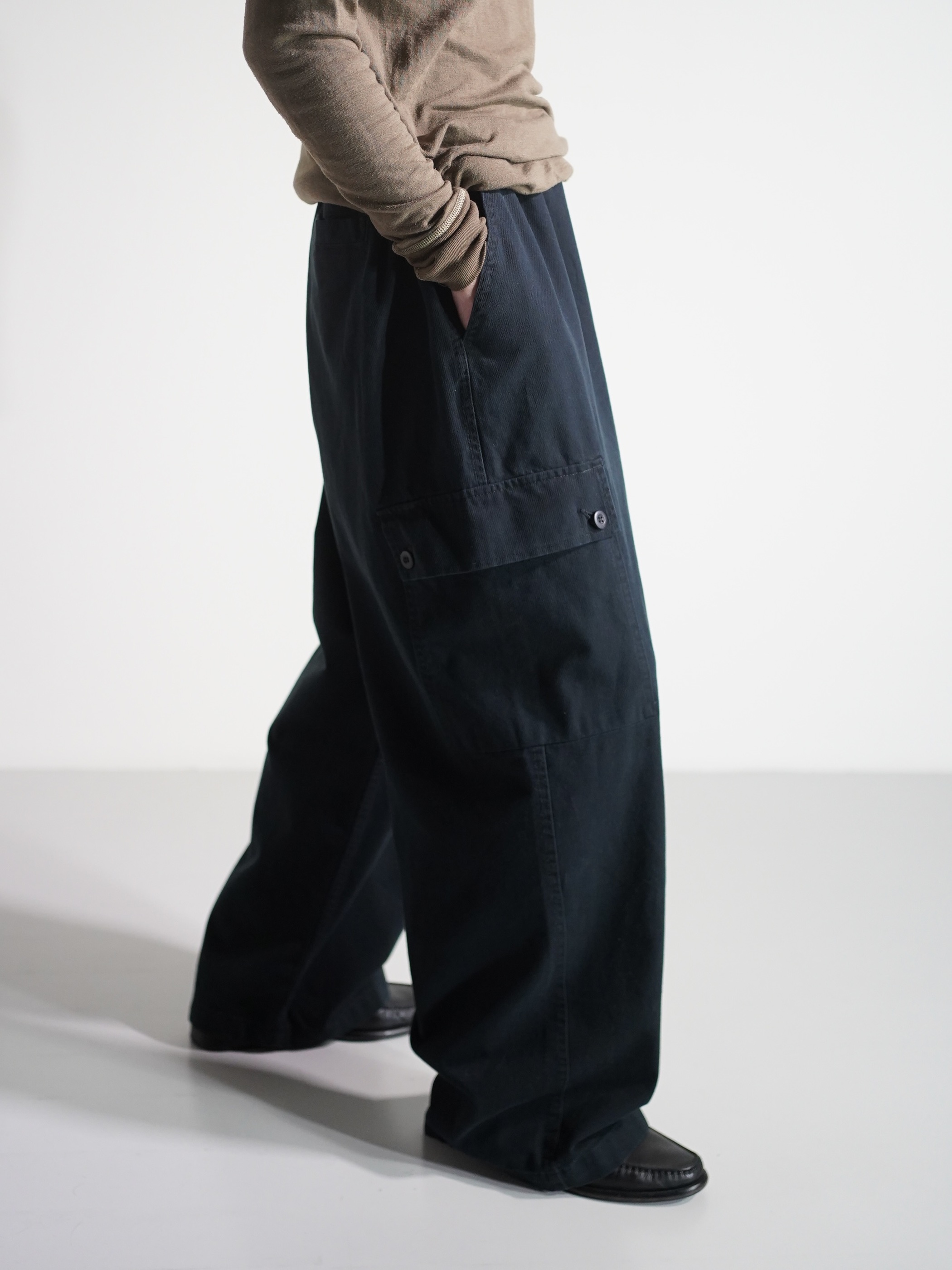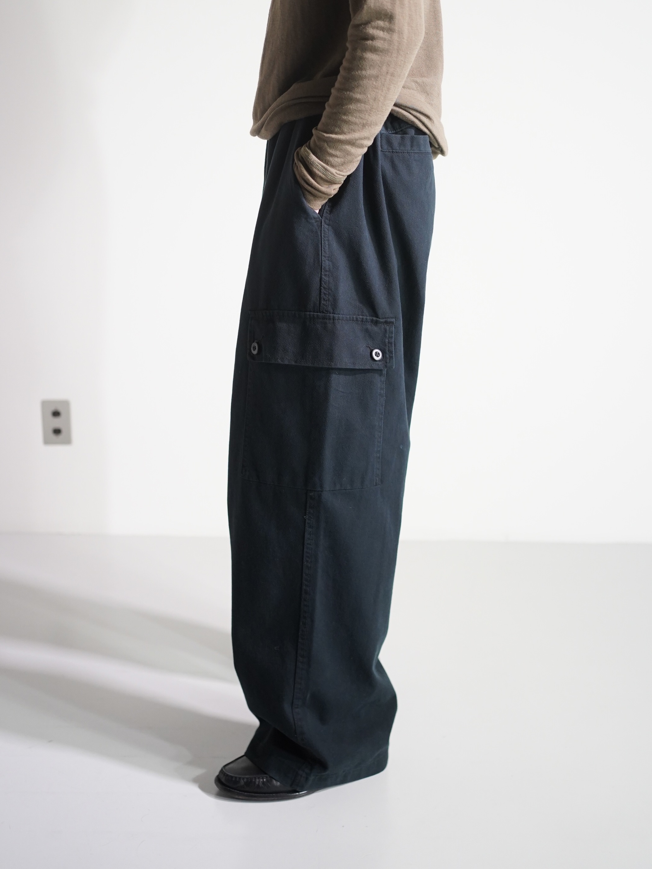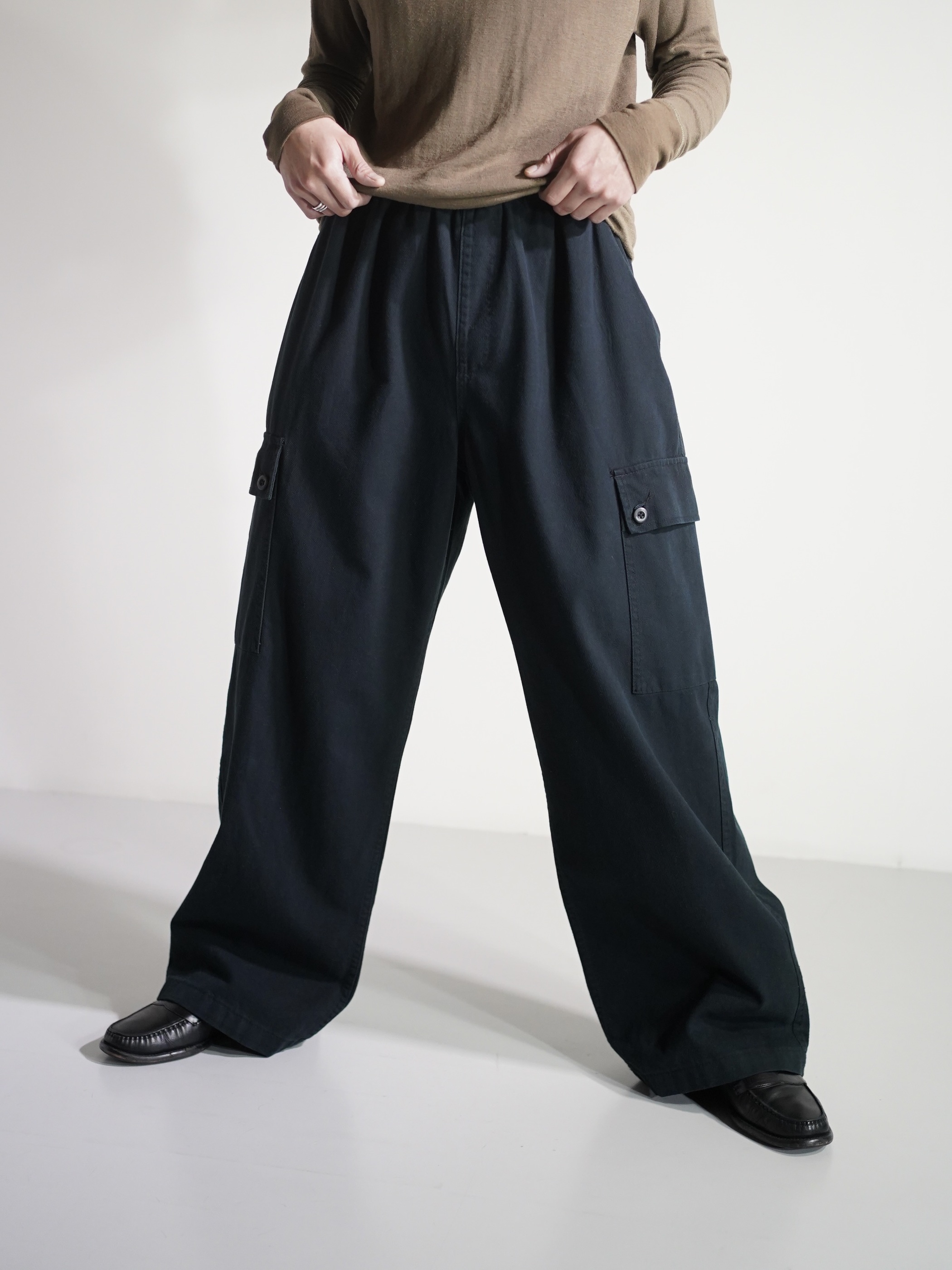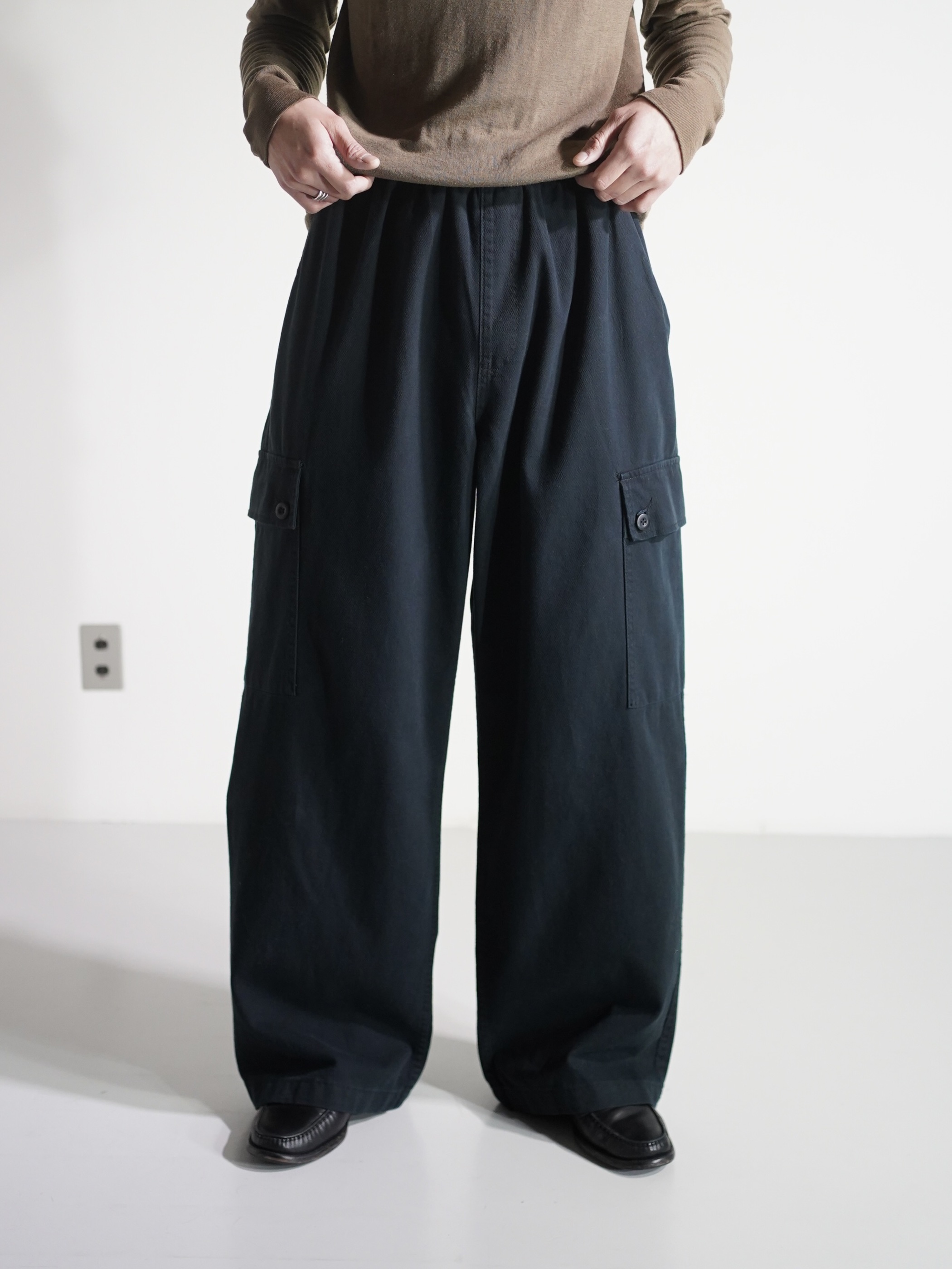 ・00's Wide silhouette cotton カツラギ cargo elastic pants
