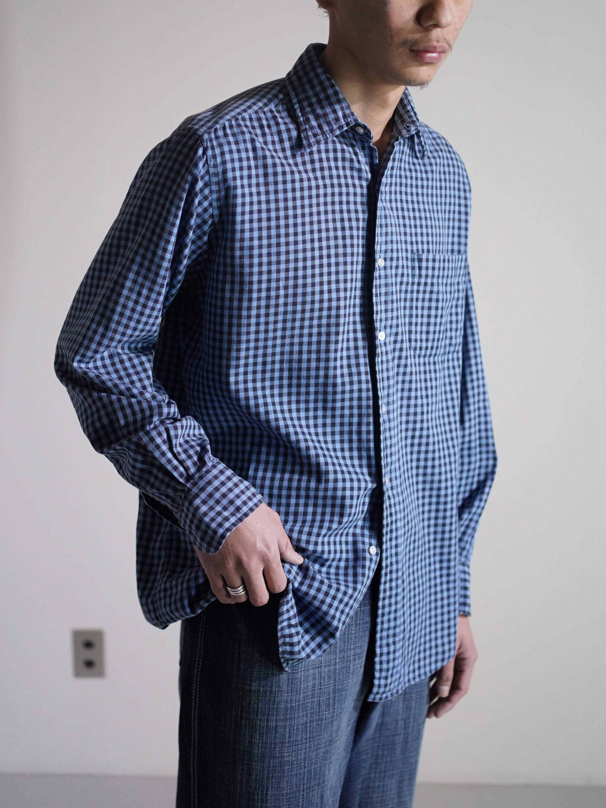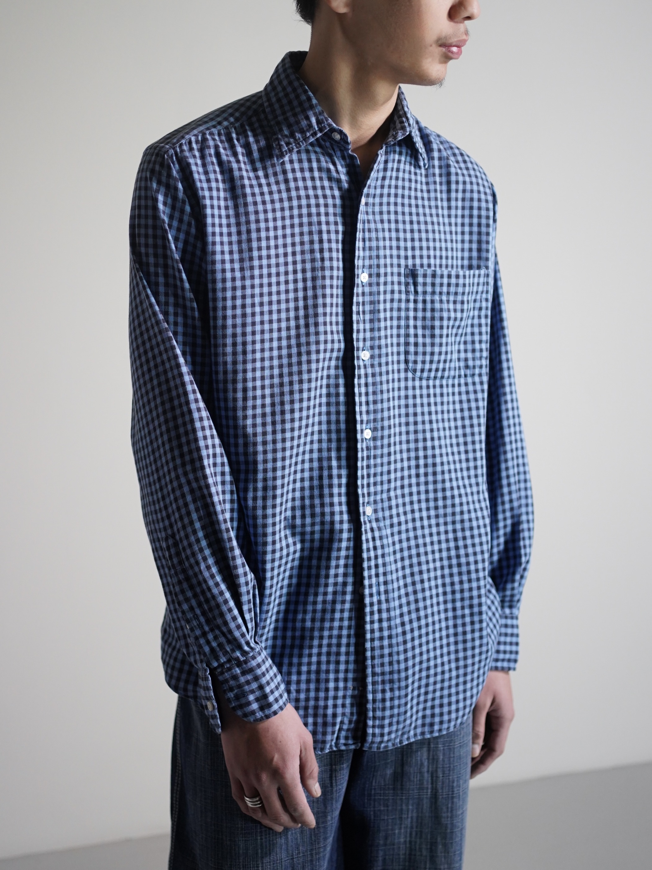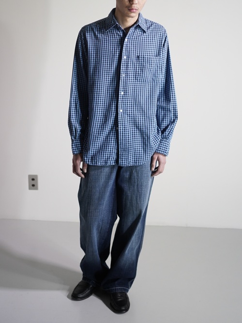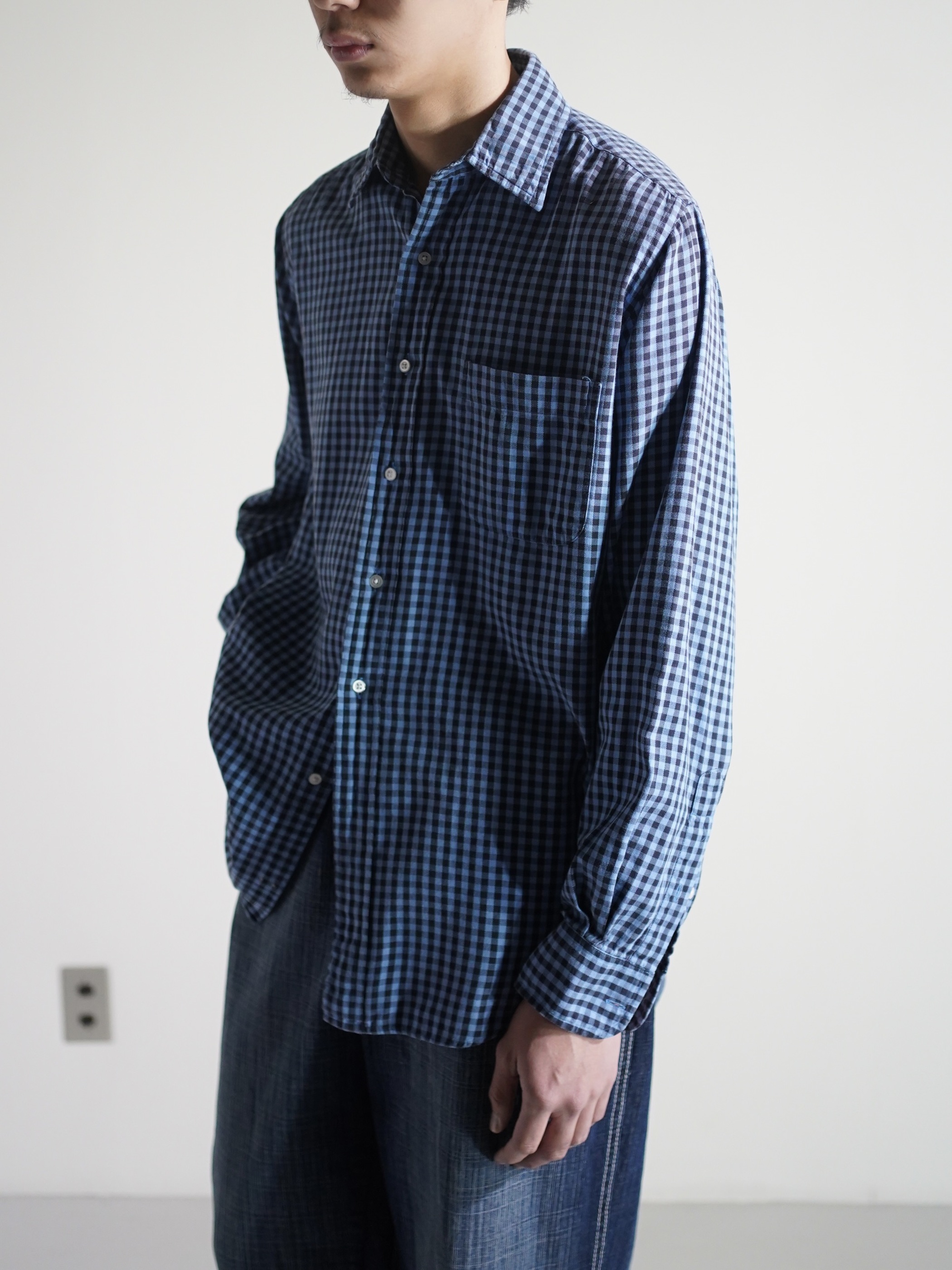 ・1990's Calvin Klein Cotton light flannel L/S check shirt / Made in Singapore