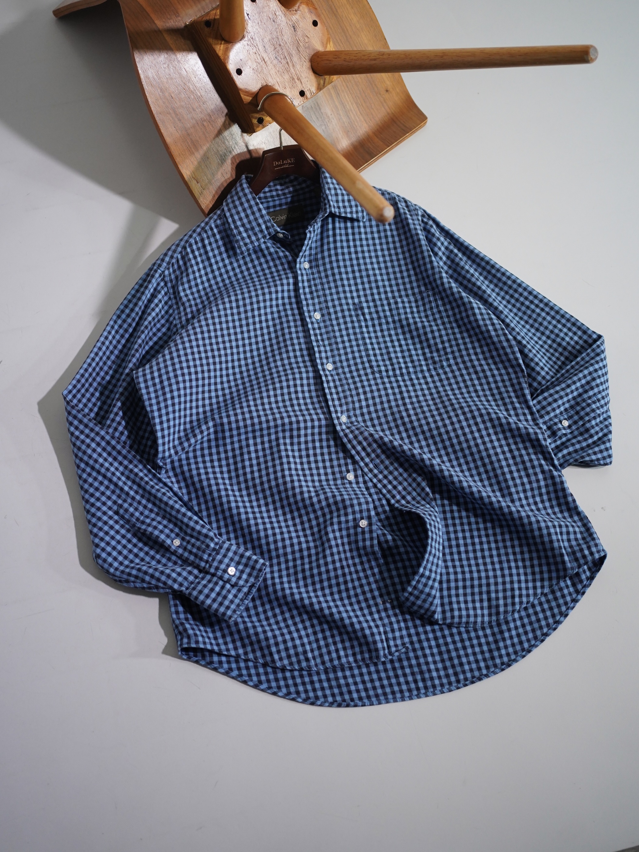 1990's Calvin Klein Cotton light flannel L/S check shirt / Made in Singapore