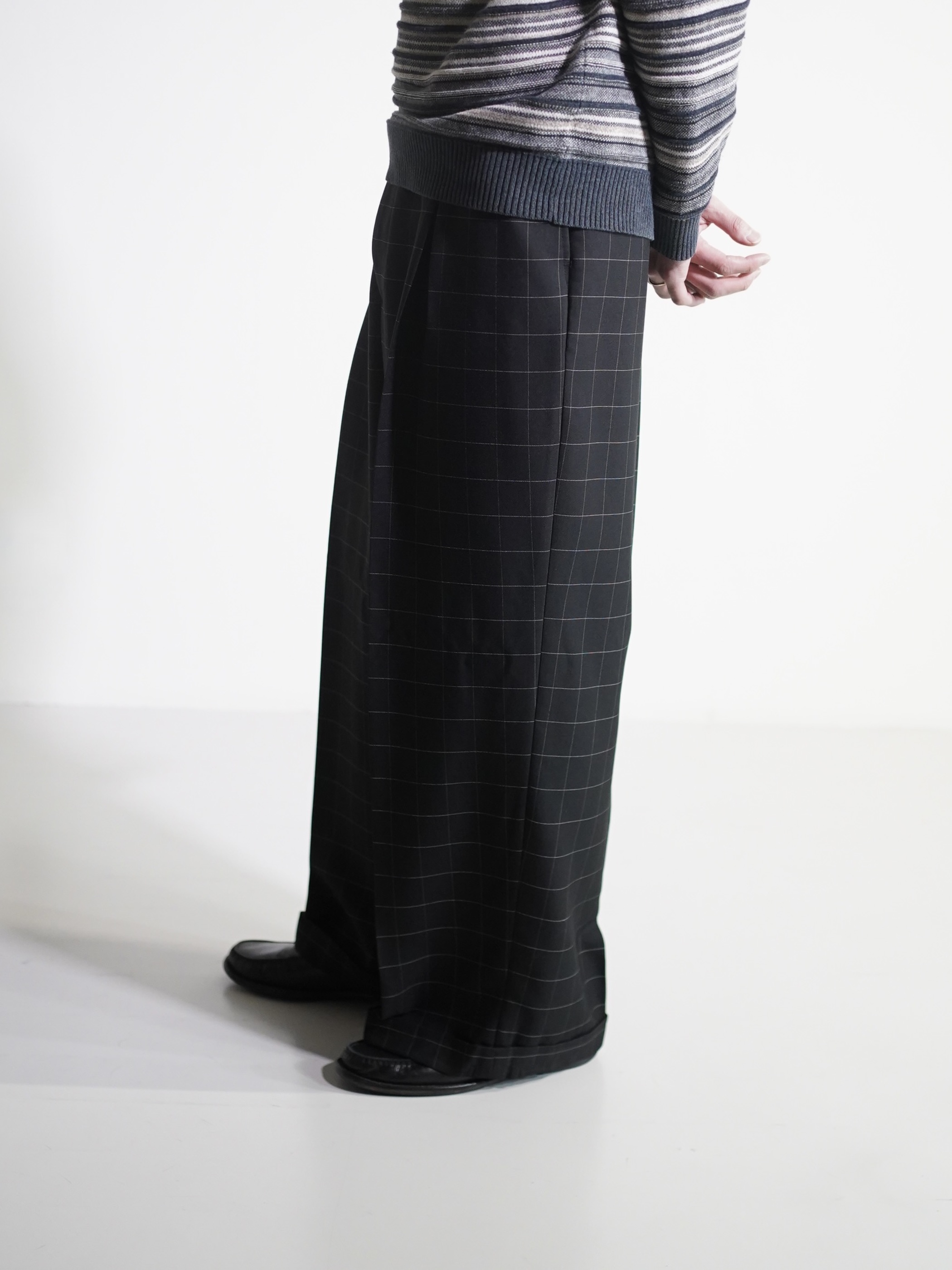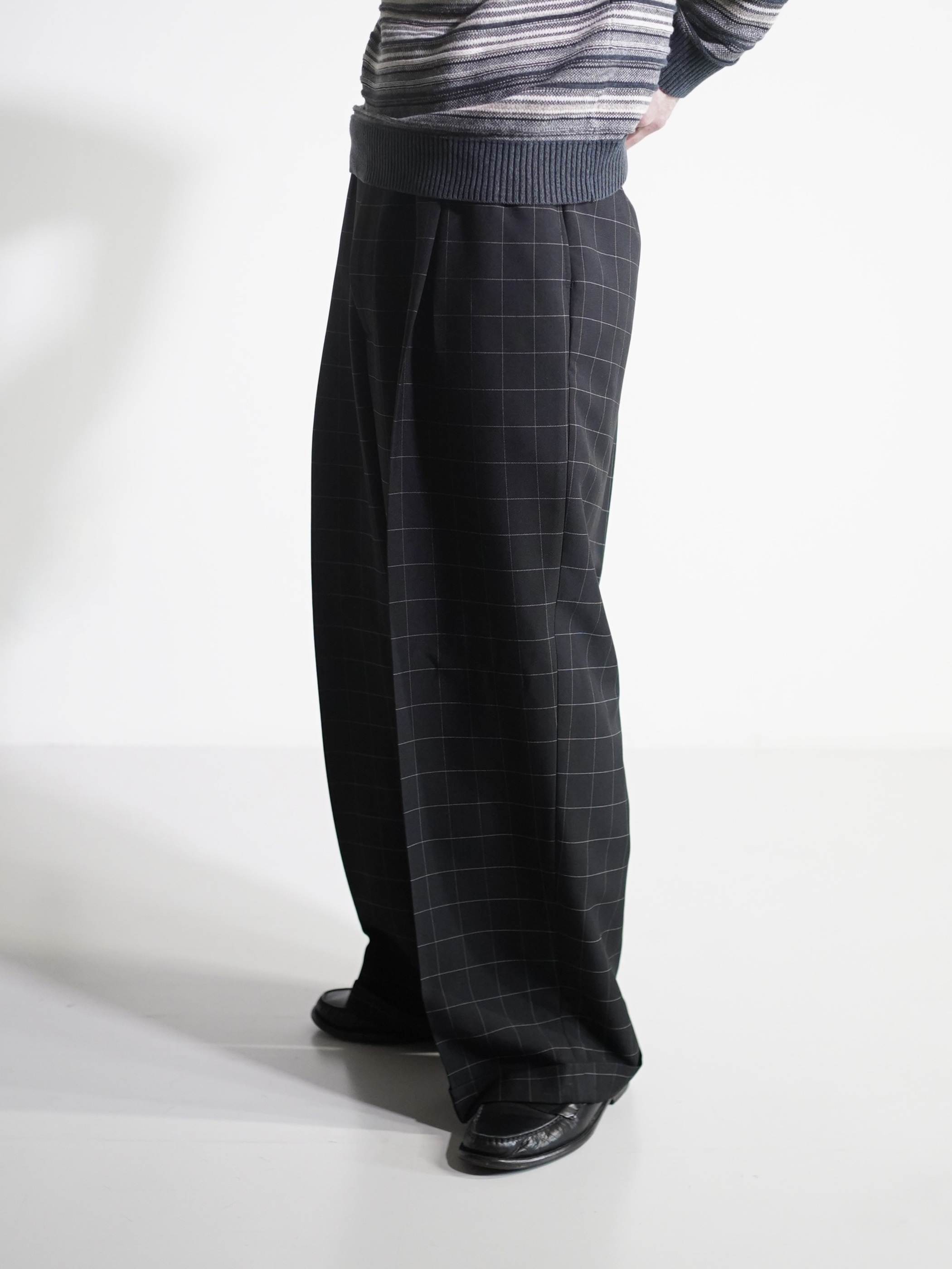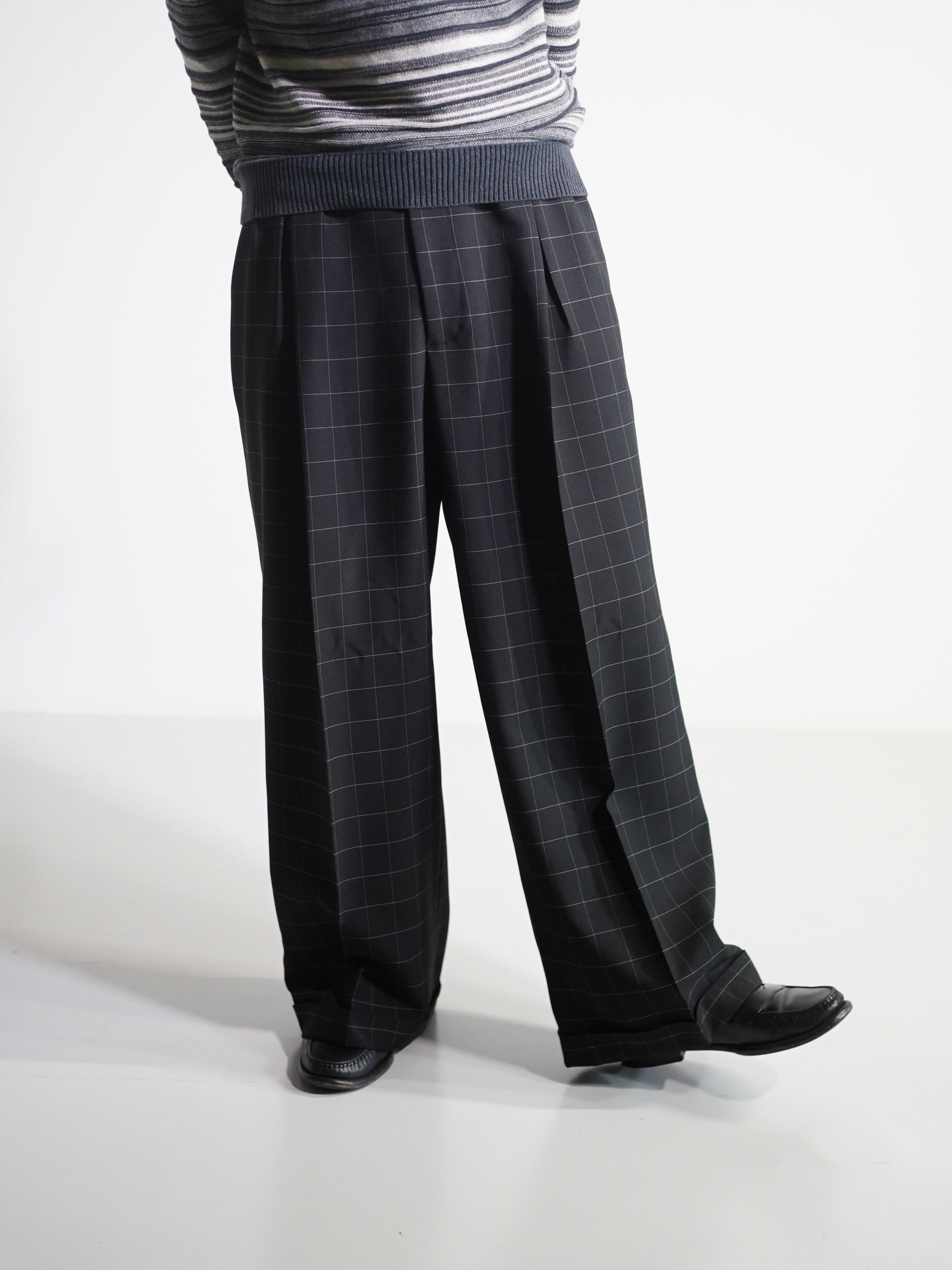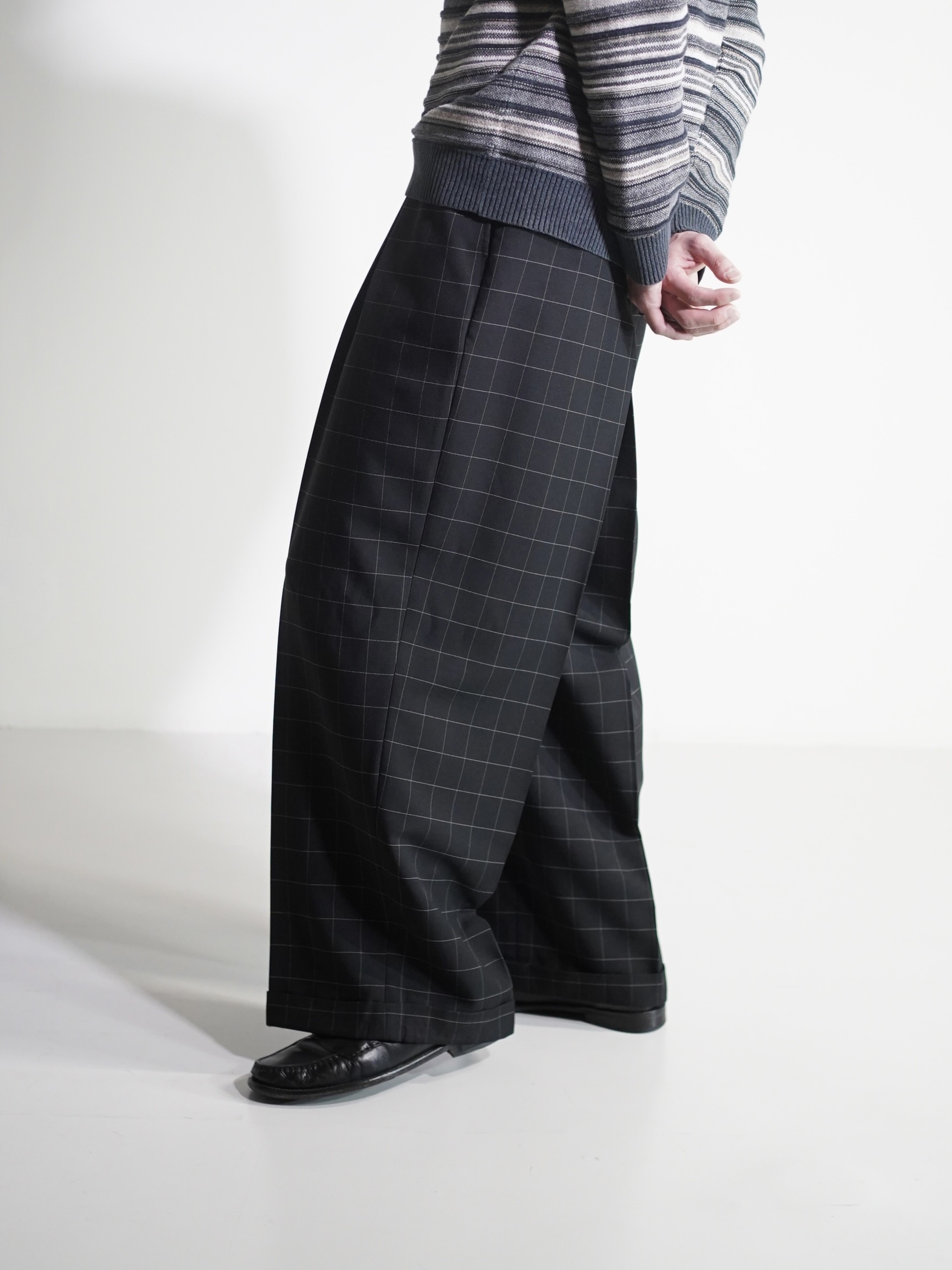 1990's Rudolfo Box-tuck window pen check wide slacks