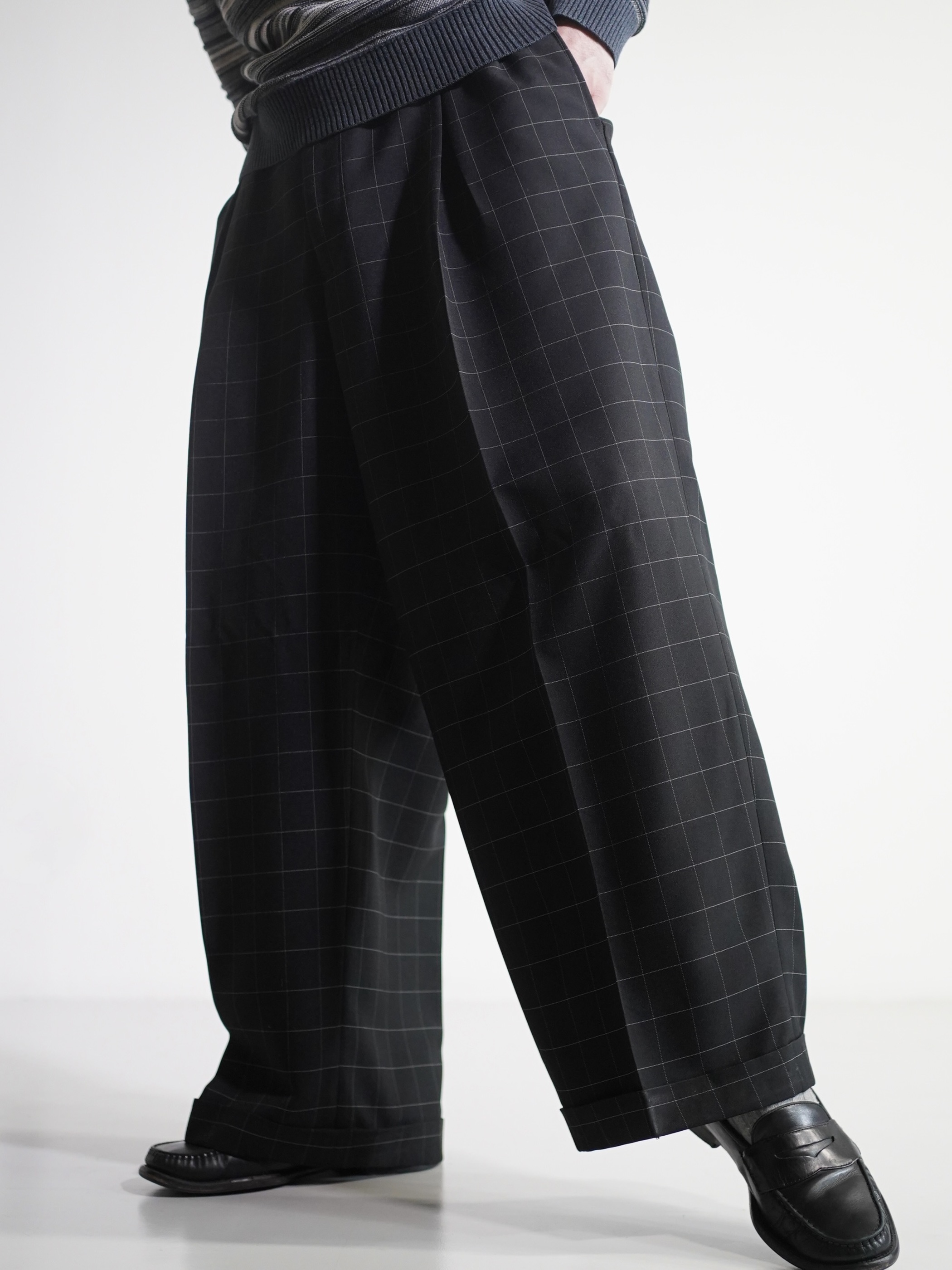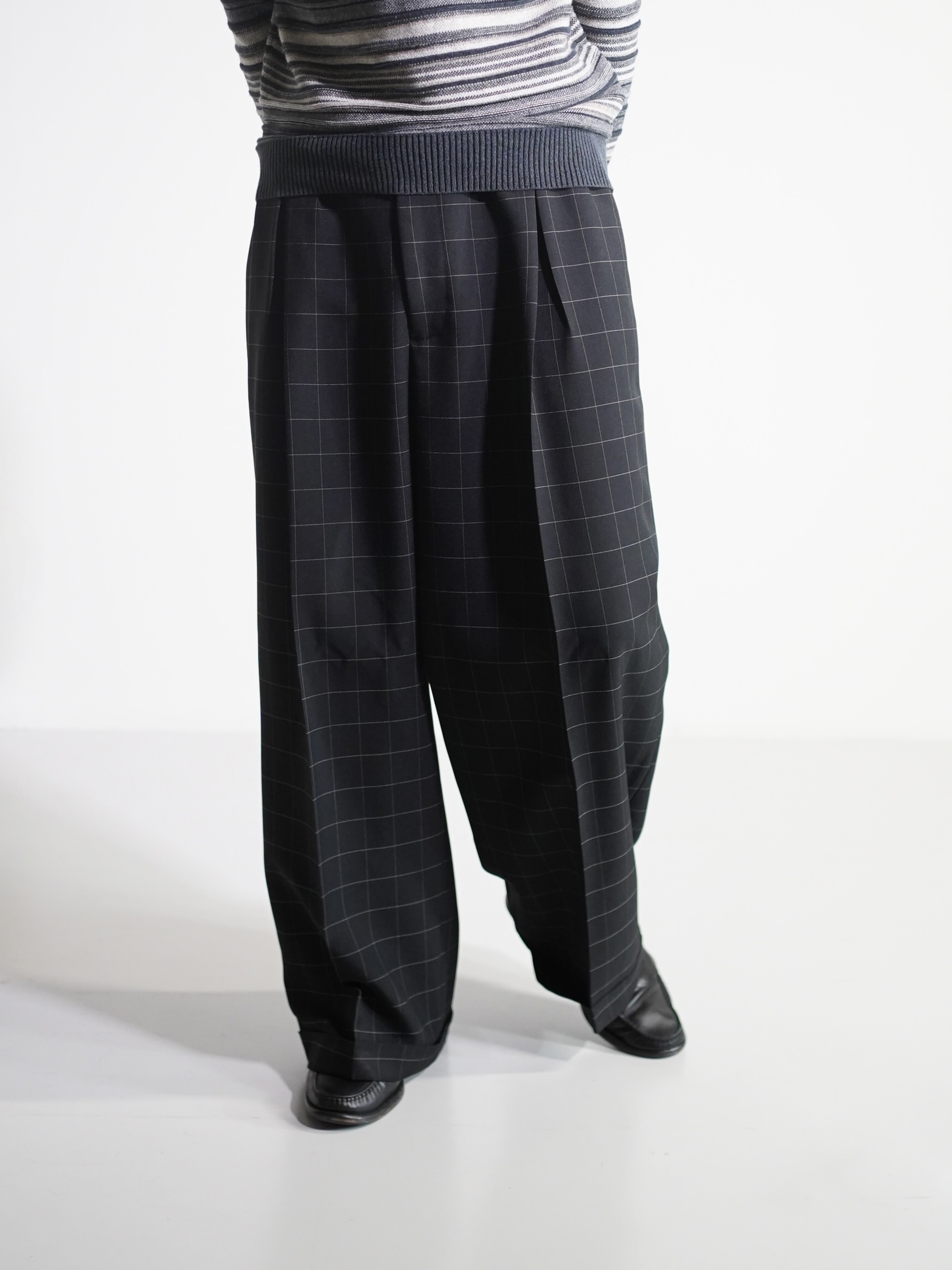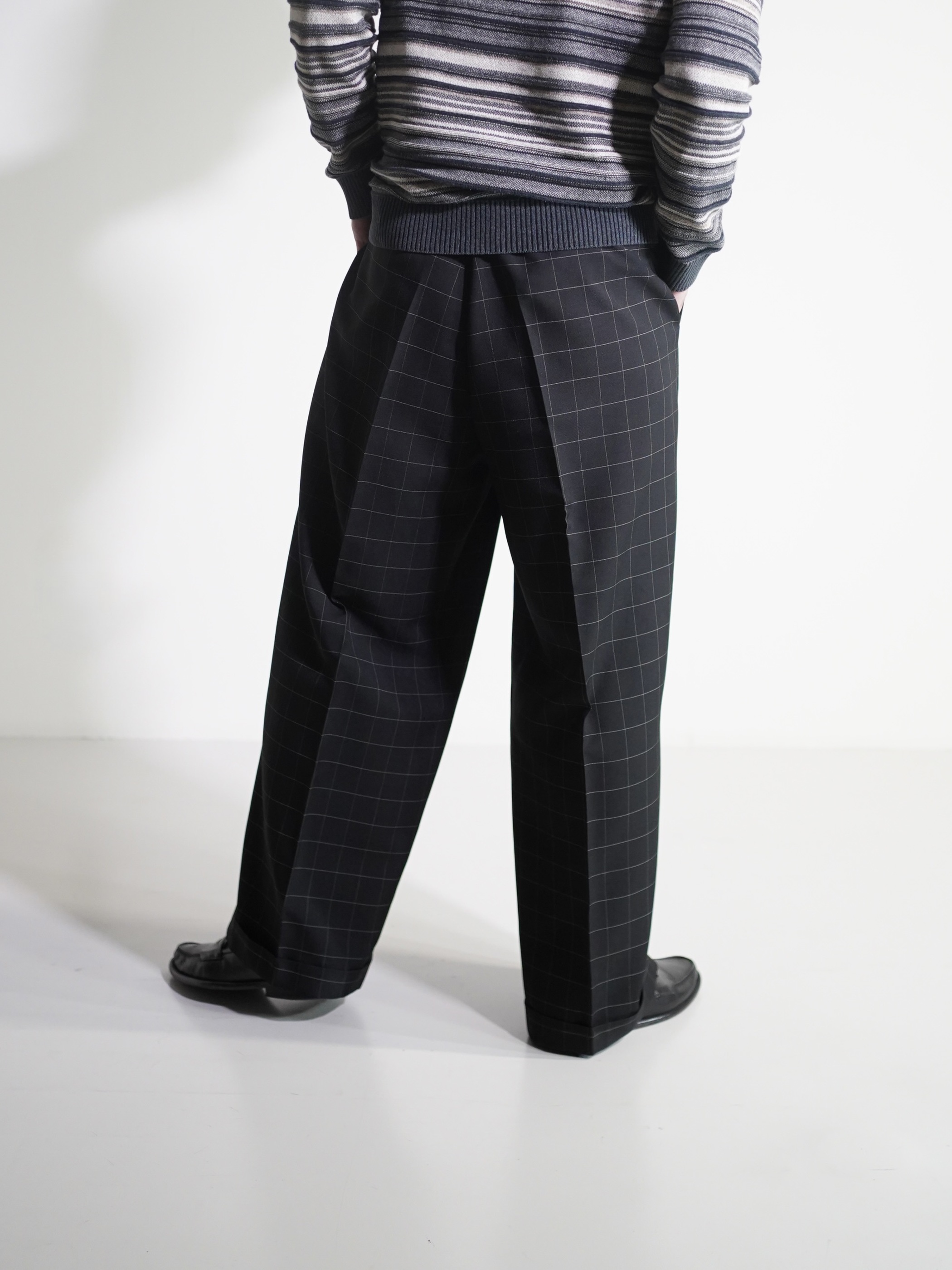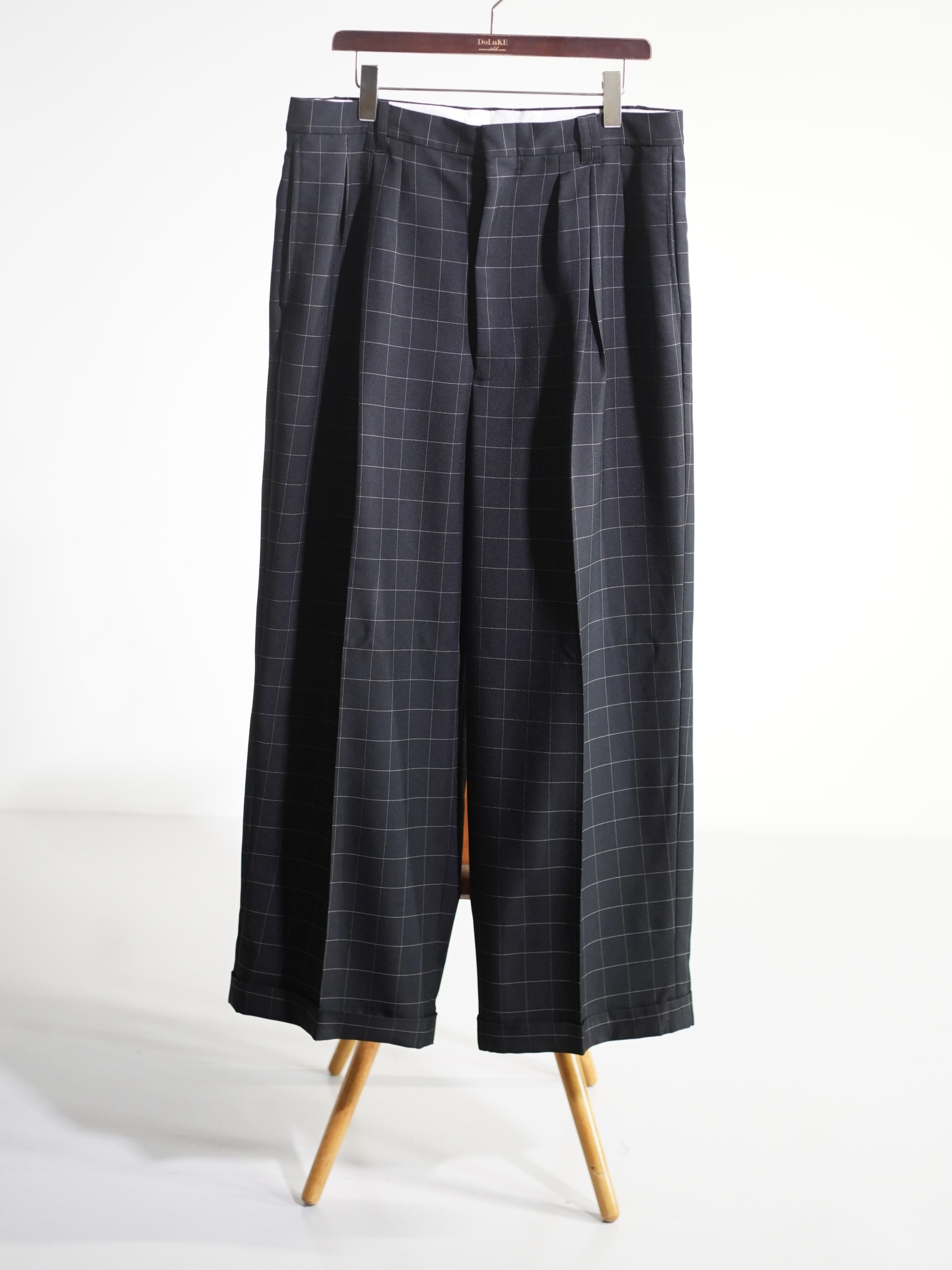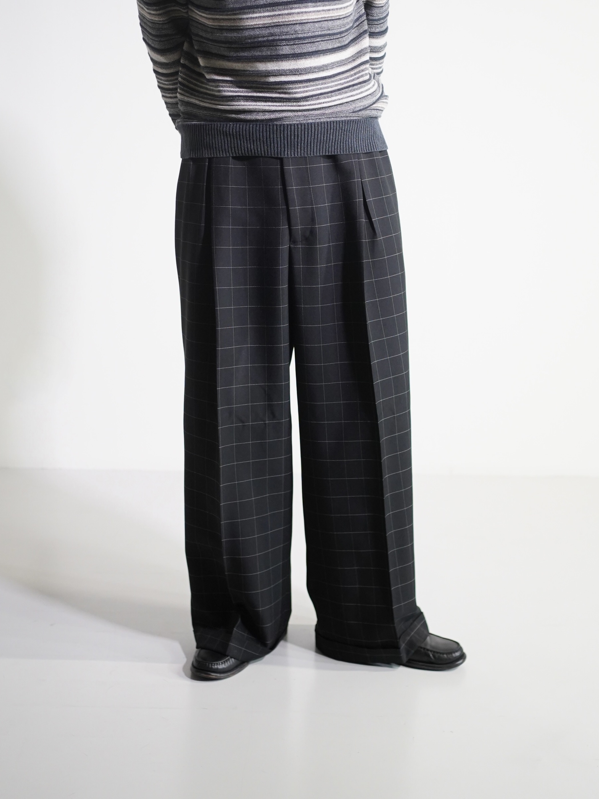 1990's Rudolfo Box-tuck window pen check wide slacks