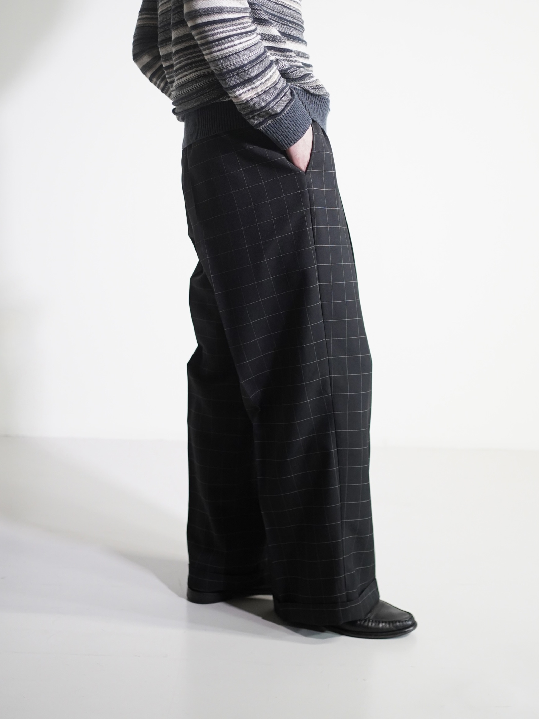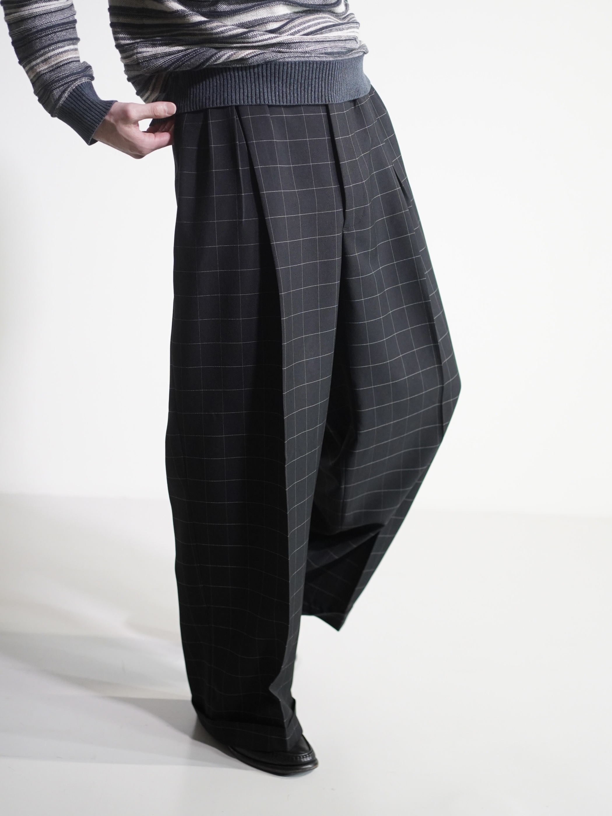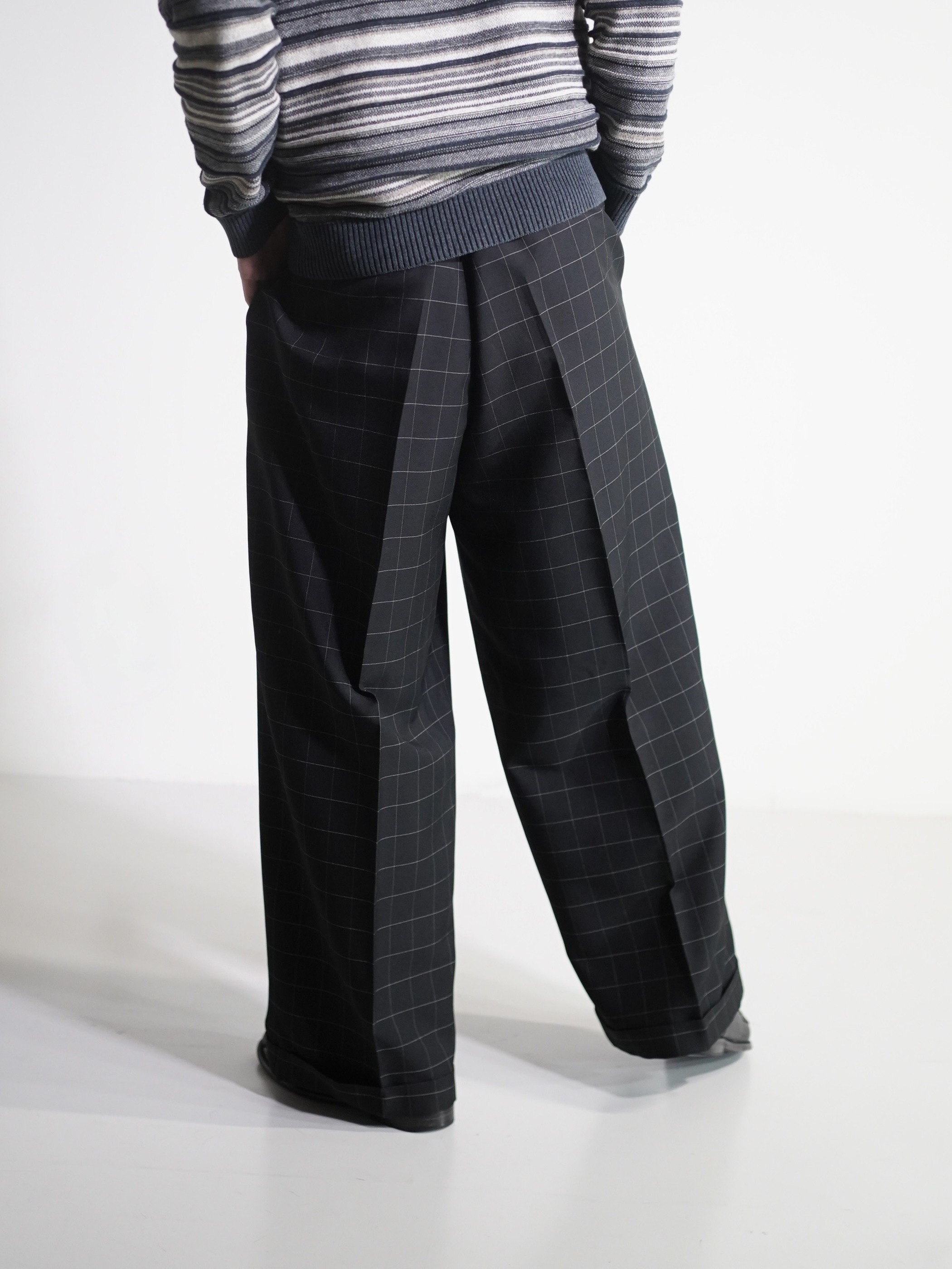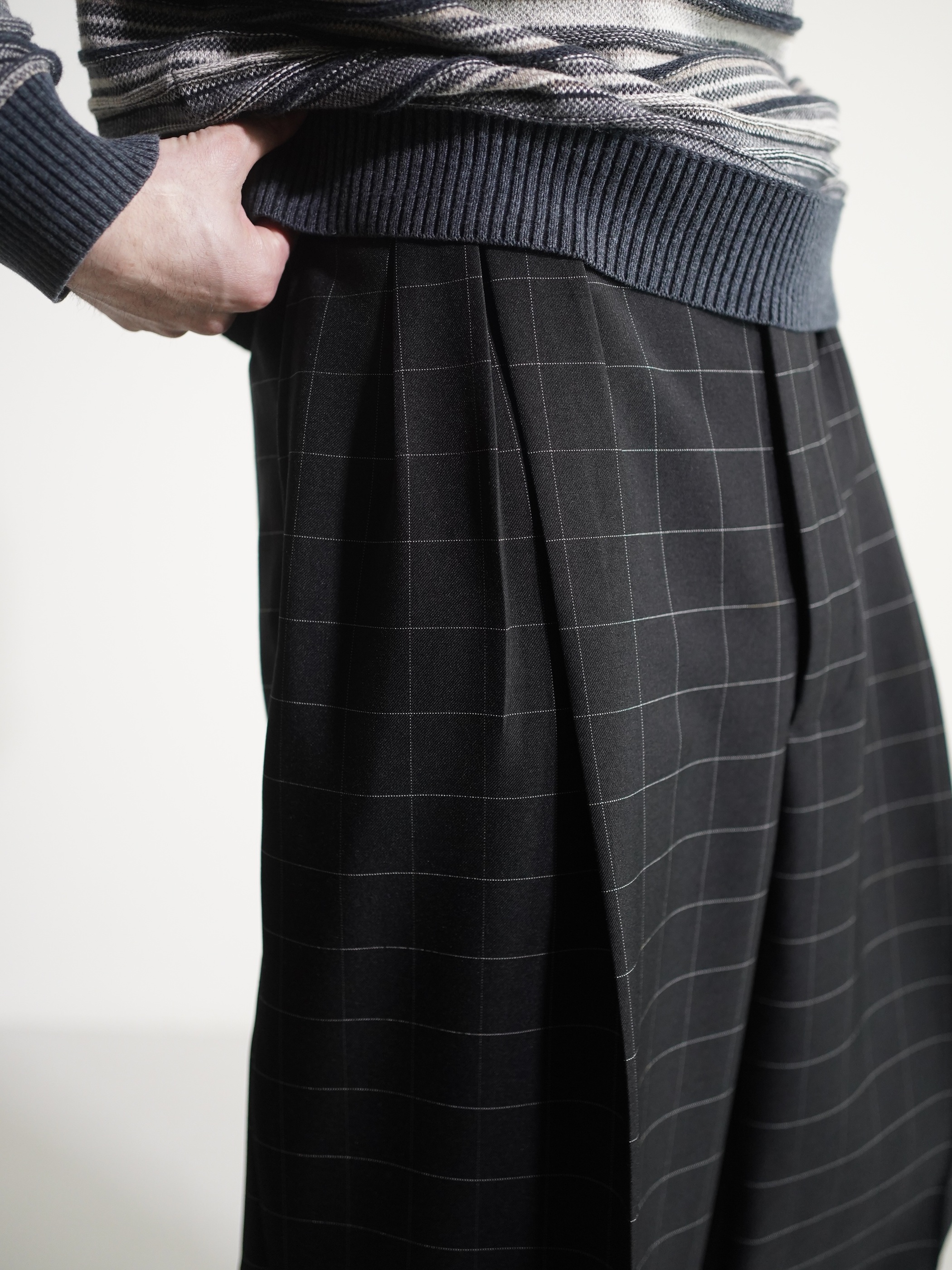 1990's Rudolfo Box-tuck window pen check wide slacks