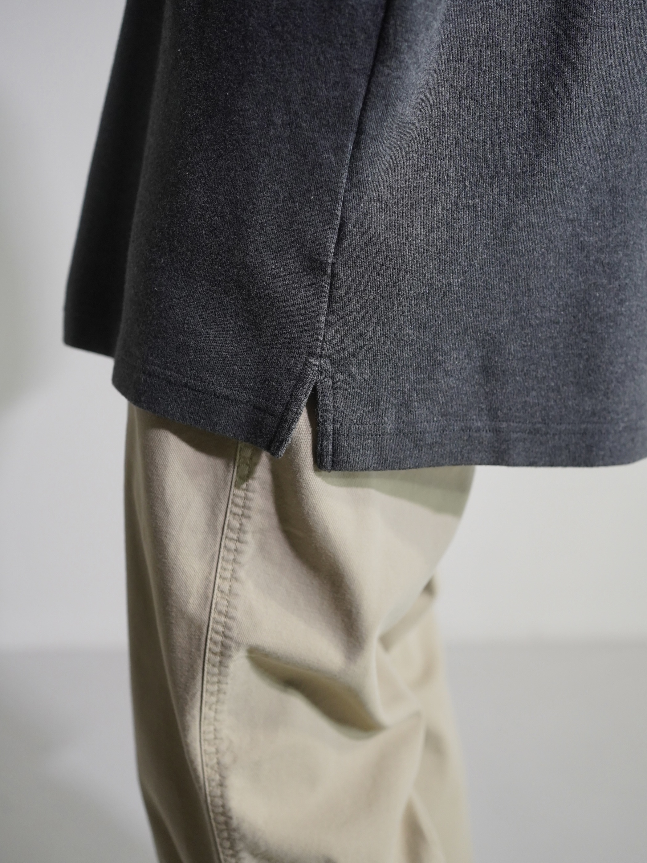 コットンの質感とサイズバランスが程よく、リラックスムードで着やすい逸品です。