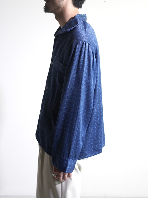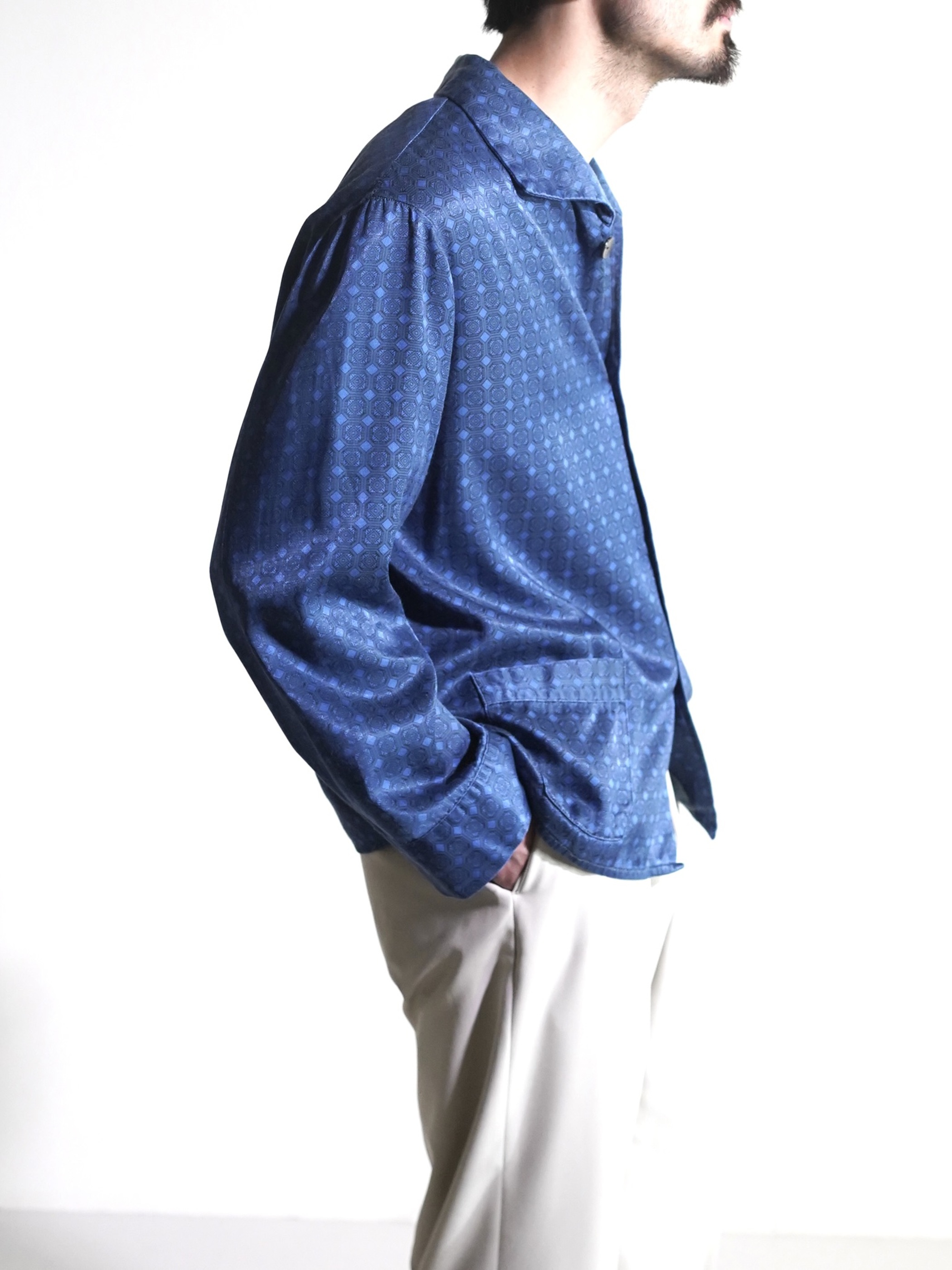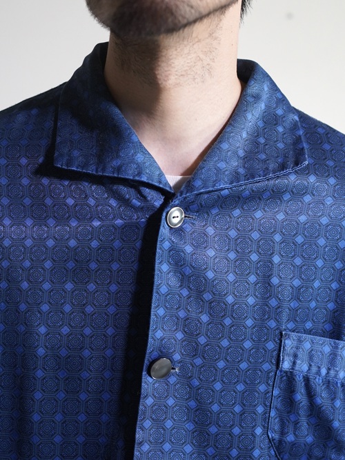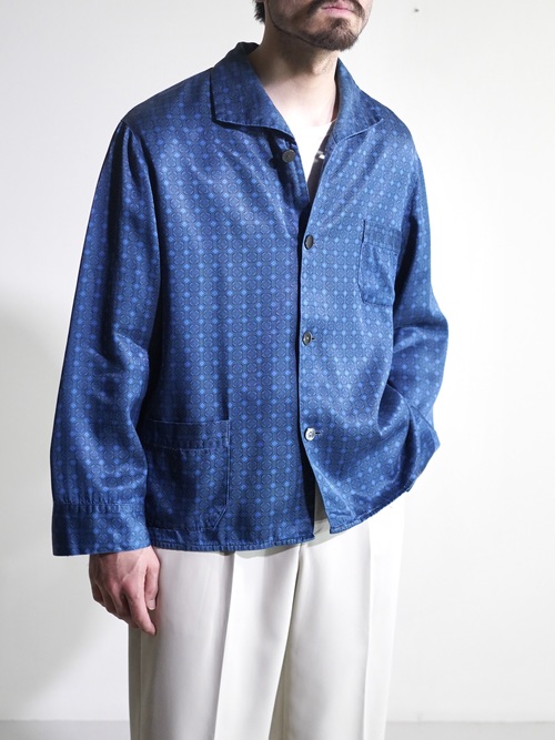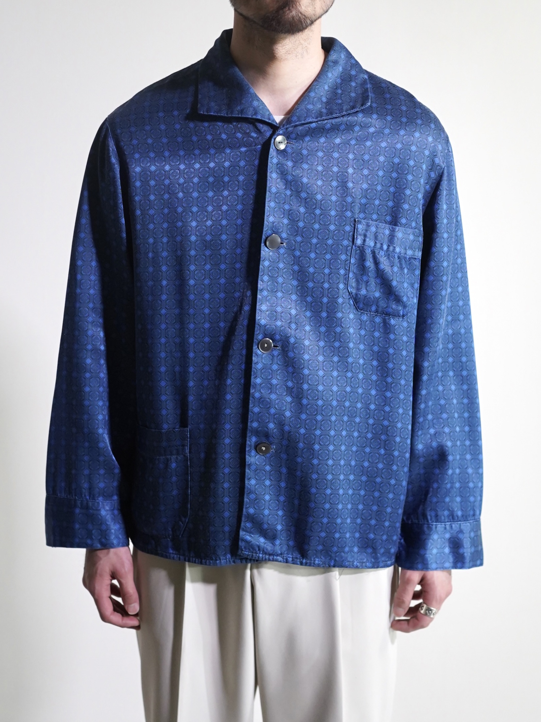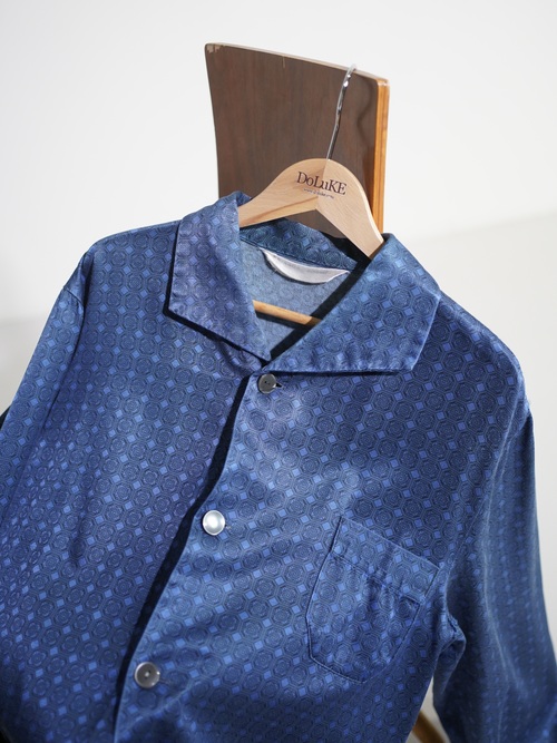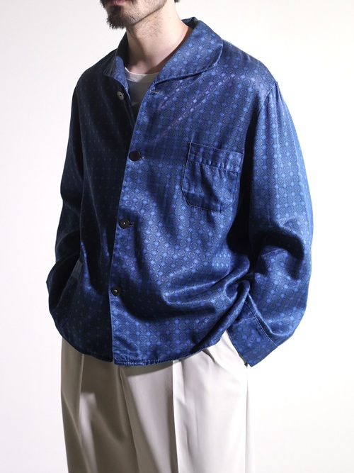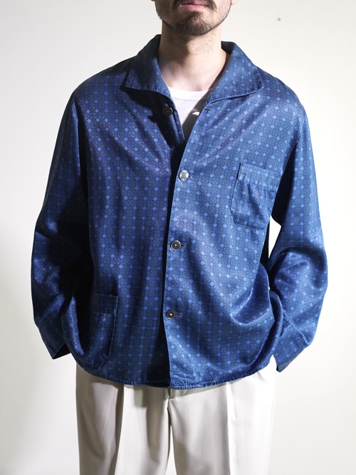 1980's Europa horizontal open collar exotic pattern poly fab pajama shirts