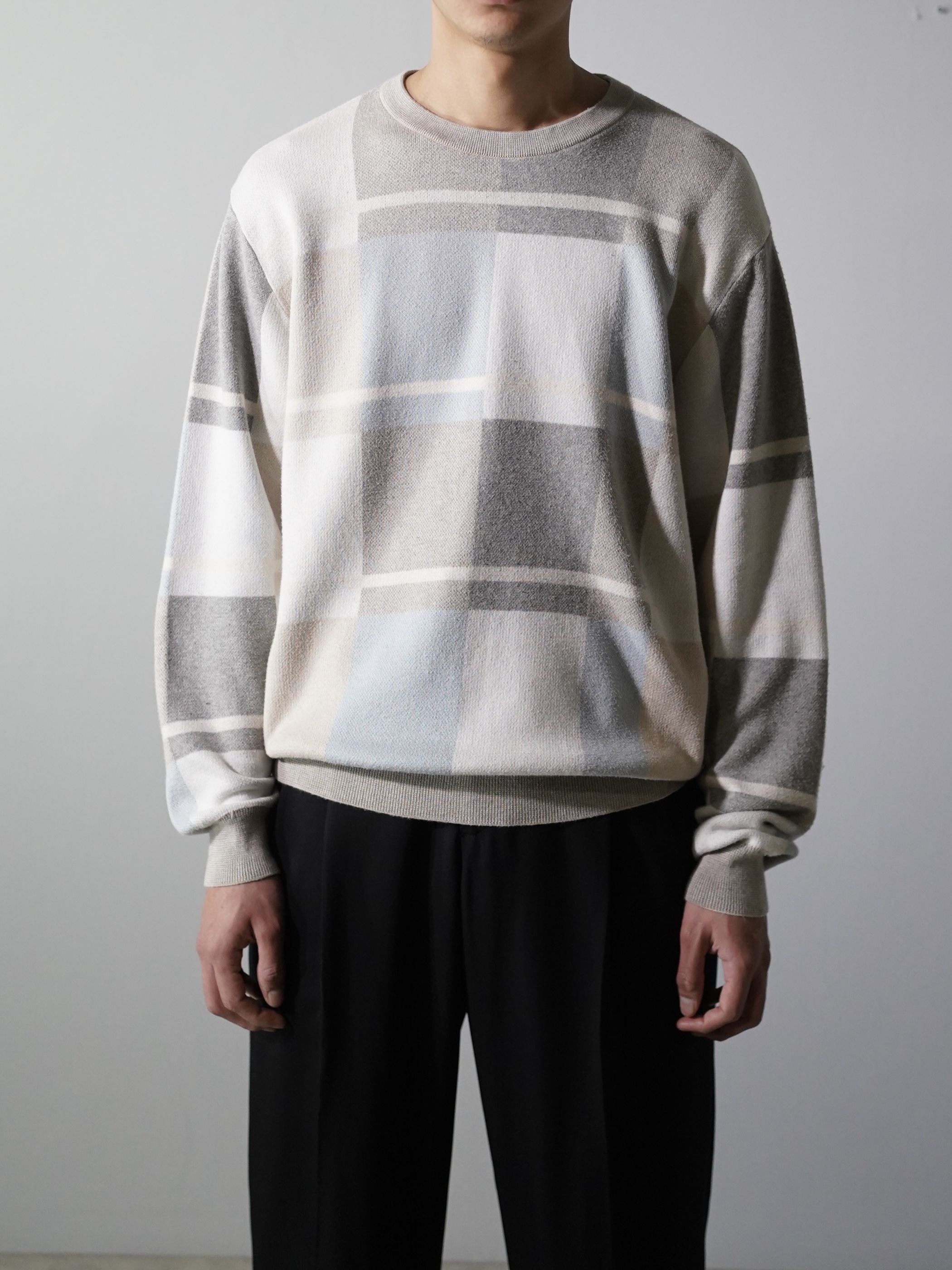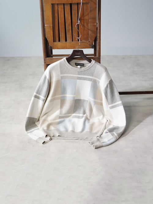 1990~00's Bullock&Jones 100% Pima cotton block pattern knit sweater/Made in Peru