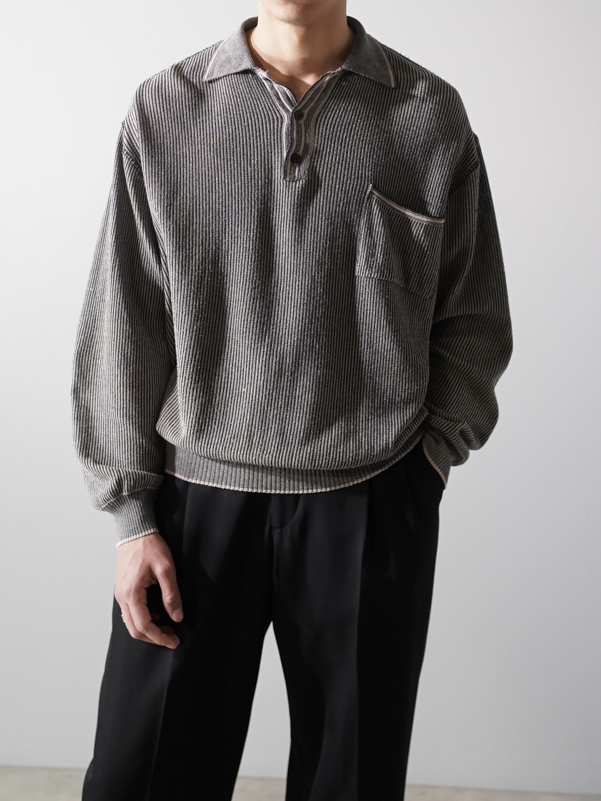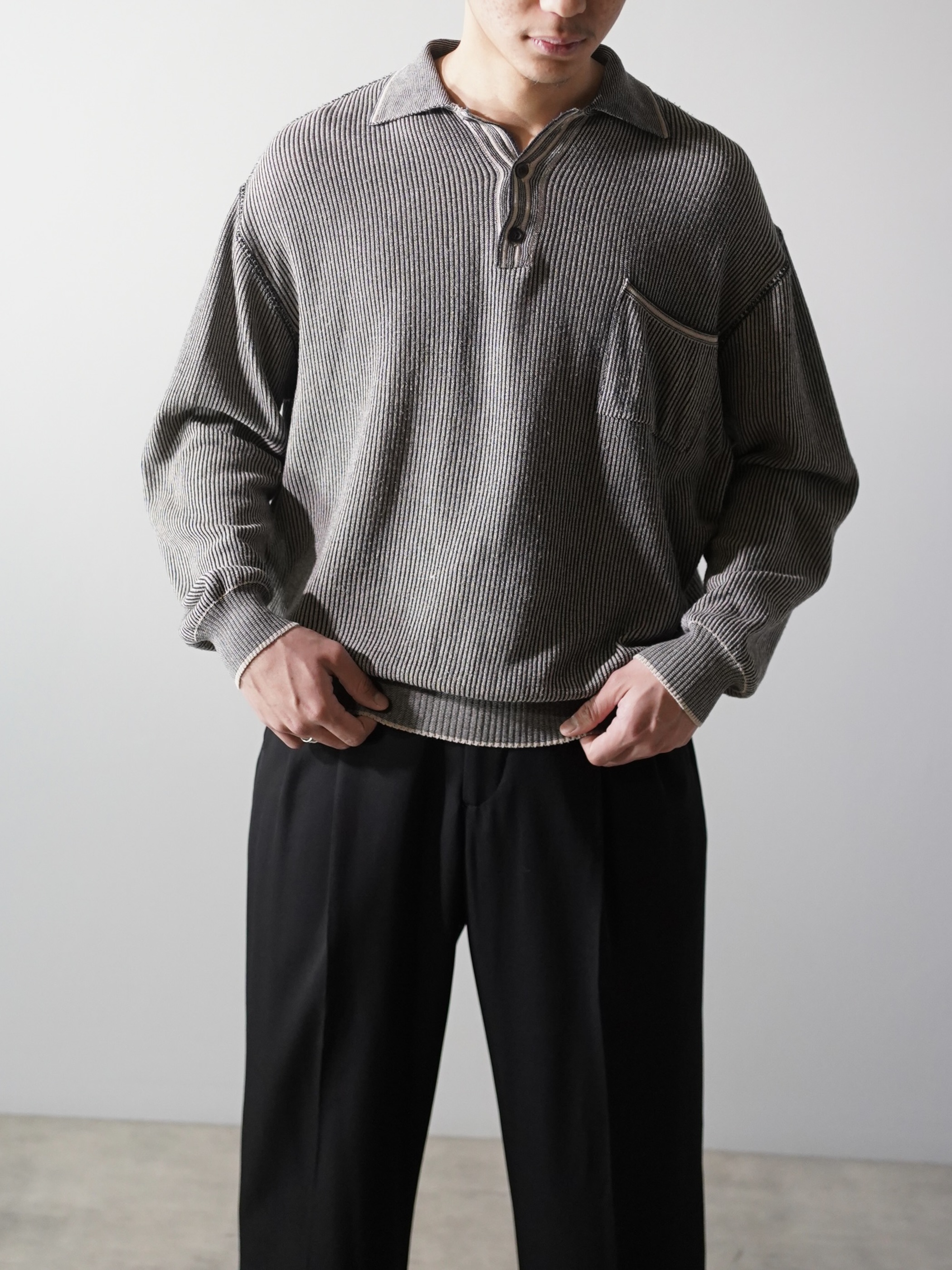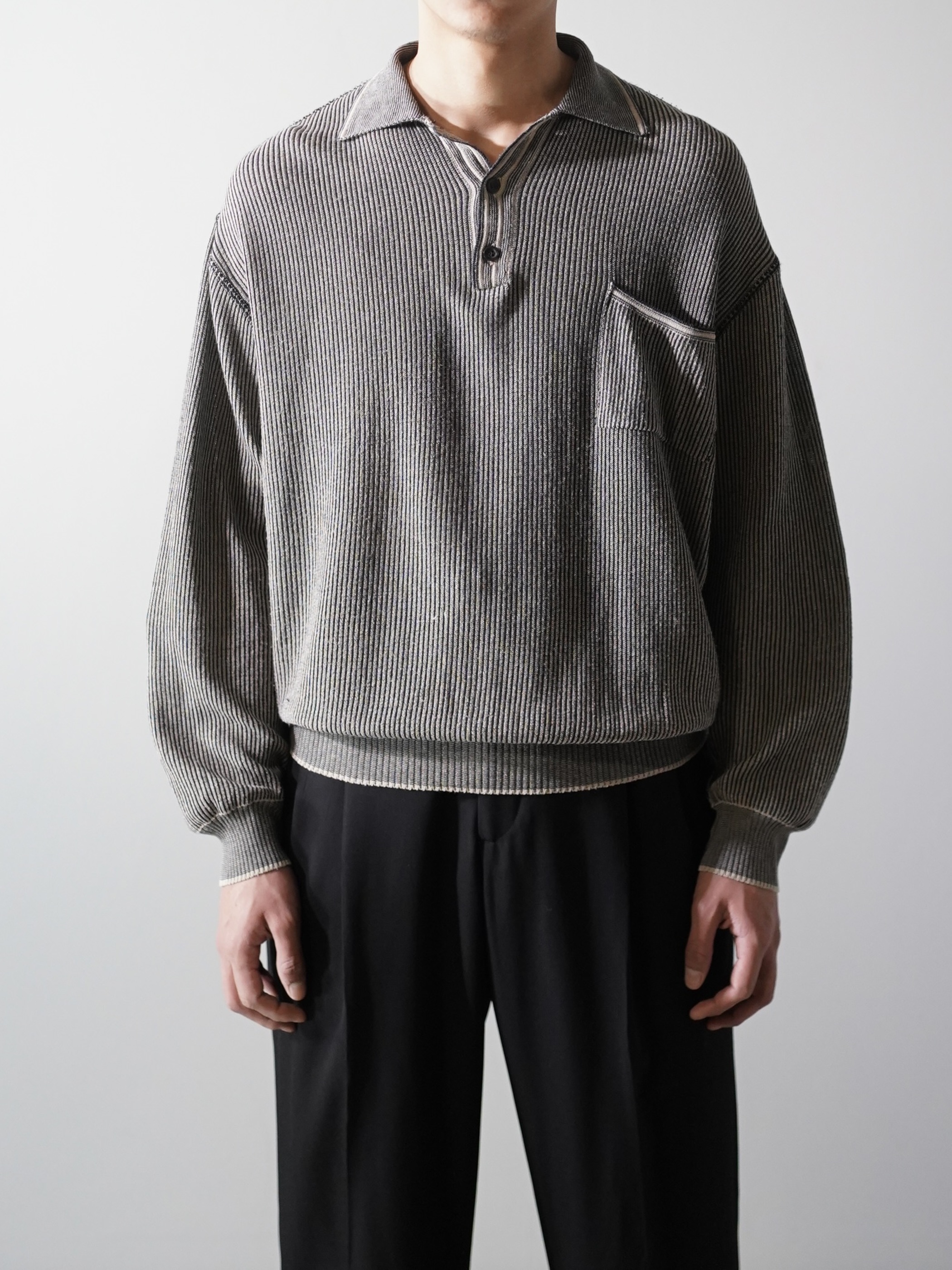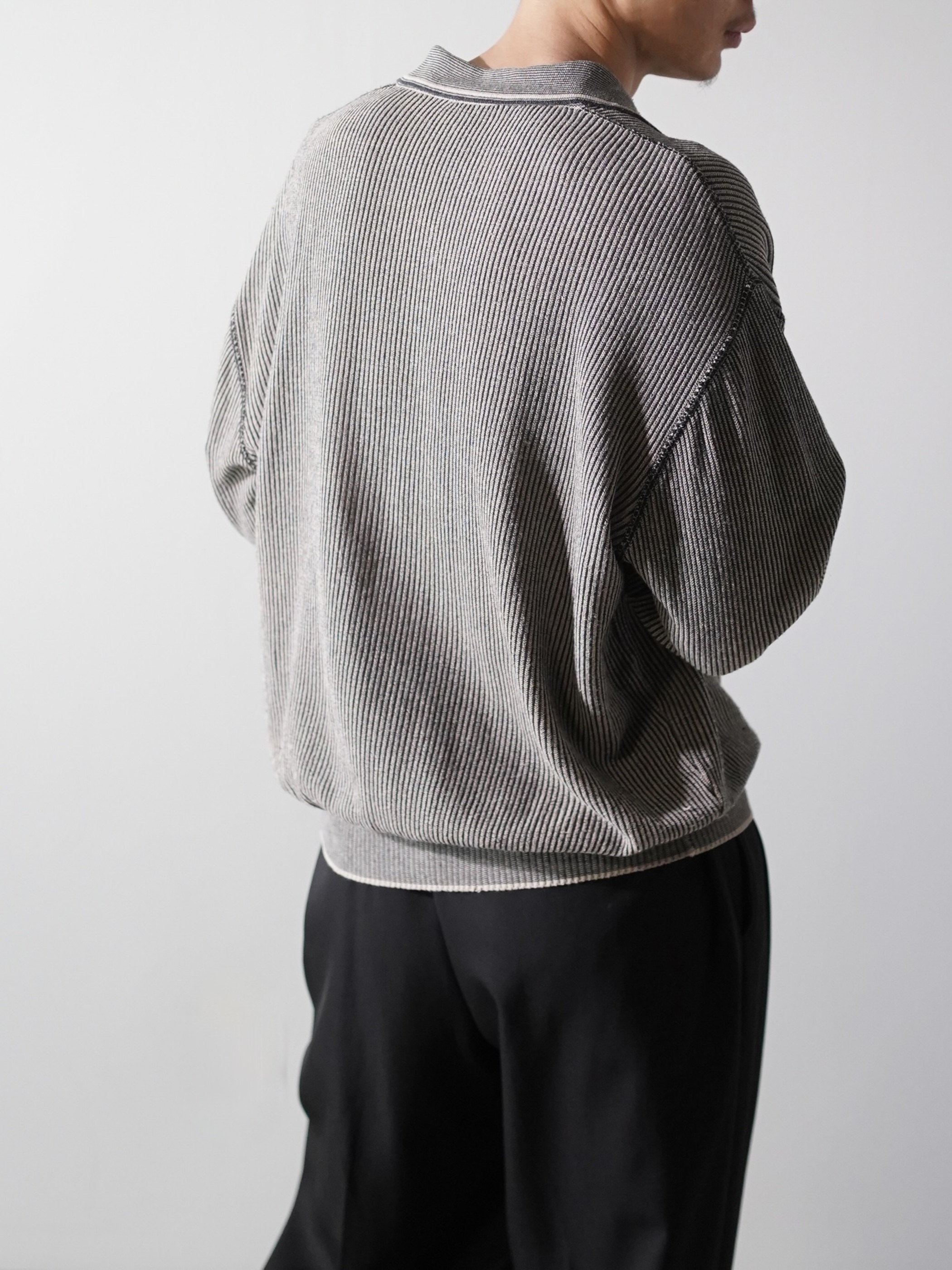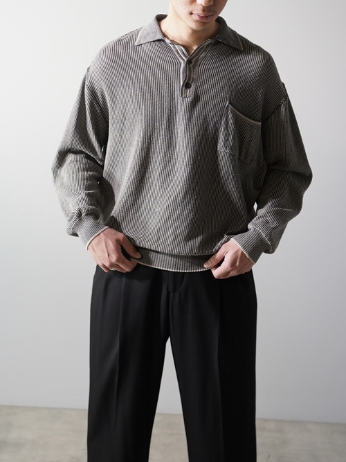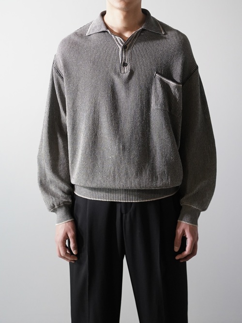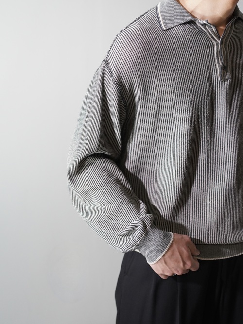 軽く透け感のあるローゲージニットポロ。