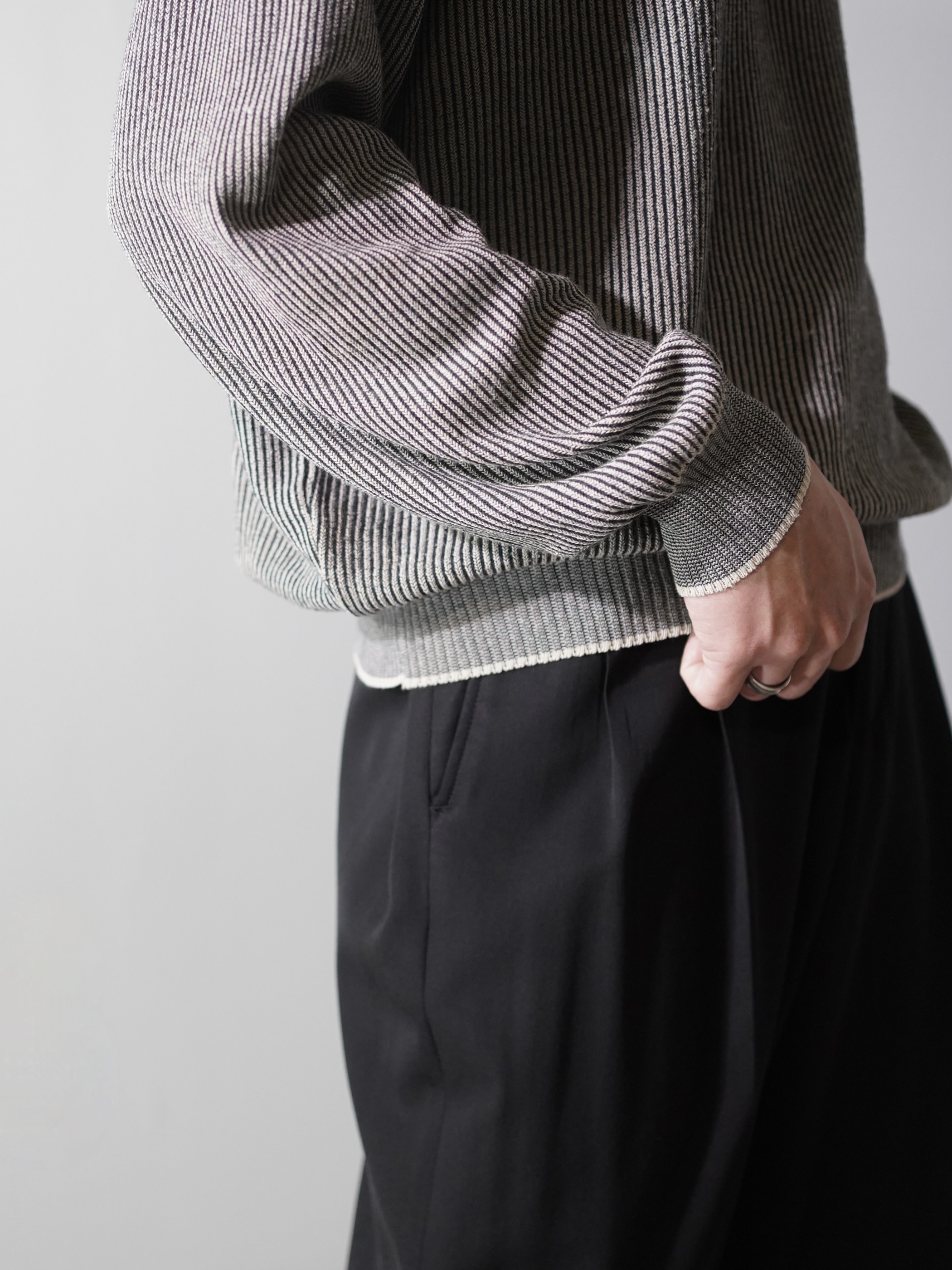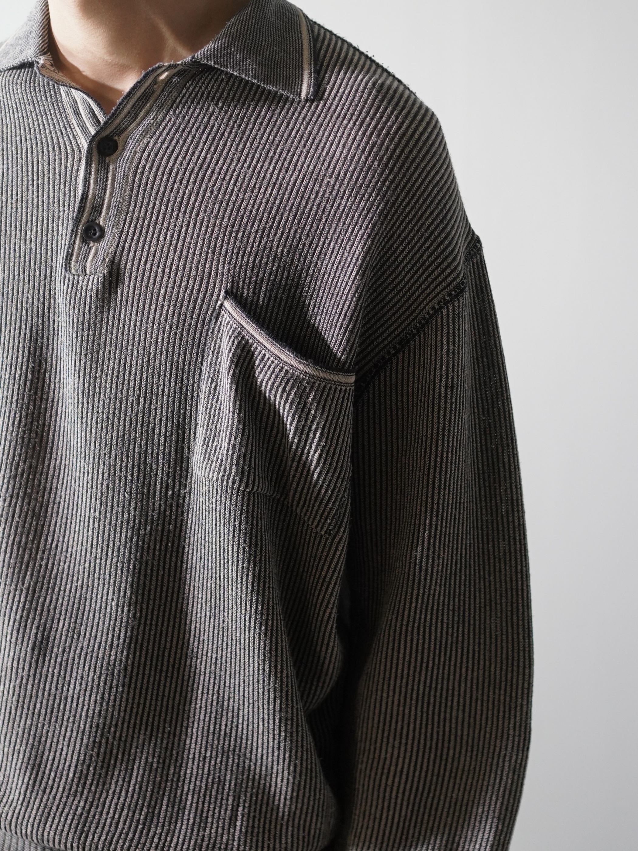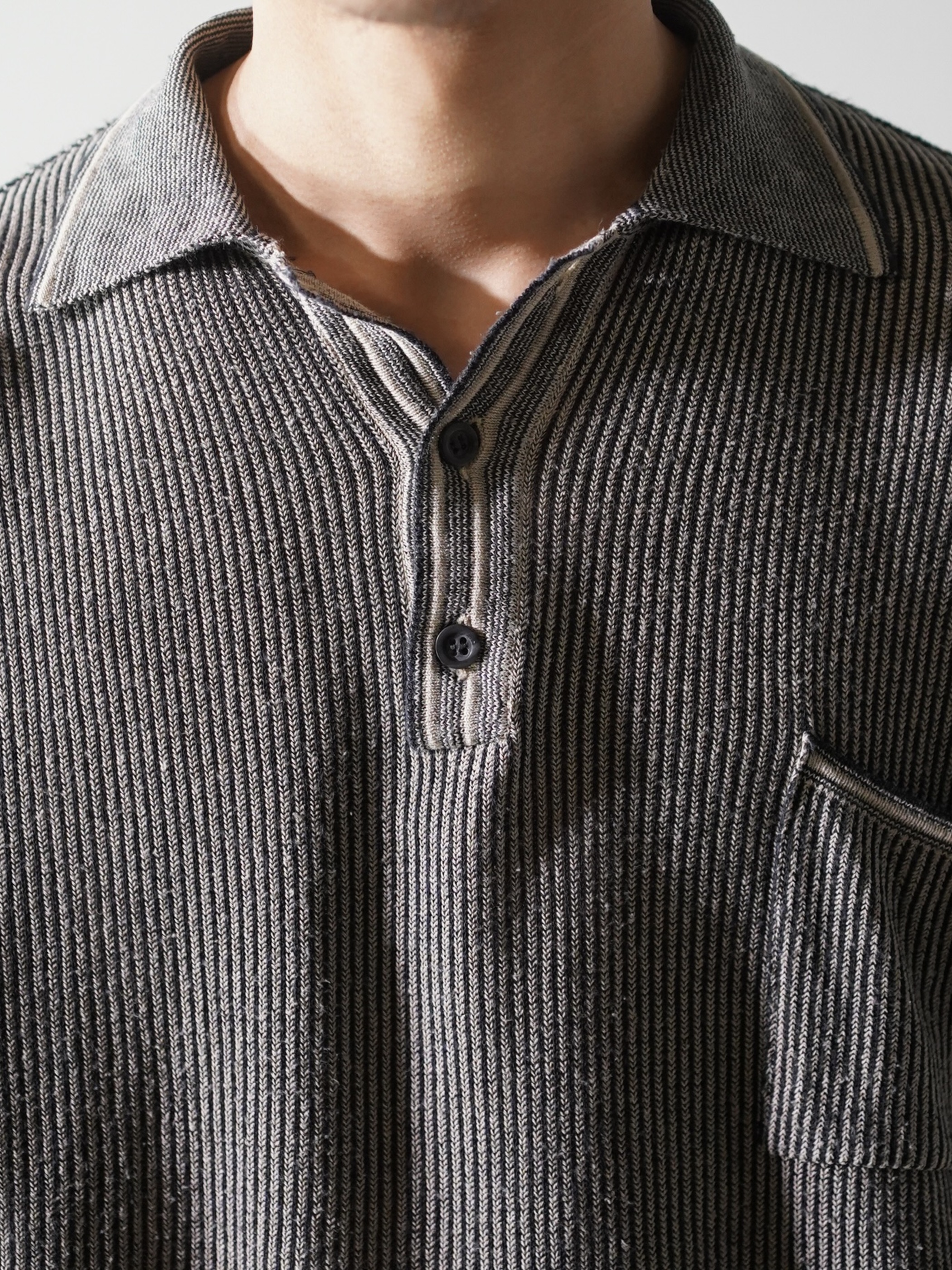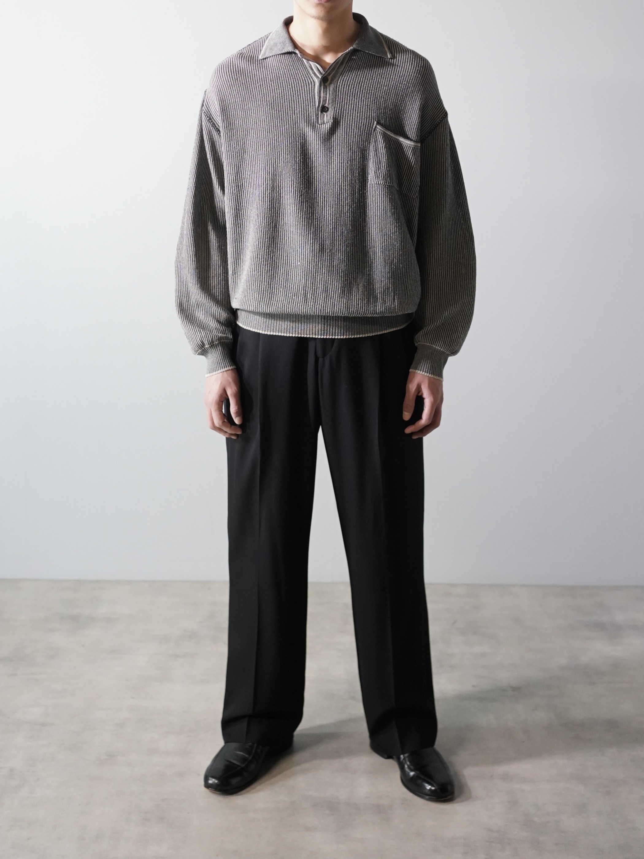 軽く透け感のあるローゲージニットポロ。