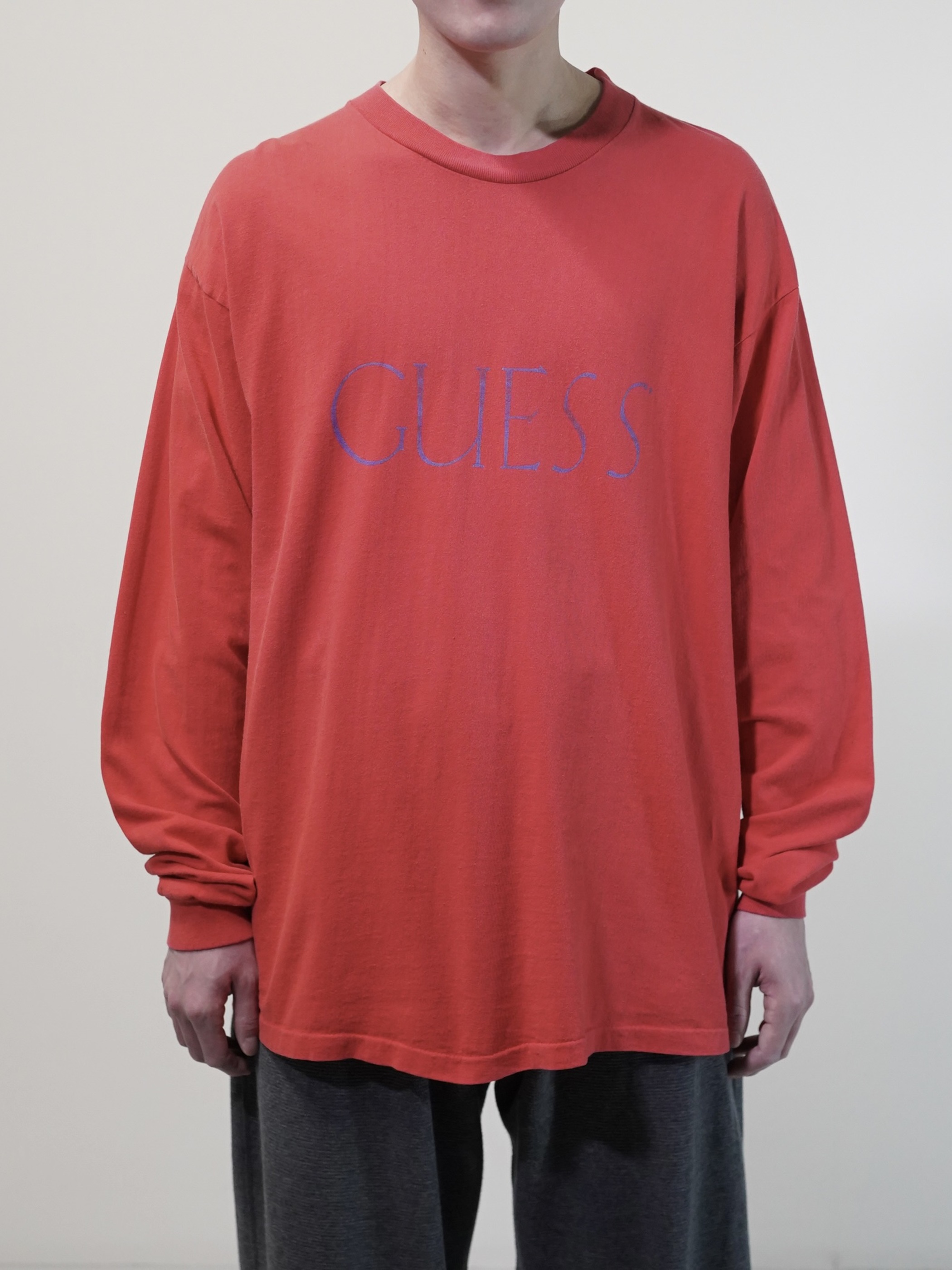 1990's GUESS Print L/S T-shirts/Made in USA