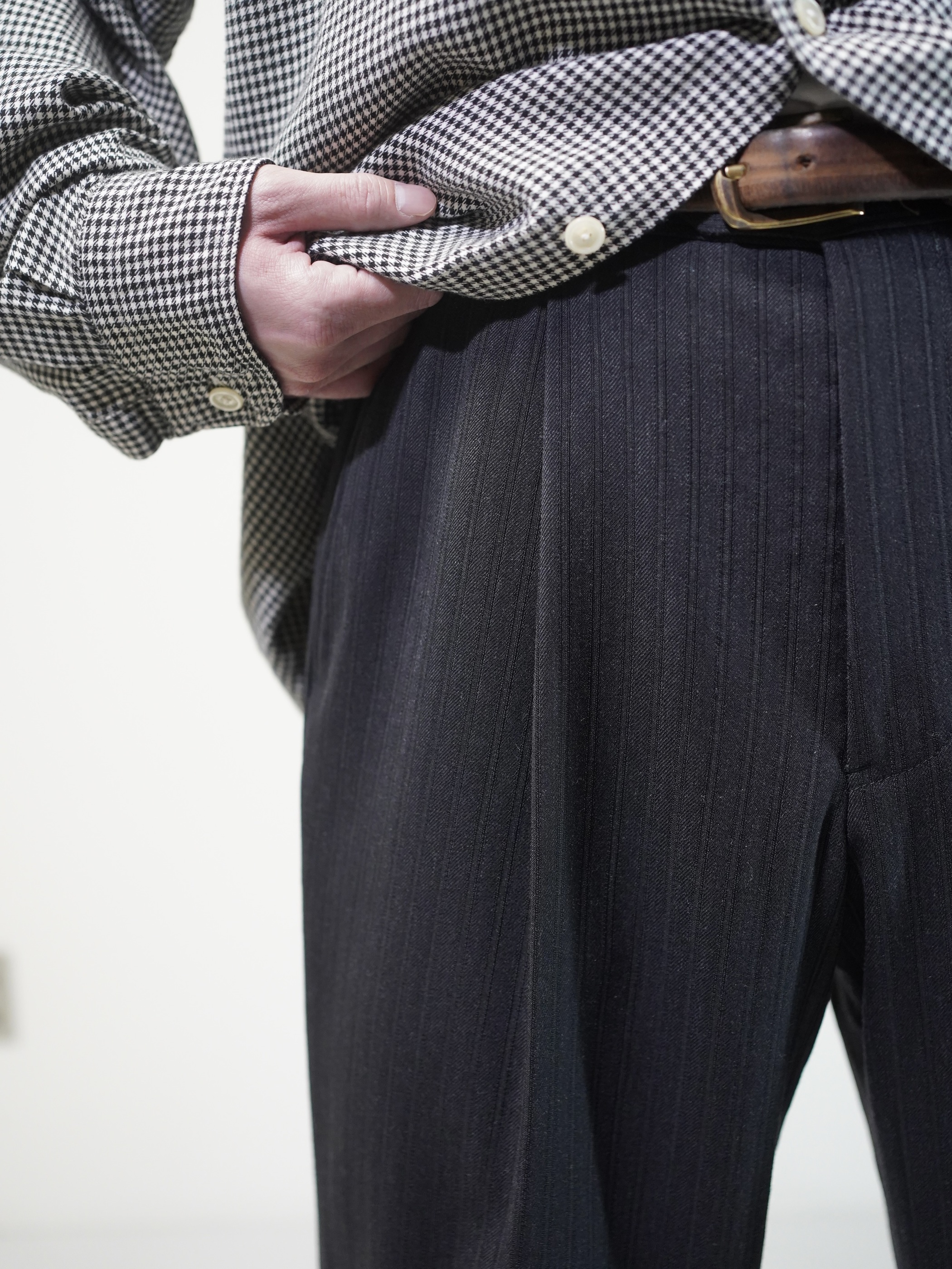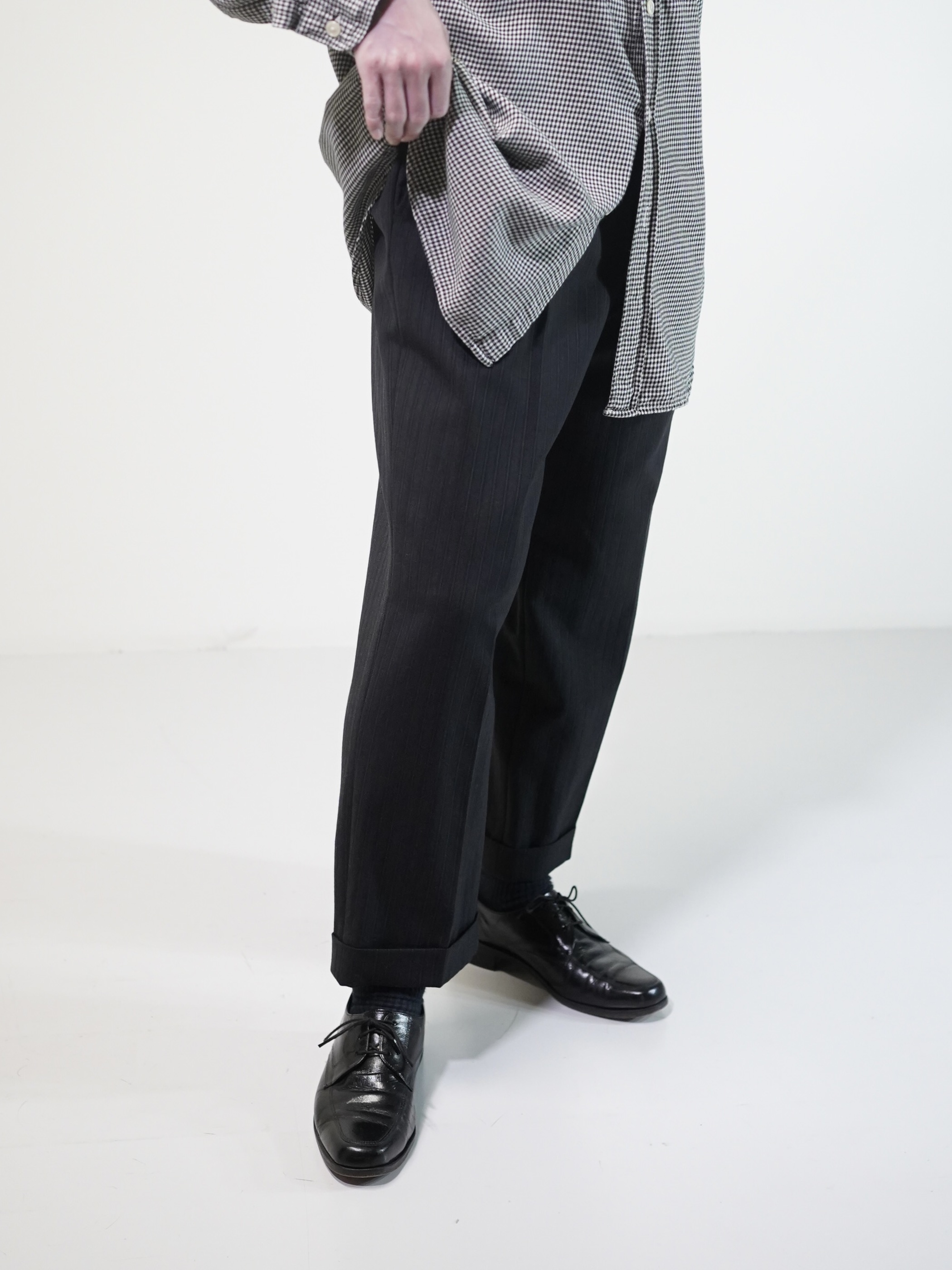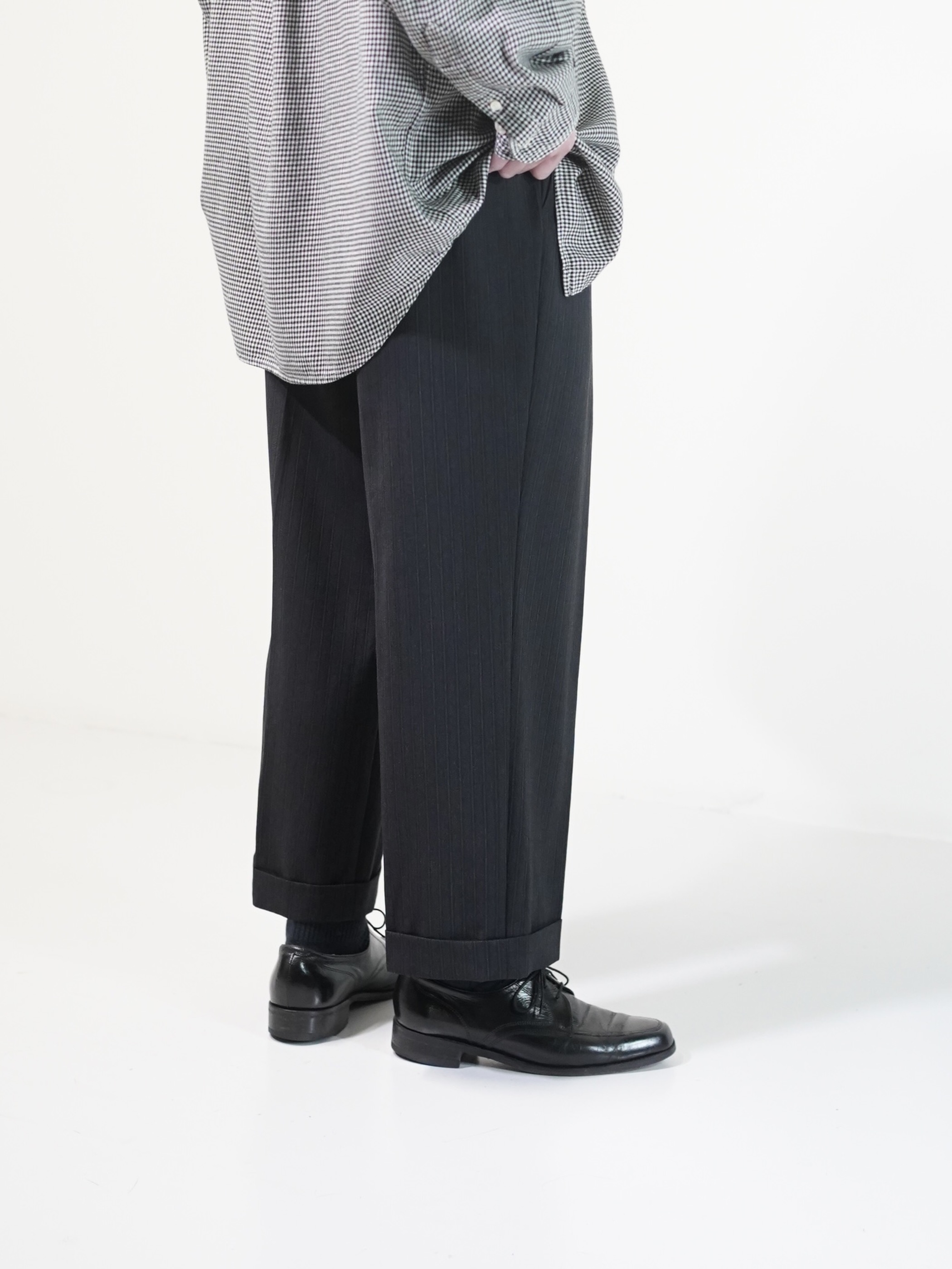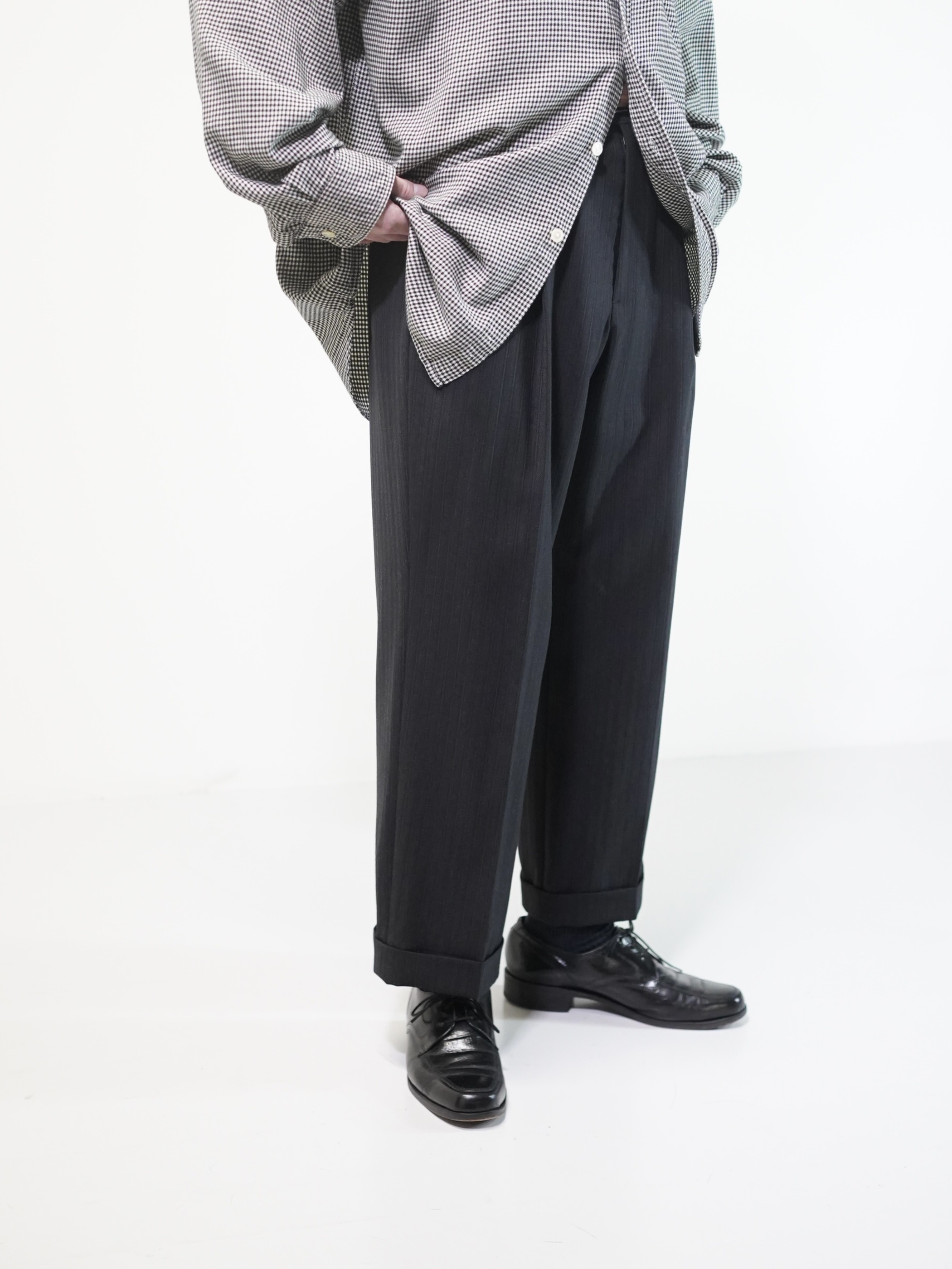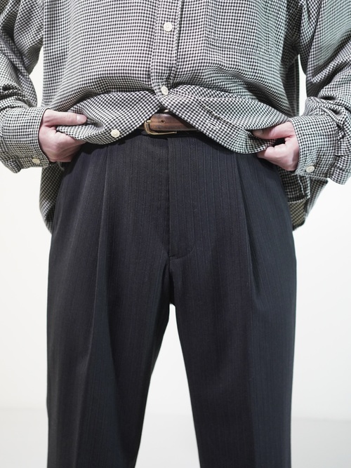 OLD ARMANI COLLEZIONI shadow-stripe 2tuck cropped dress slacks