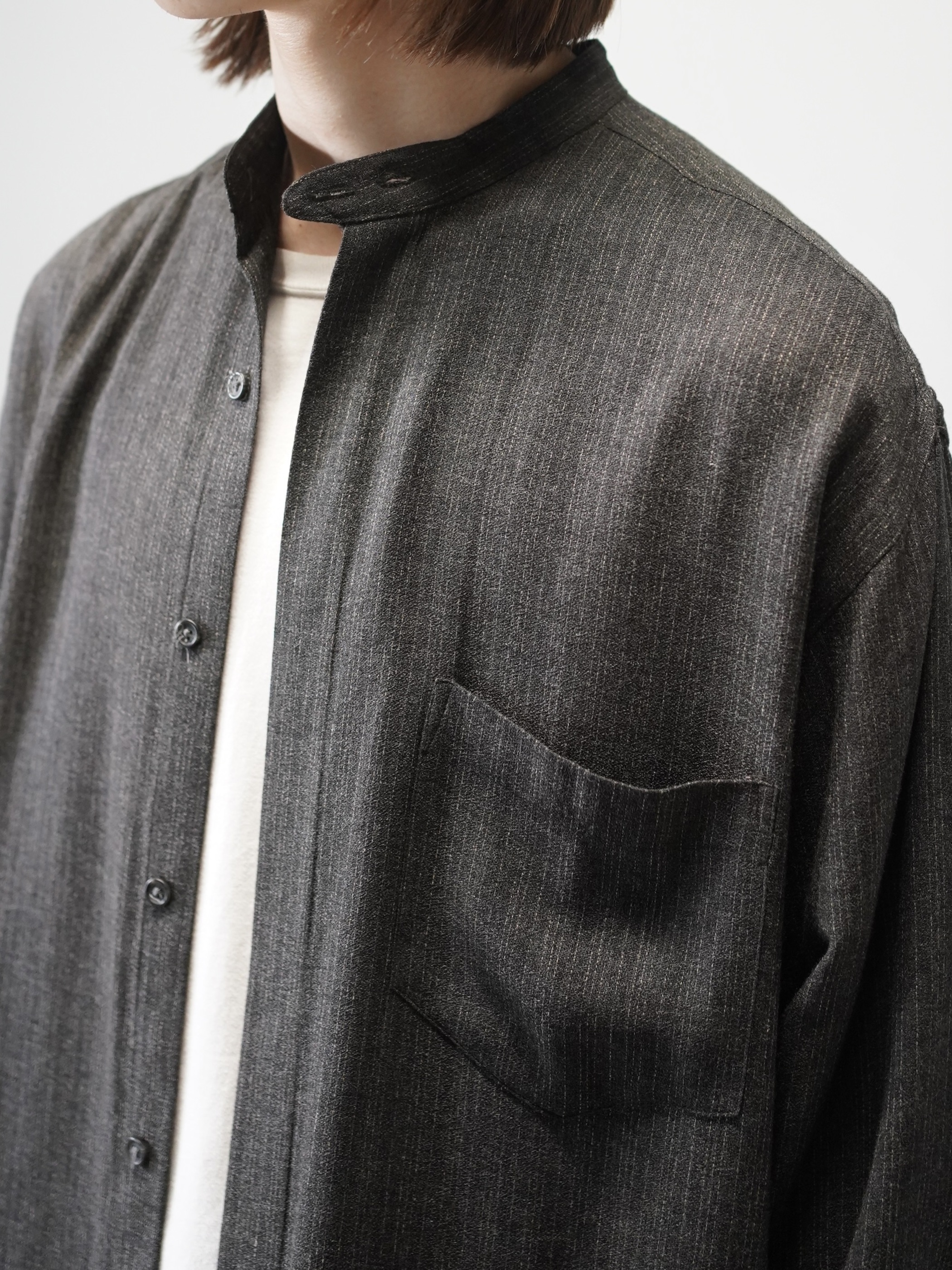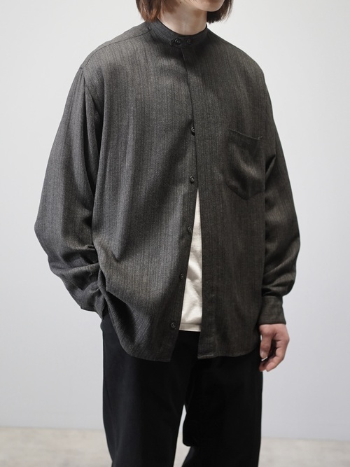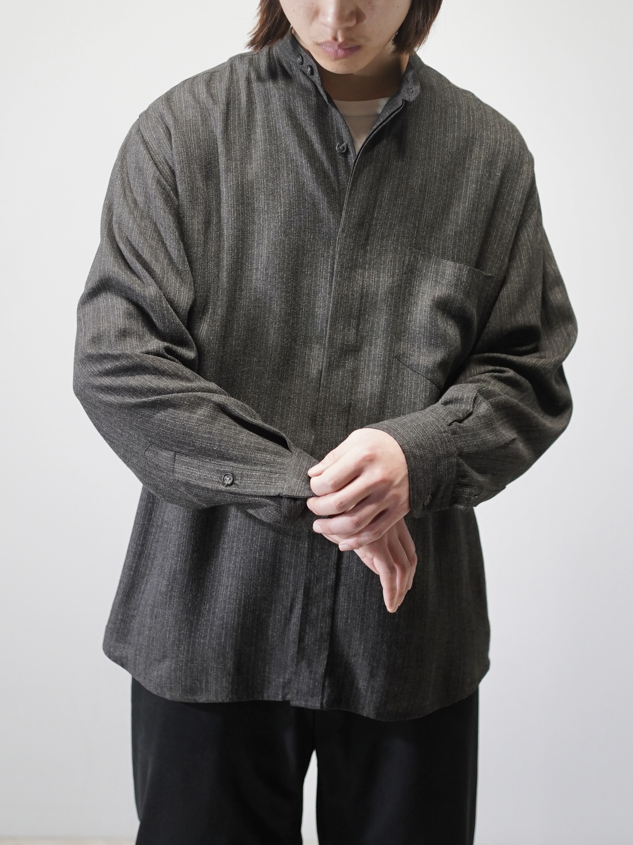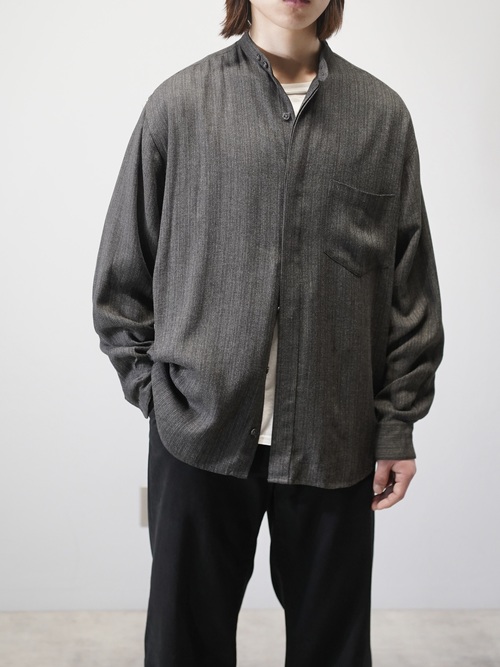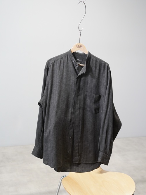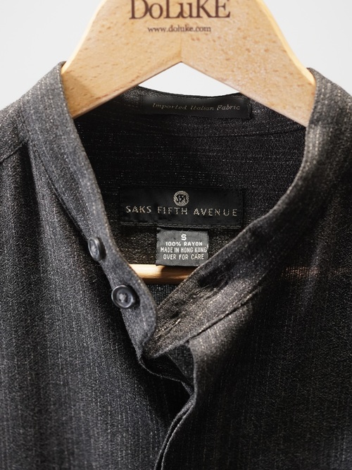1990's Saks Fifth Avenue chin-strap band collar rayon shirts/Made in HK Imported Italian fabric