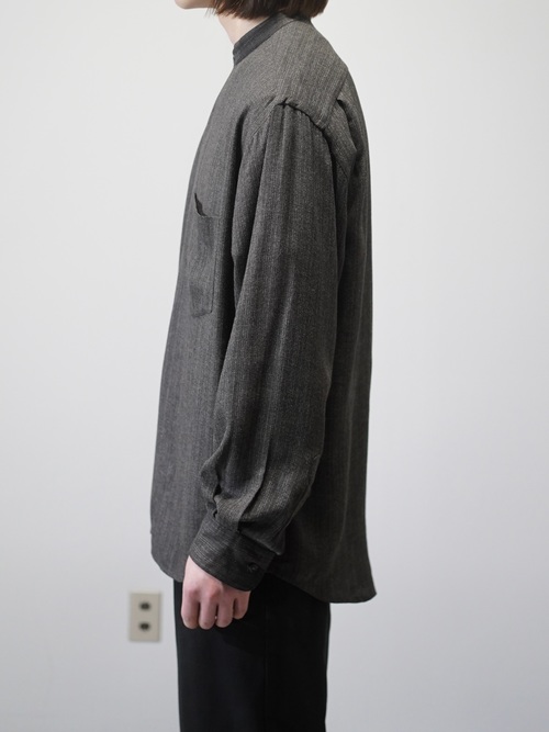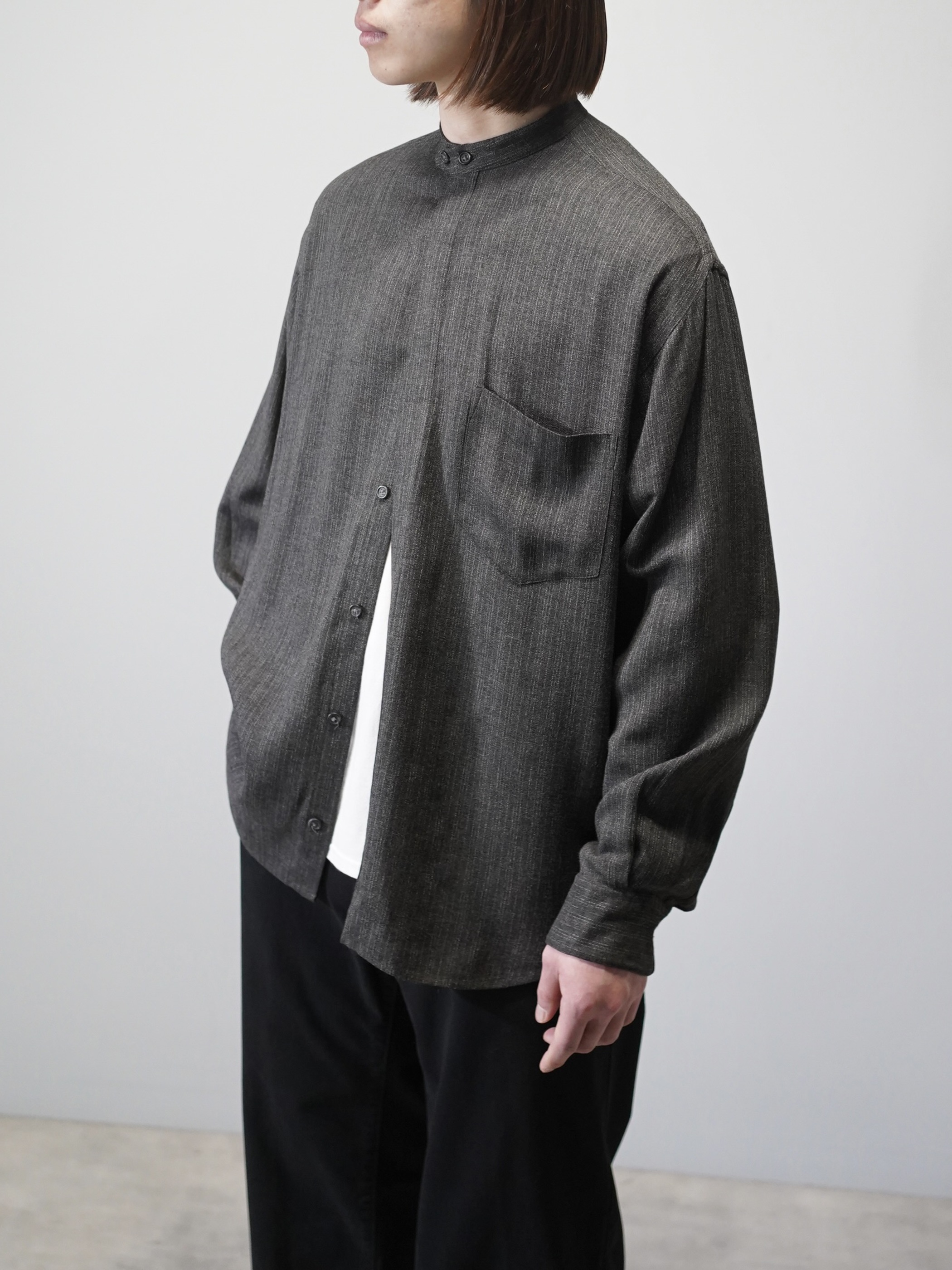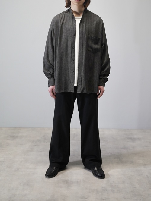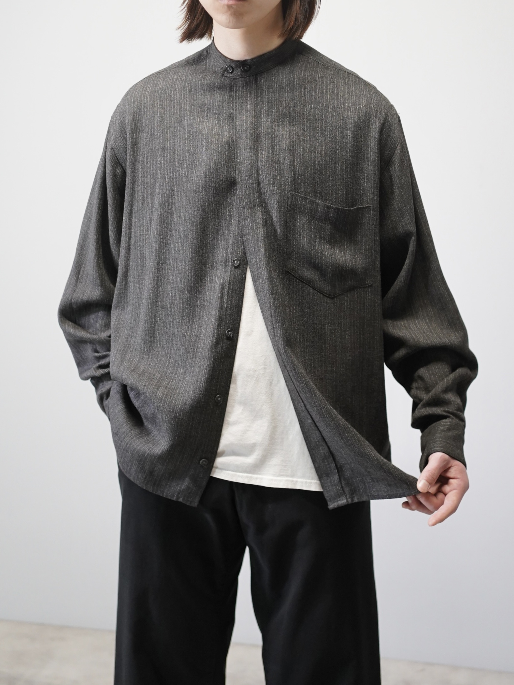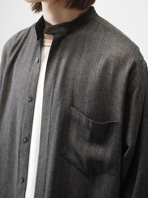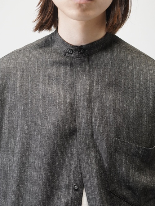 1990's Saks Fifth Avenue chin-strap band collar rayon shirts/Made in HK Imported Italian fabric