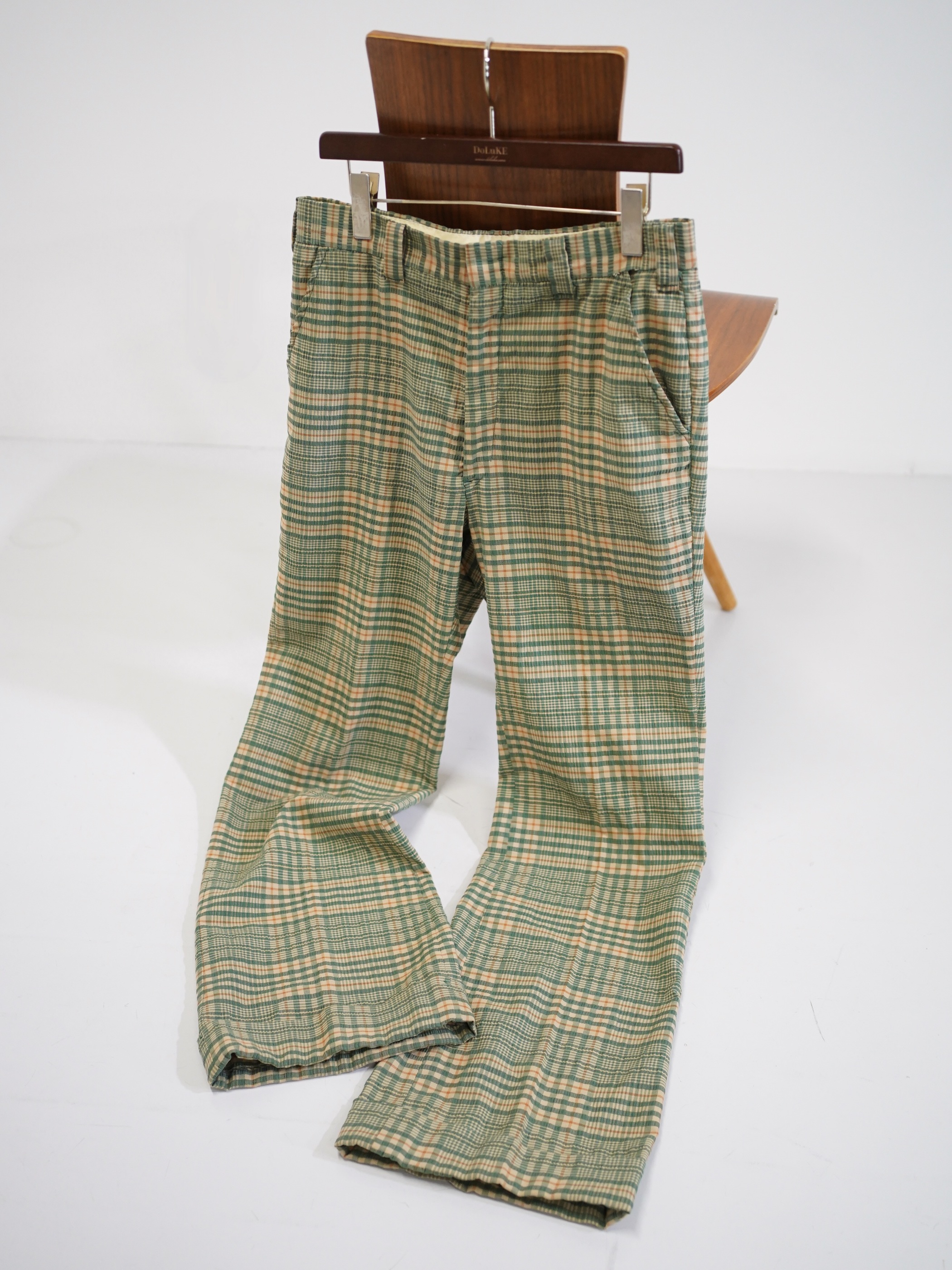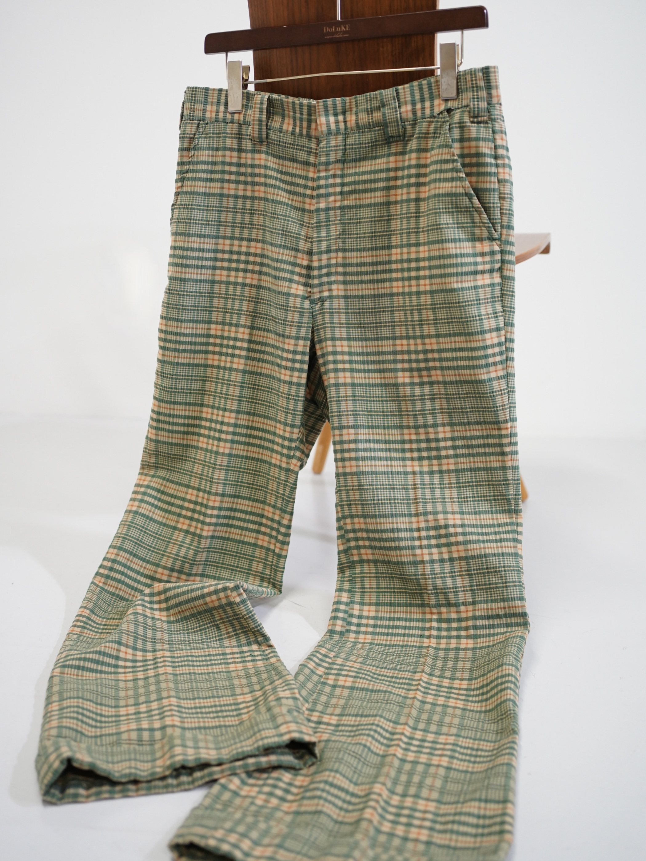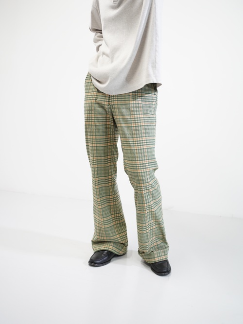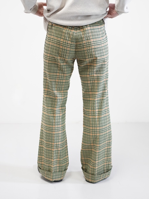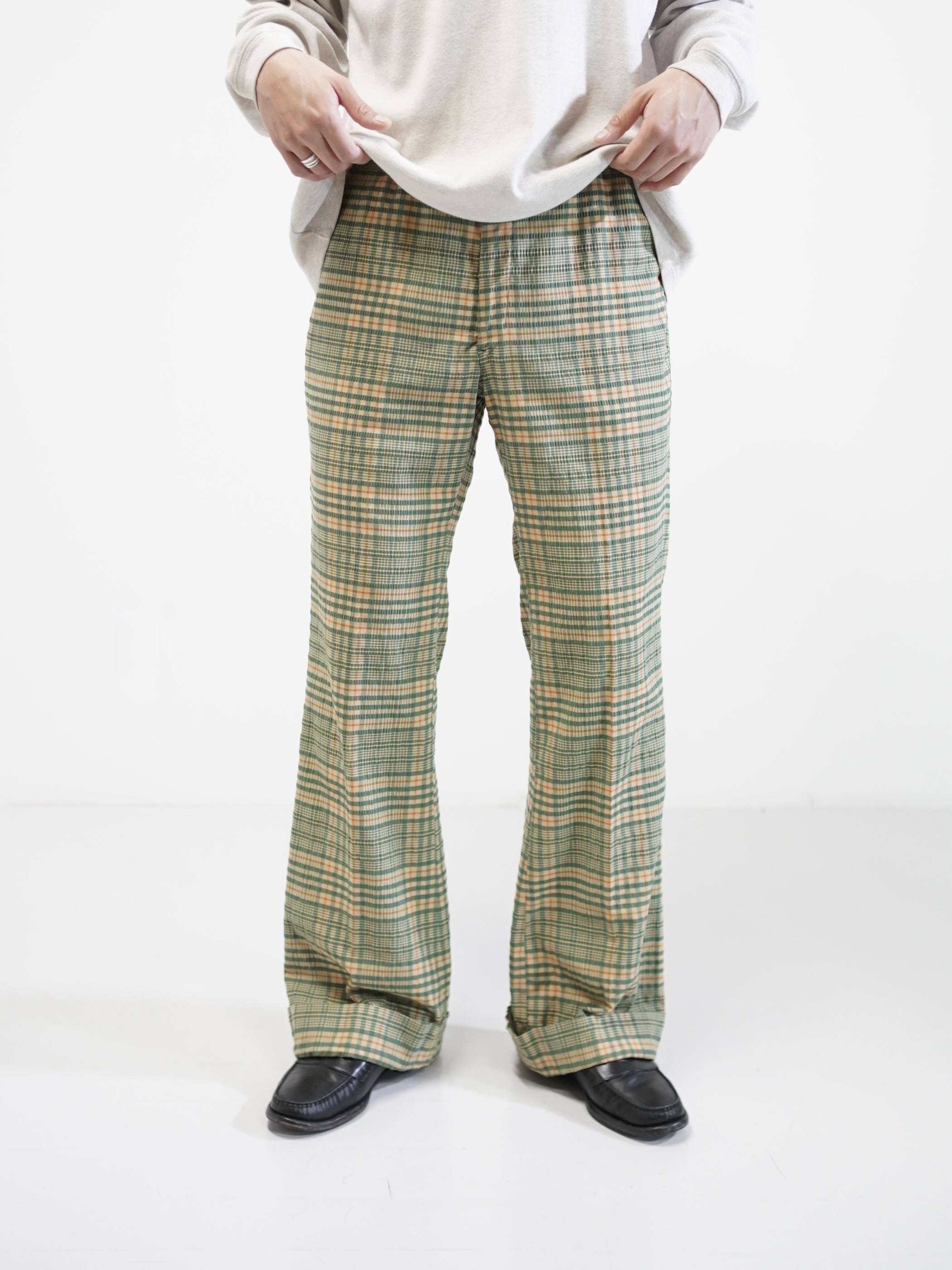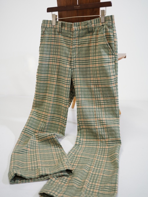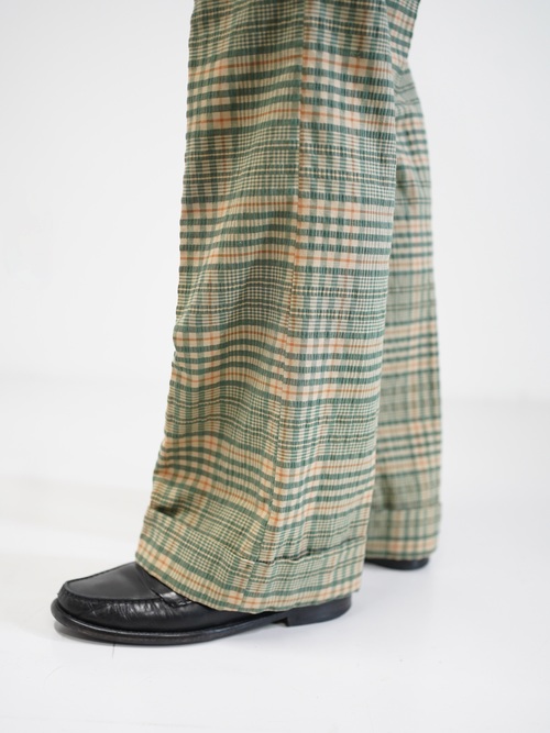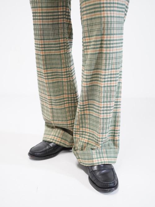 ・1970's Seersucker poly plaid pattern flare pants