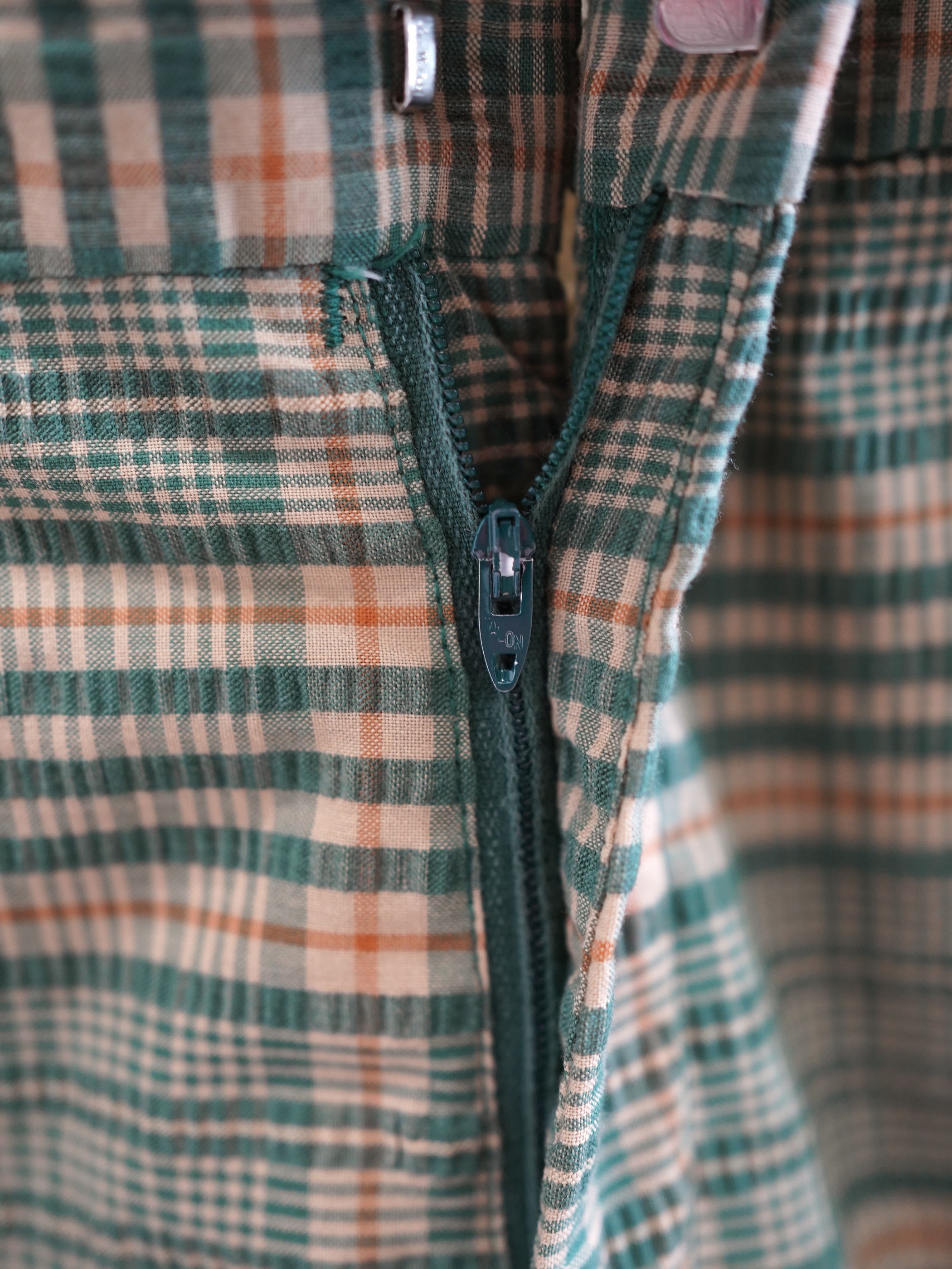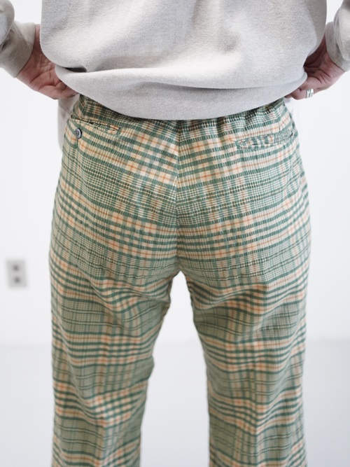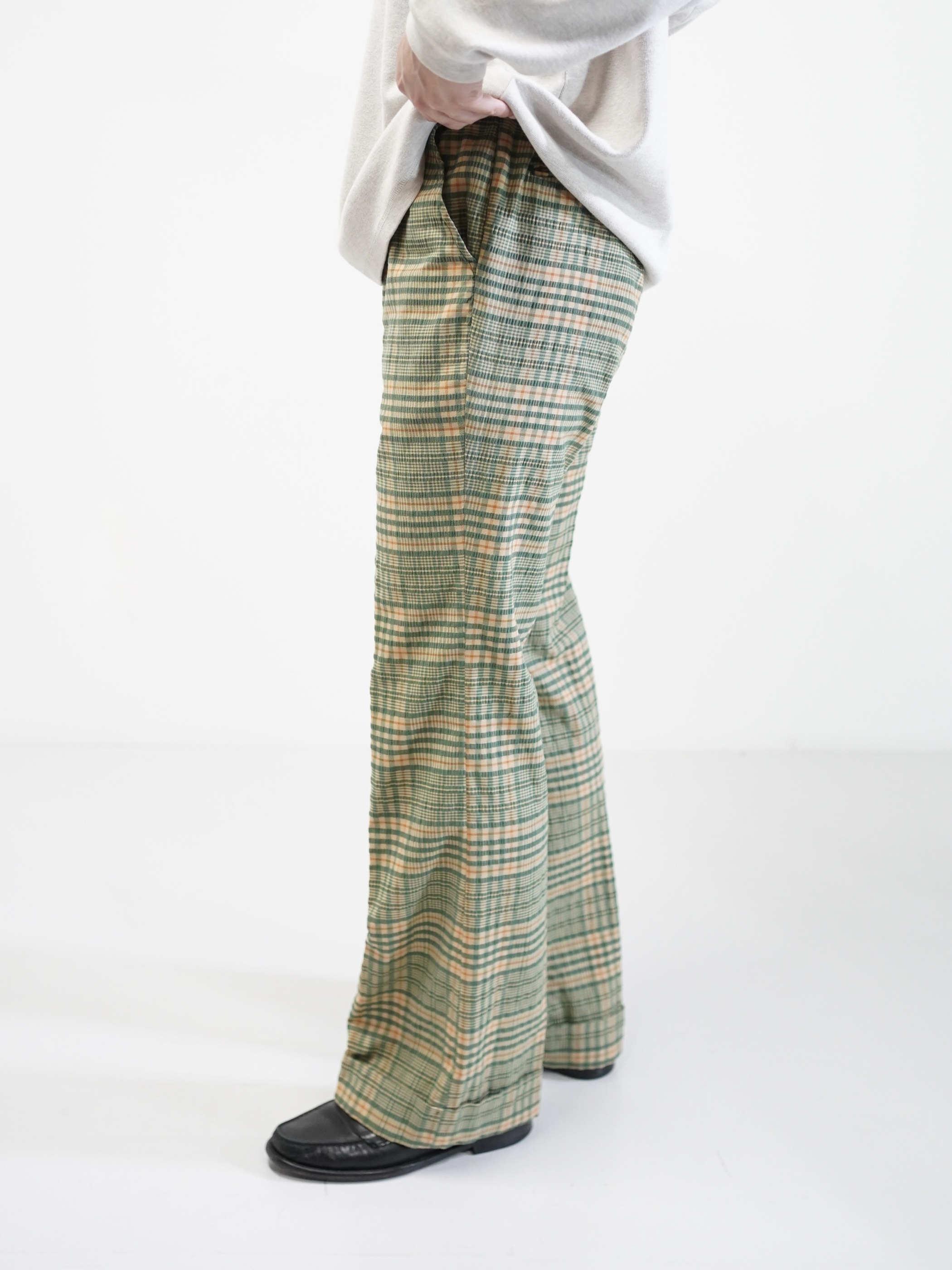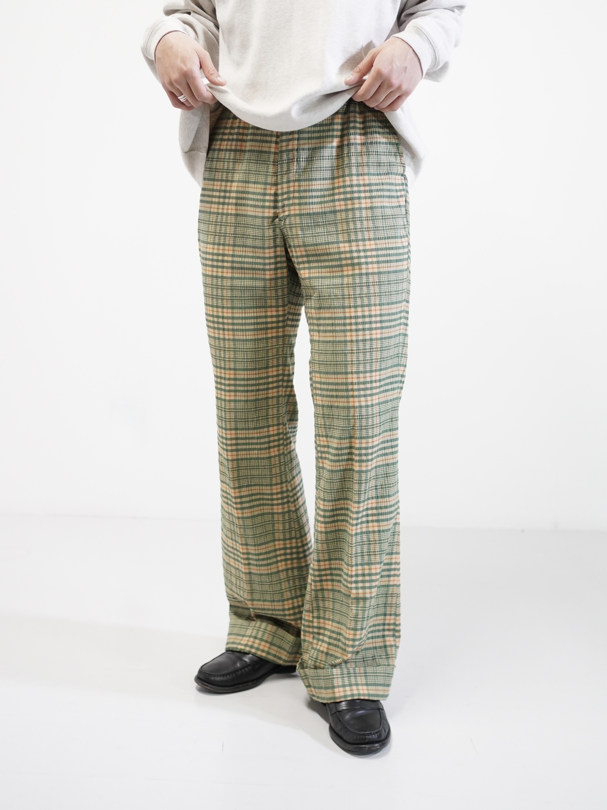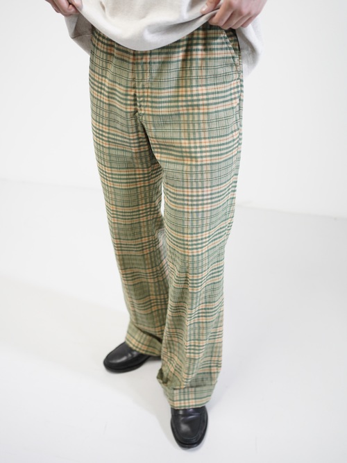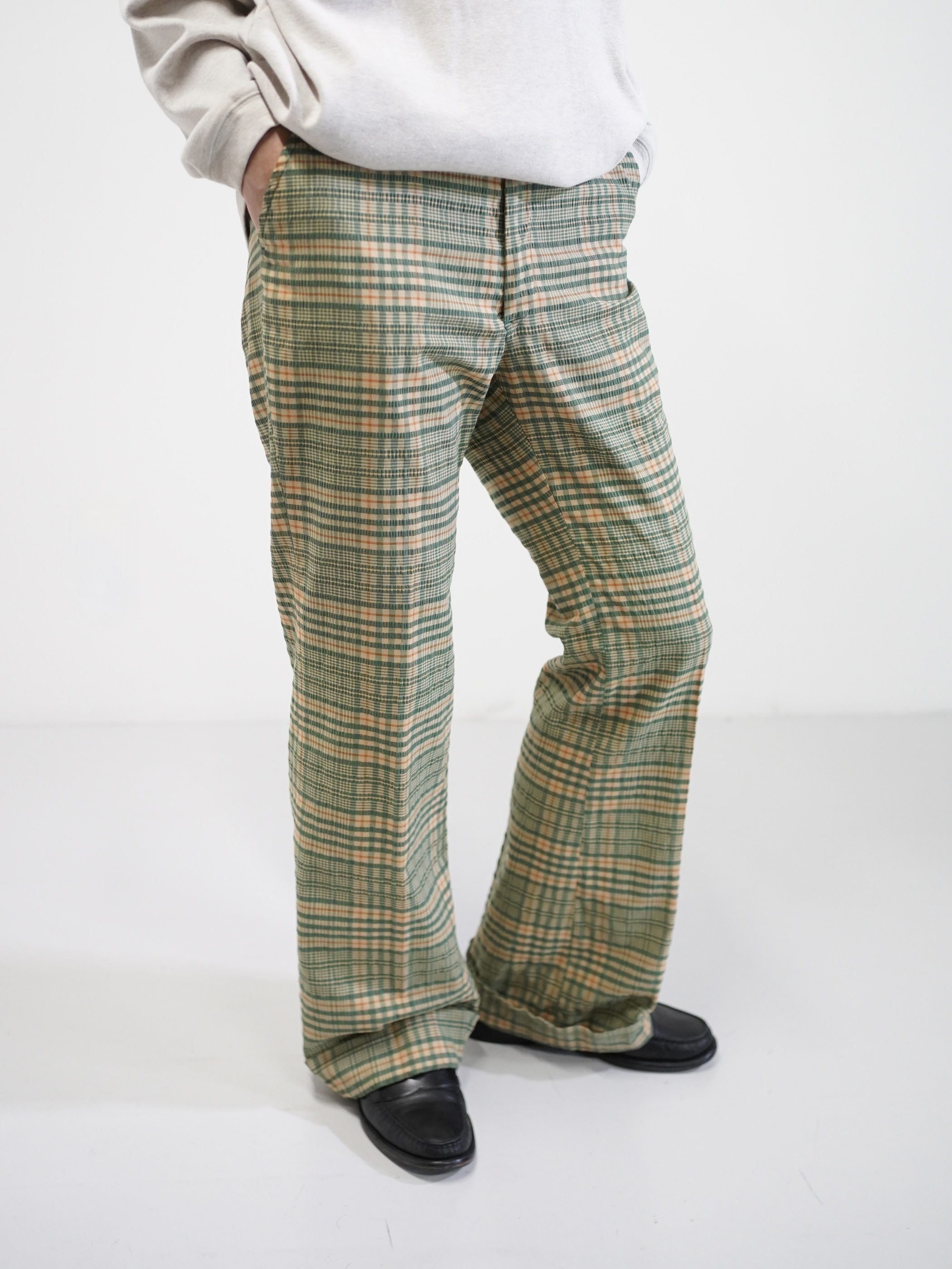 ・1970's Seersucker poly plaid pattern flare pants