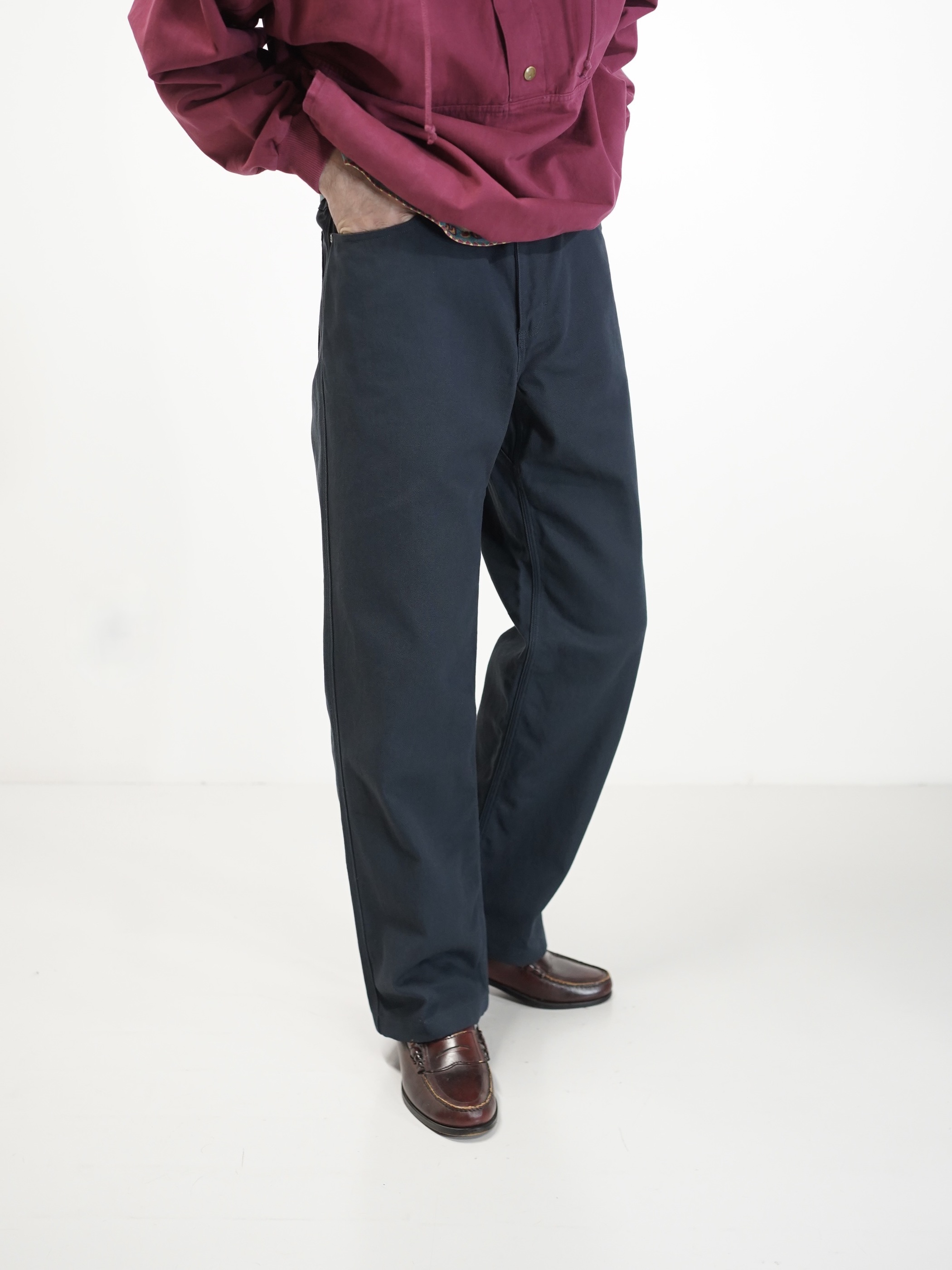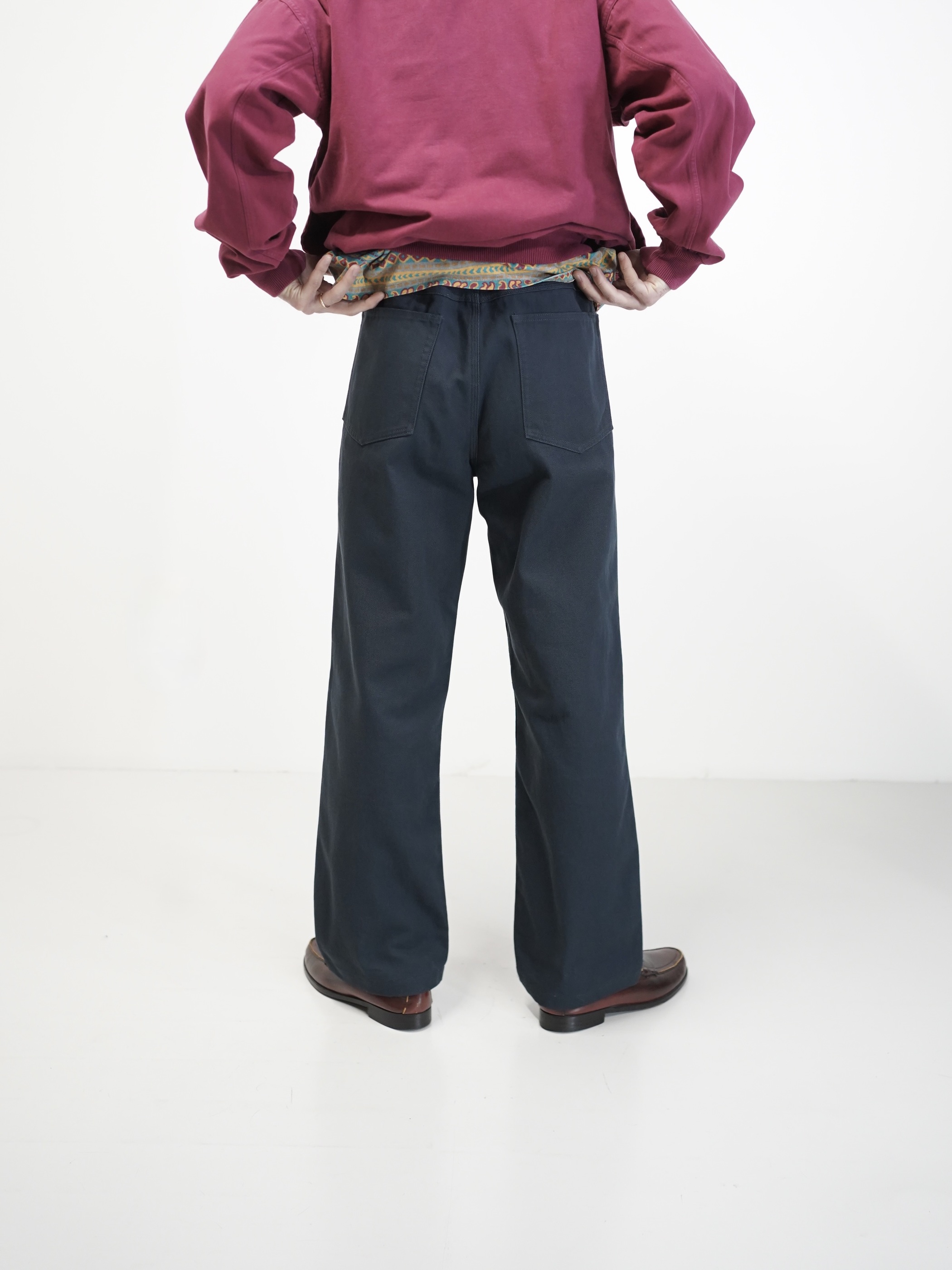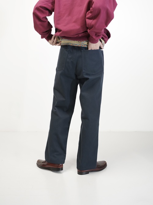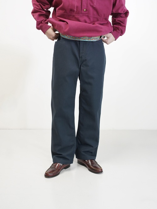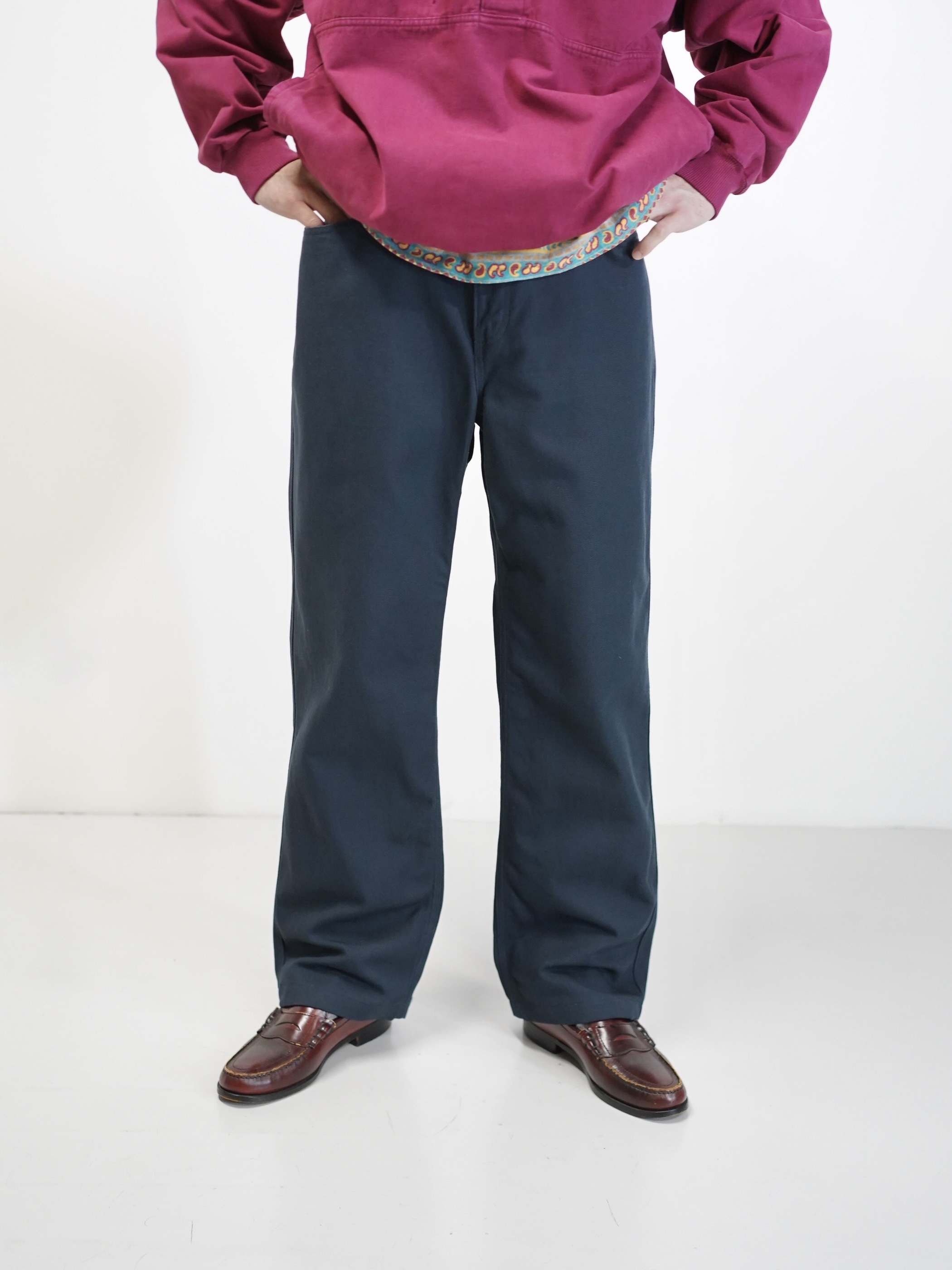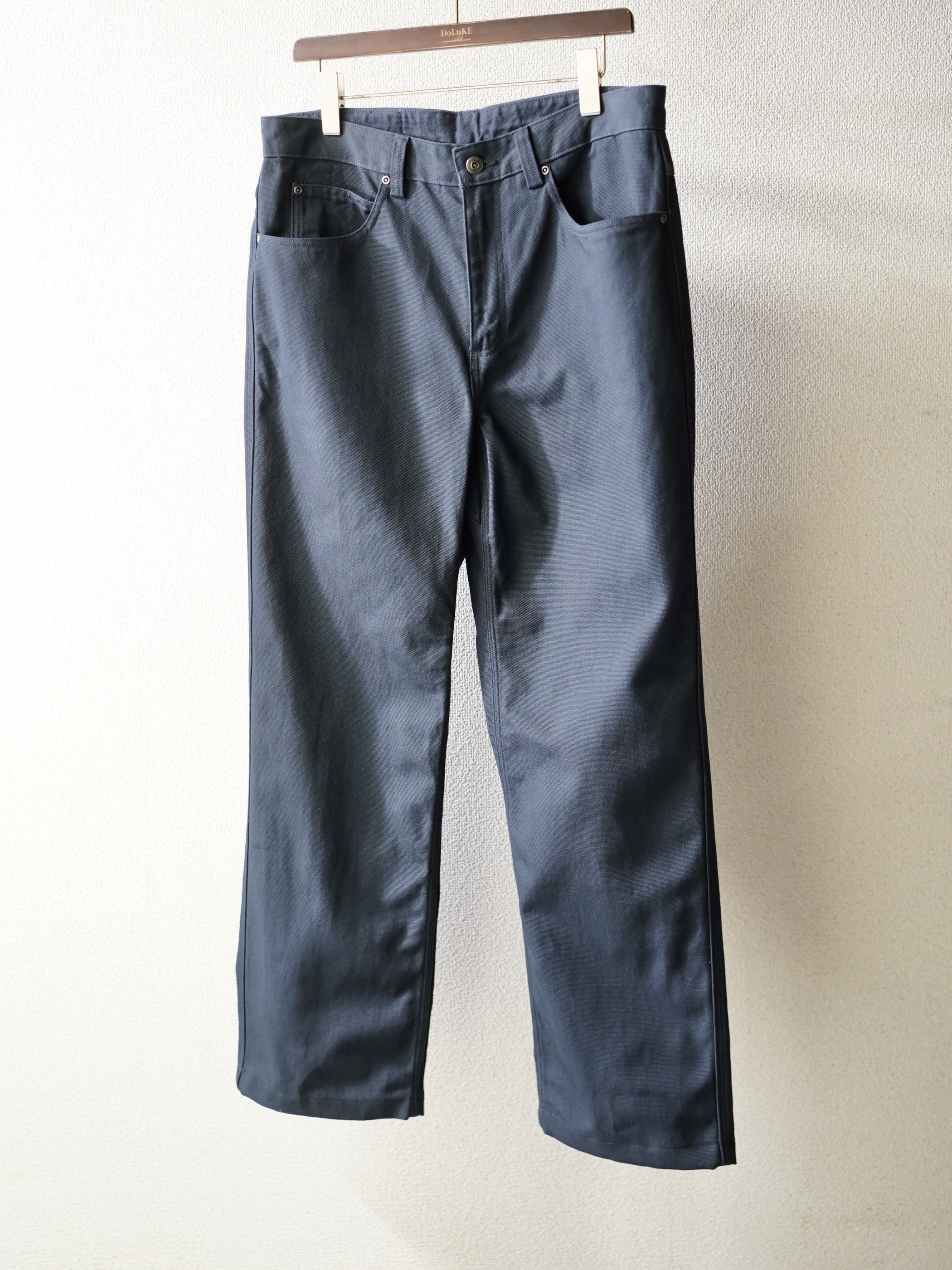 綺麗な緑青みのネイビー、シルエット的にもカラーリング的にも合わせやすく、個性出しにうってつけの一本です。