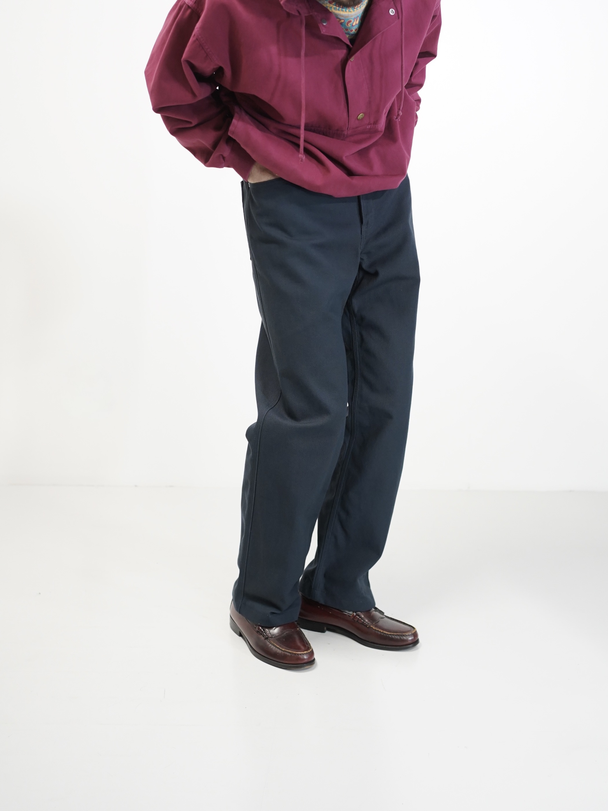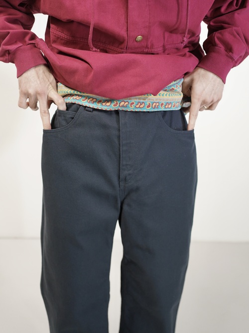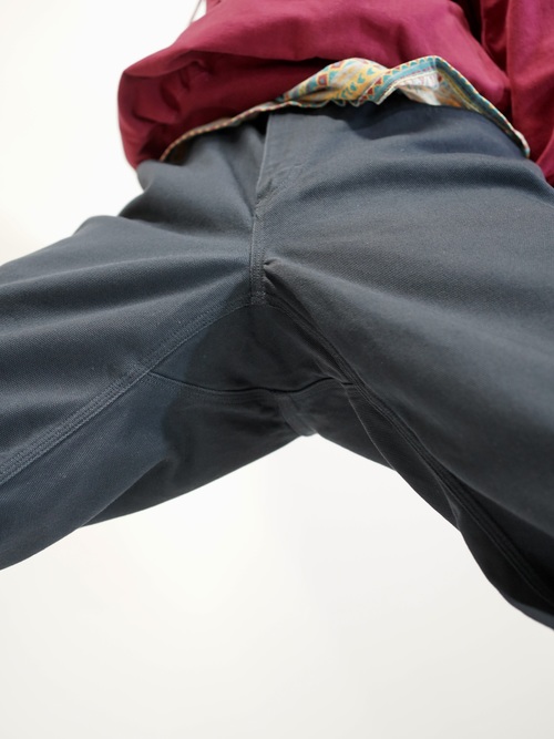 作業/アウトドア面で必要な要素はしっかりと残しつつ、唯一無二なミニマムなディテールに昇華させ、機能は落とさない。(5Pジーンズスタイルで、フロント/バック共に深め&大きめのポケット、シルエットは崩さず動きやすい股下ガゼット)