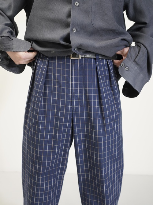 軽い綿シャツ生地にて作られた2タックのコットンスラックス。