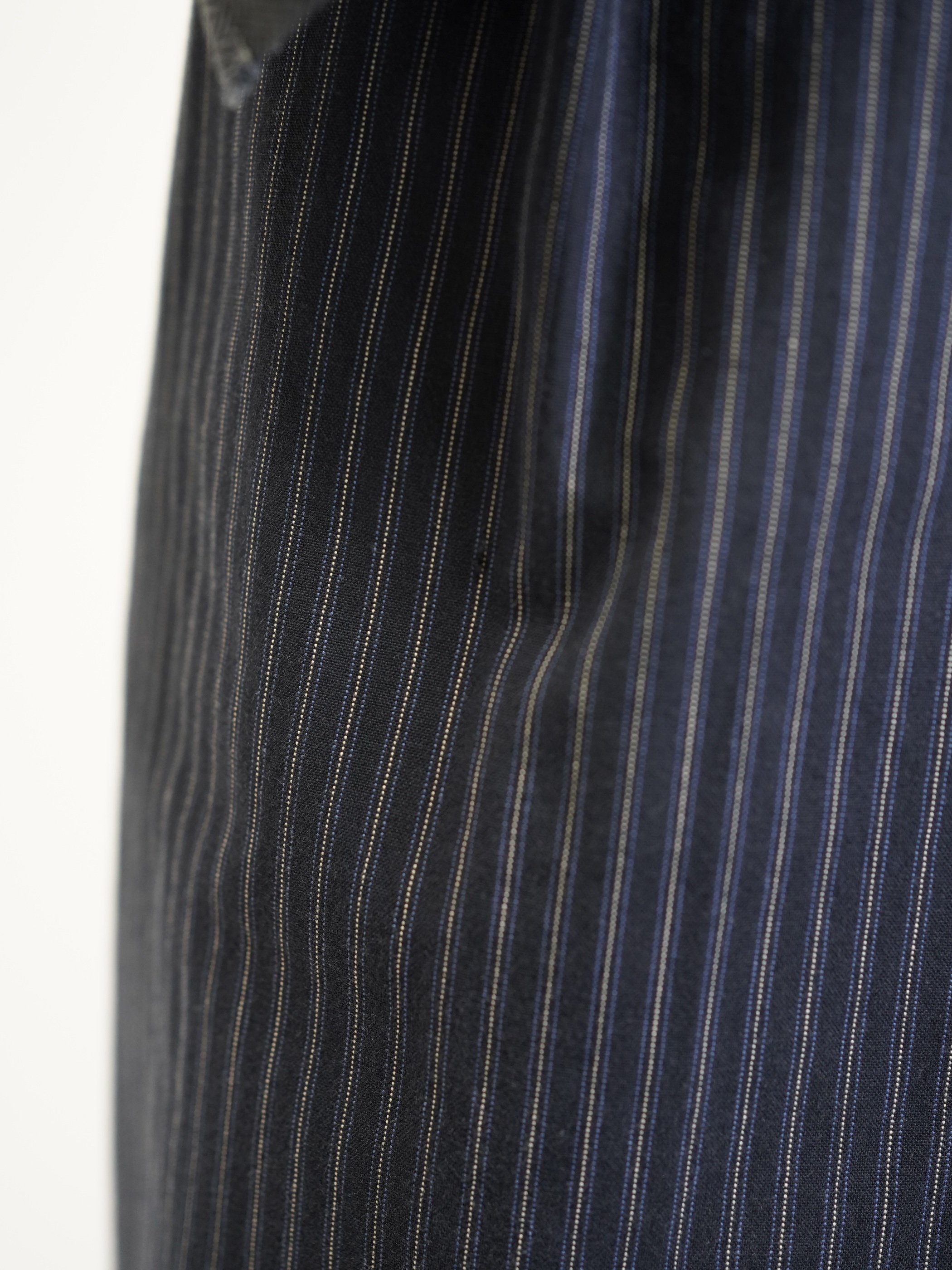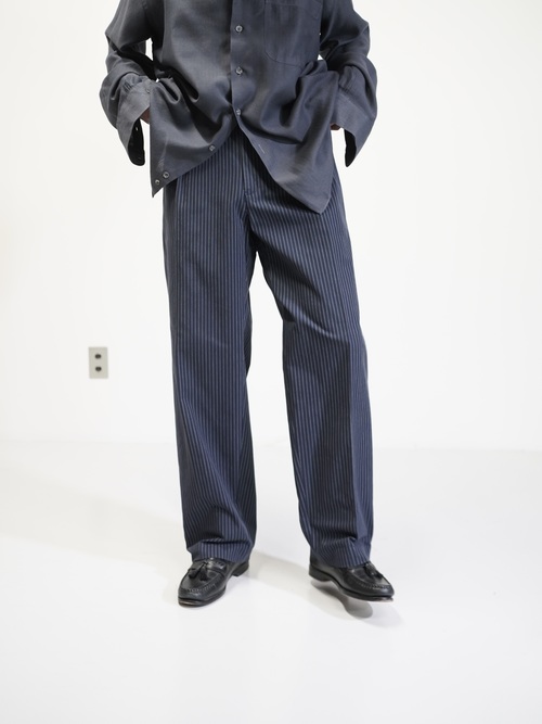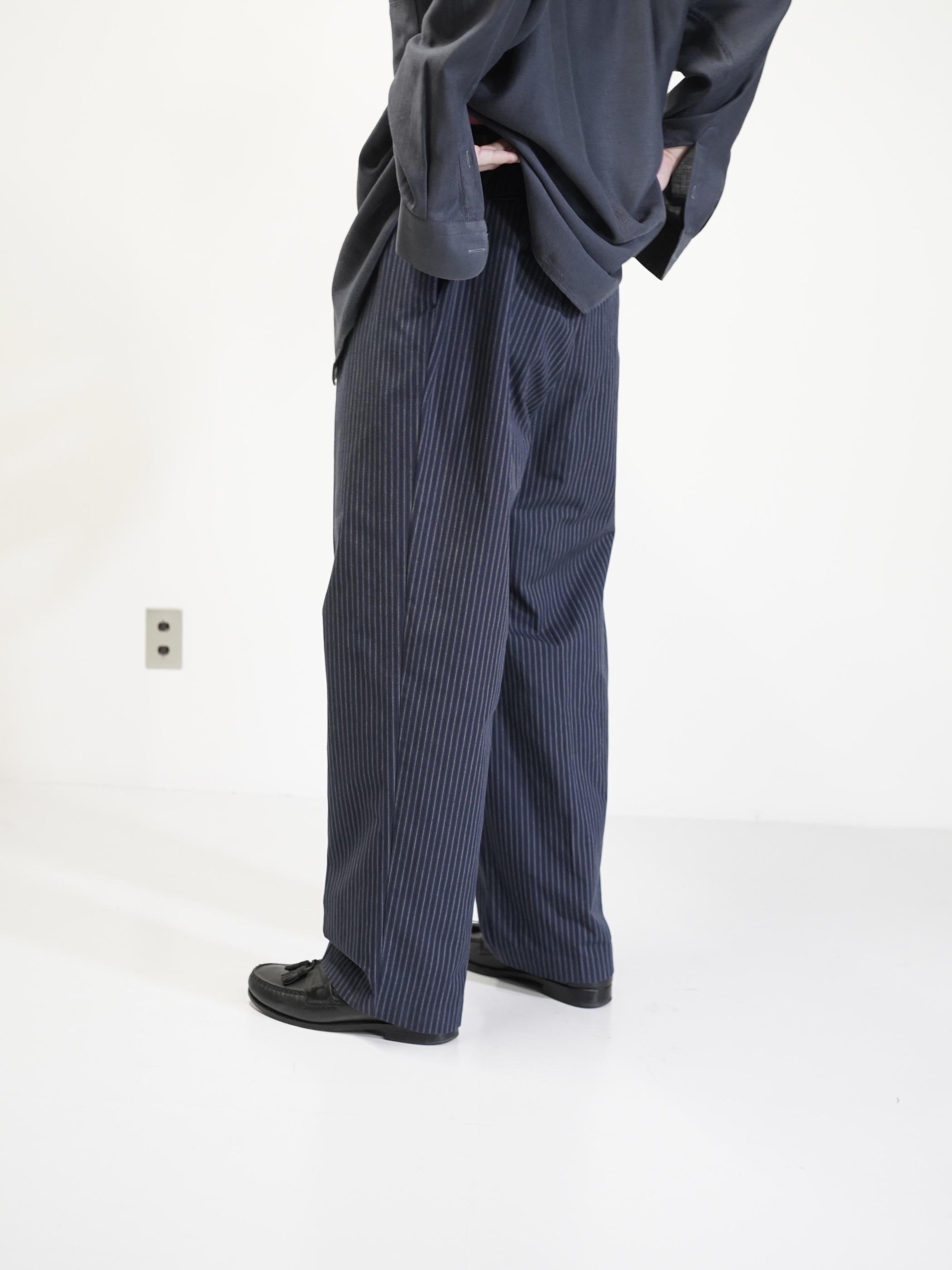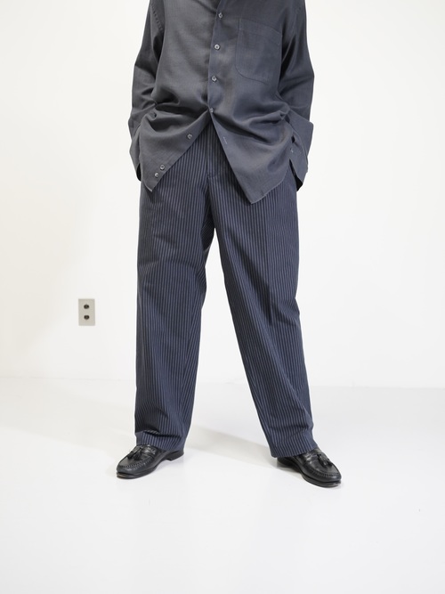 空気を含むような平織りのライト生地という所以外はしっかりとトラウザーの細部で進行。