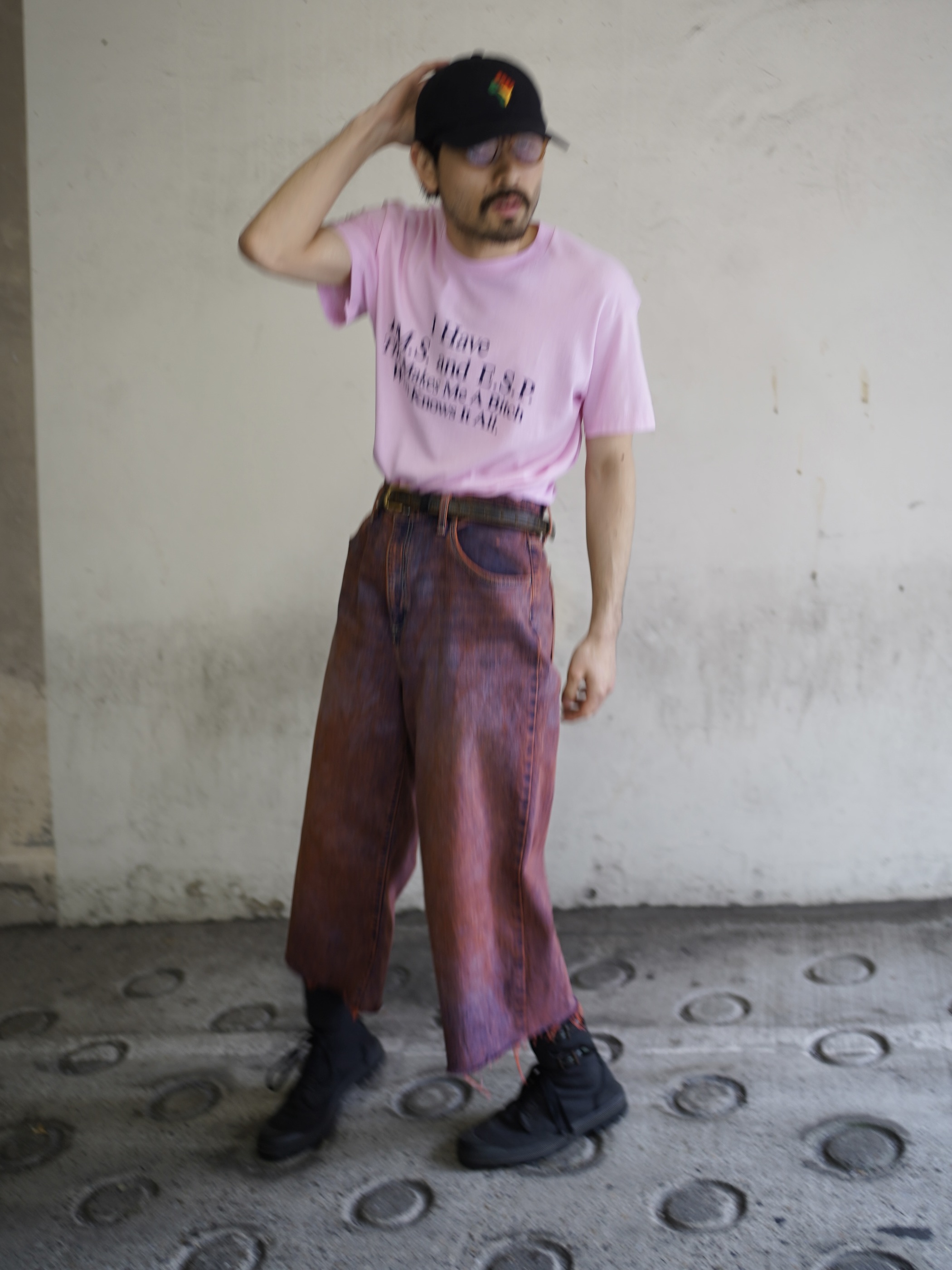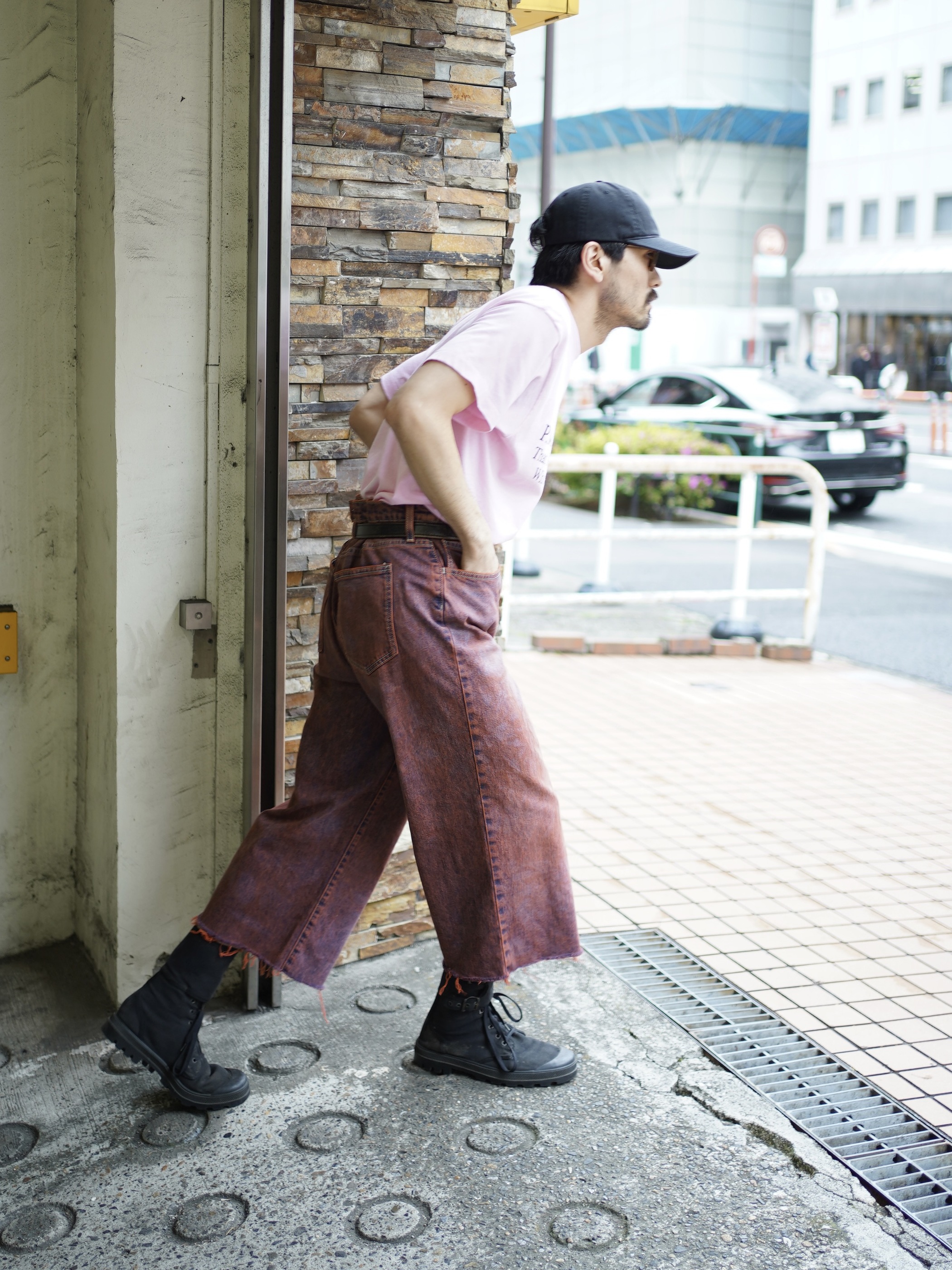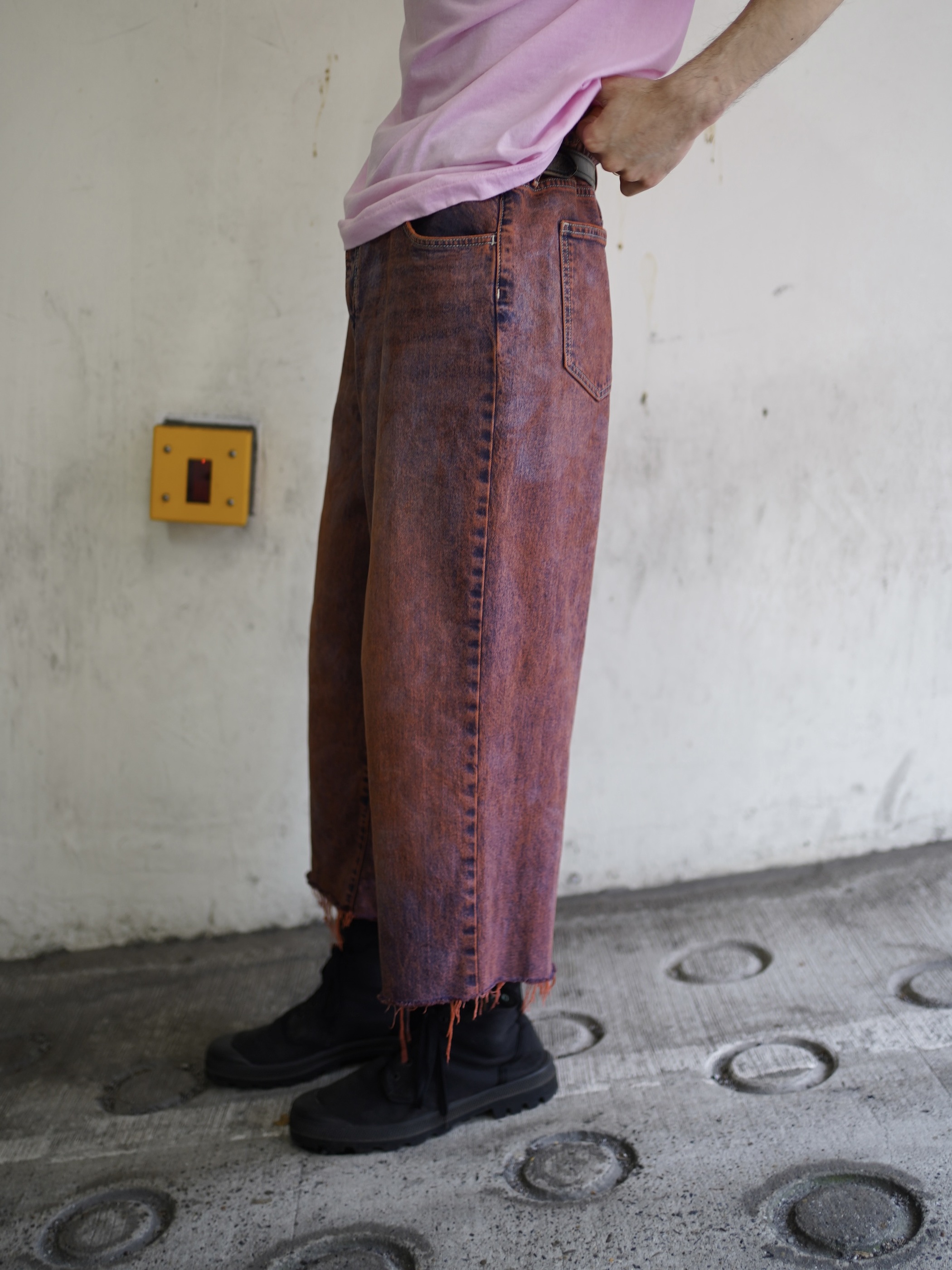 斑らに染まったカットオフ半端丈。