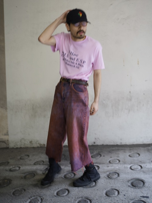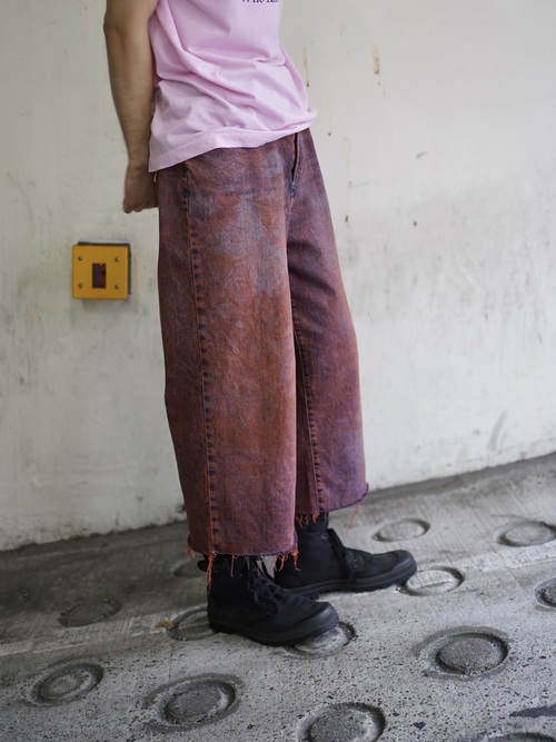 00's 斑Over-dyed fringe cut-off denim pants