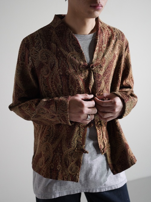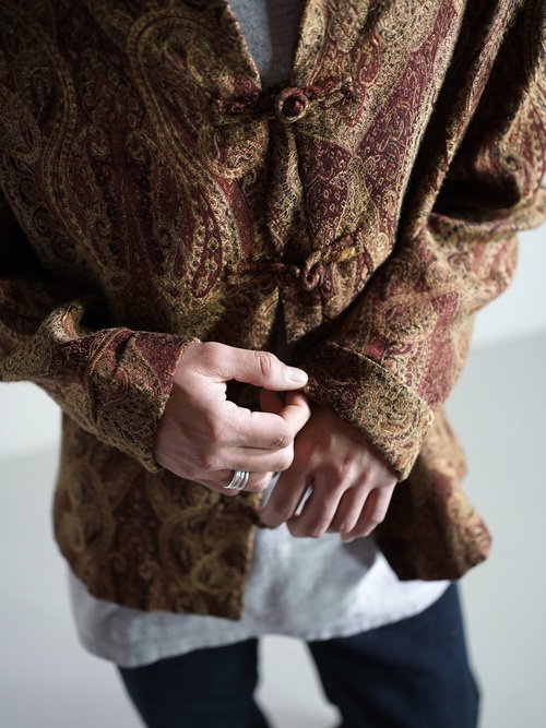薄手で軽やかなジャガード生地、チャイナシャツジャケット。