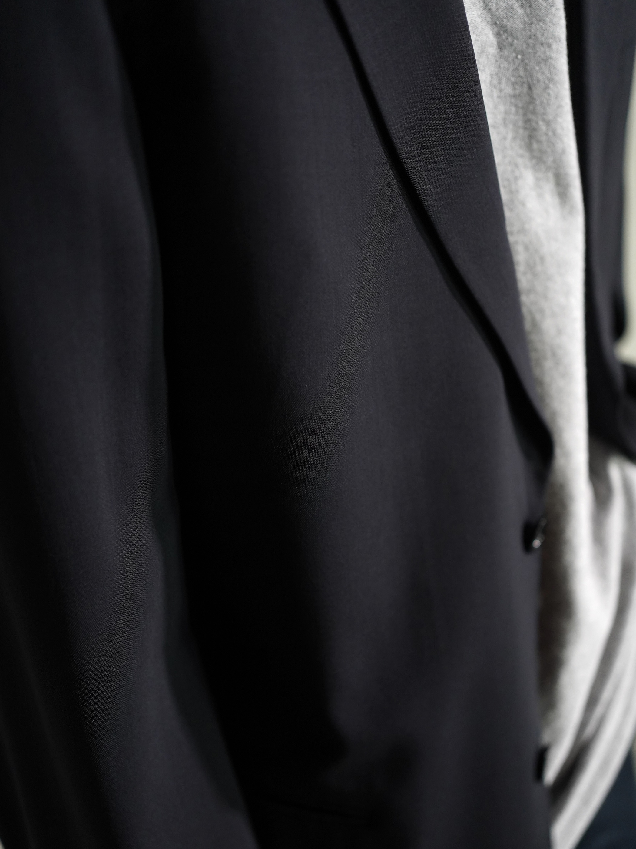 100%ウールの滑らかな生地は、仕立ての良さを感じさせながらも、重たさはなく、すっと力の抜けた表情。
